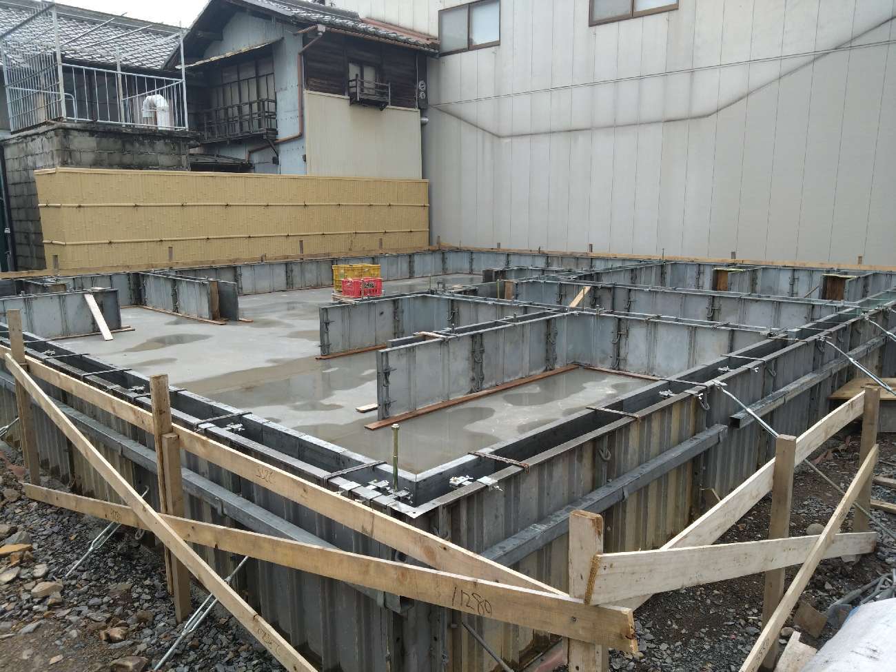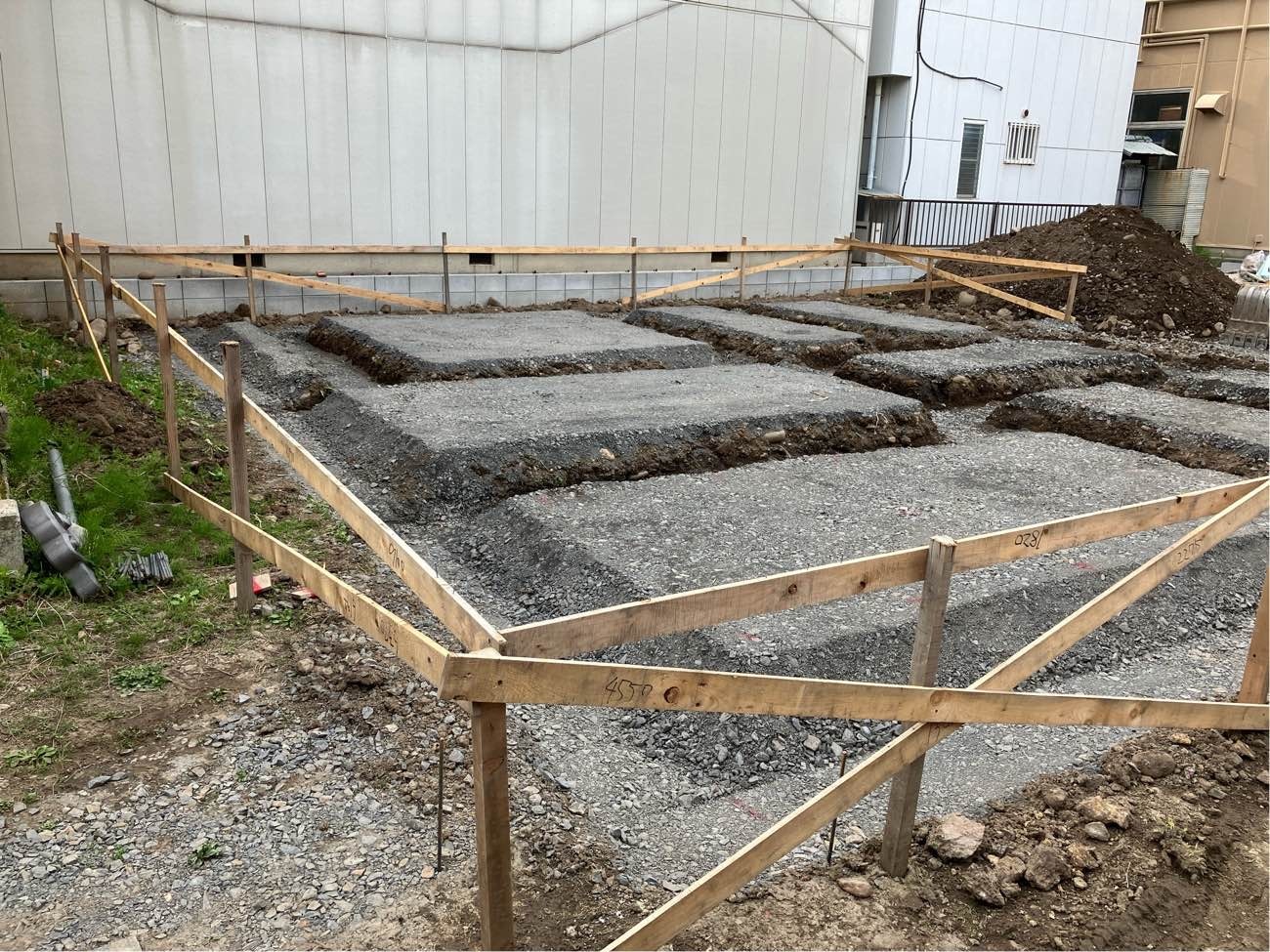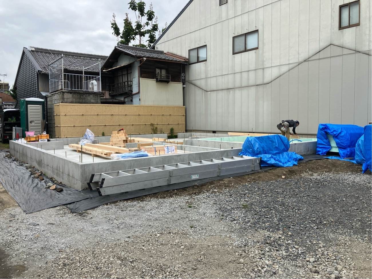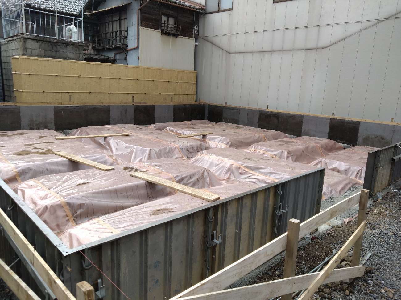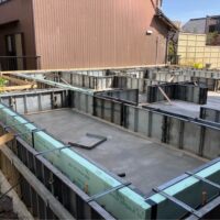 底盤のコンクリートを打設、立ち上がり部分の型枠を組み打設まで終えています。明日は、現地でo様手配の外構屋さんと打合せです。囲われた広い敷地の為、雨水排水の計画を水道屋さんも含めて現地で行う予定です。