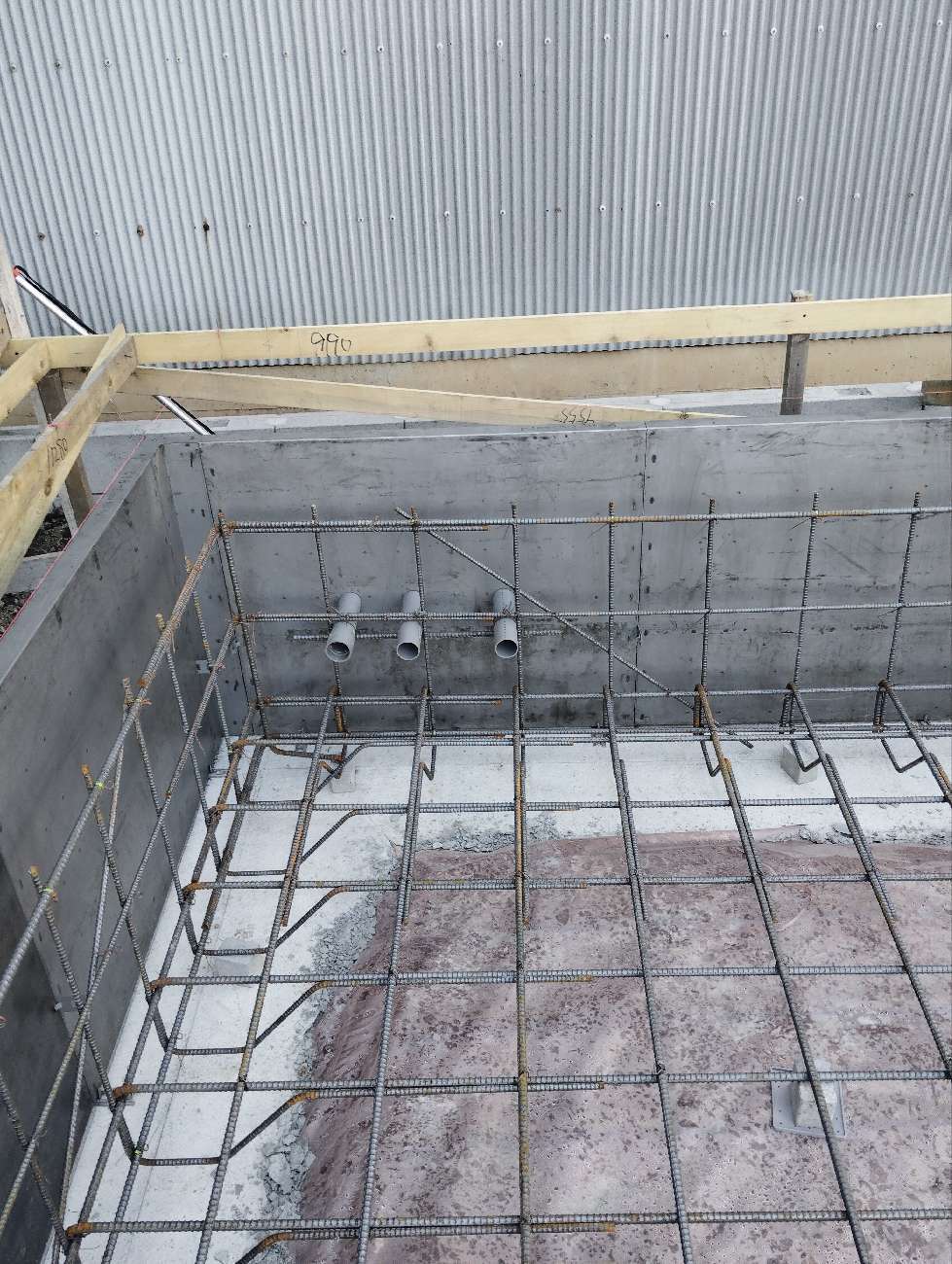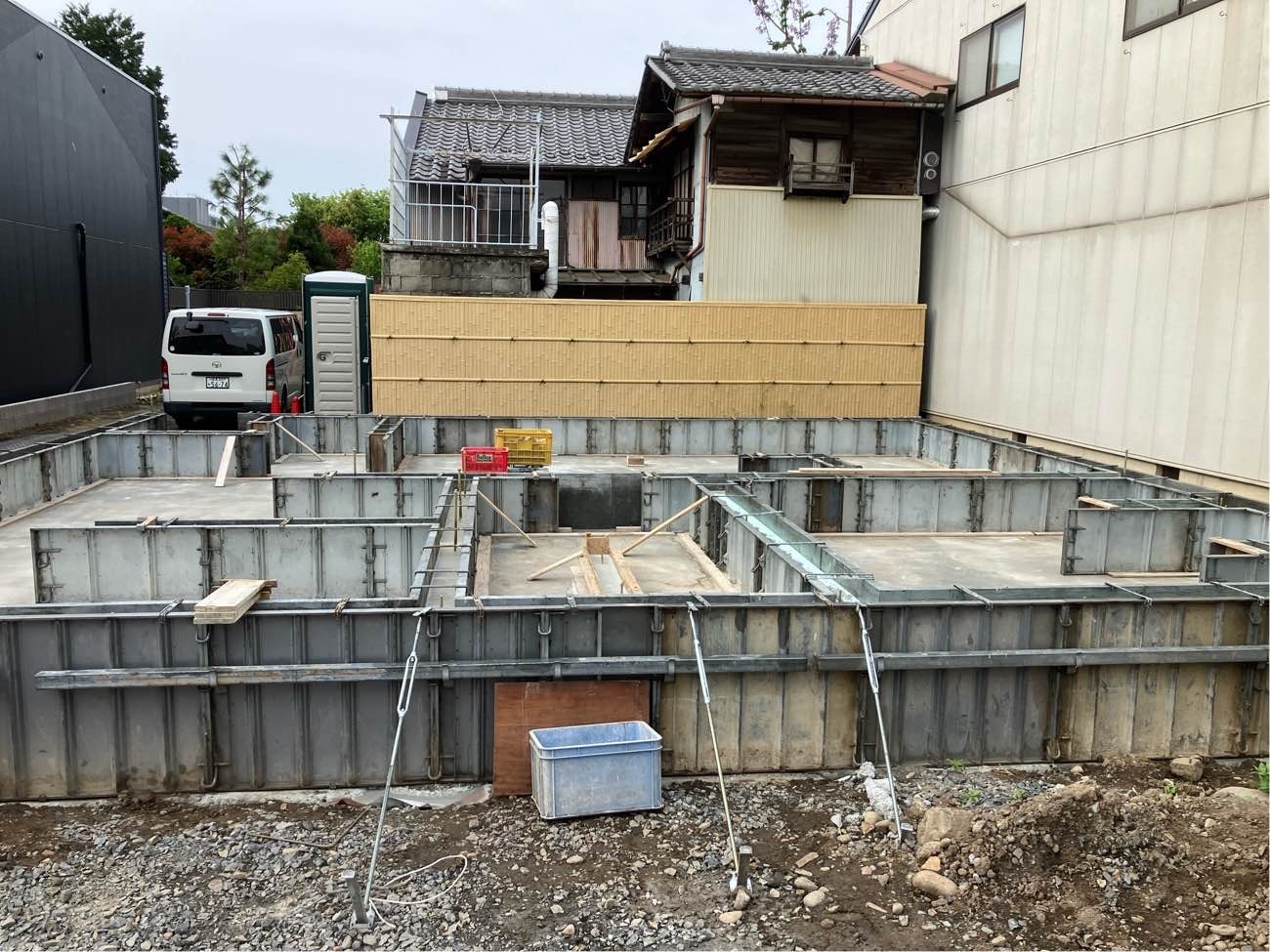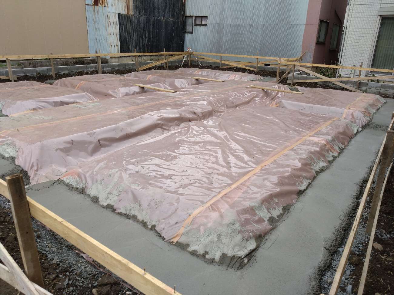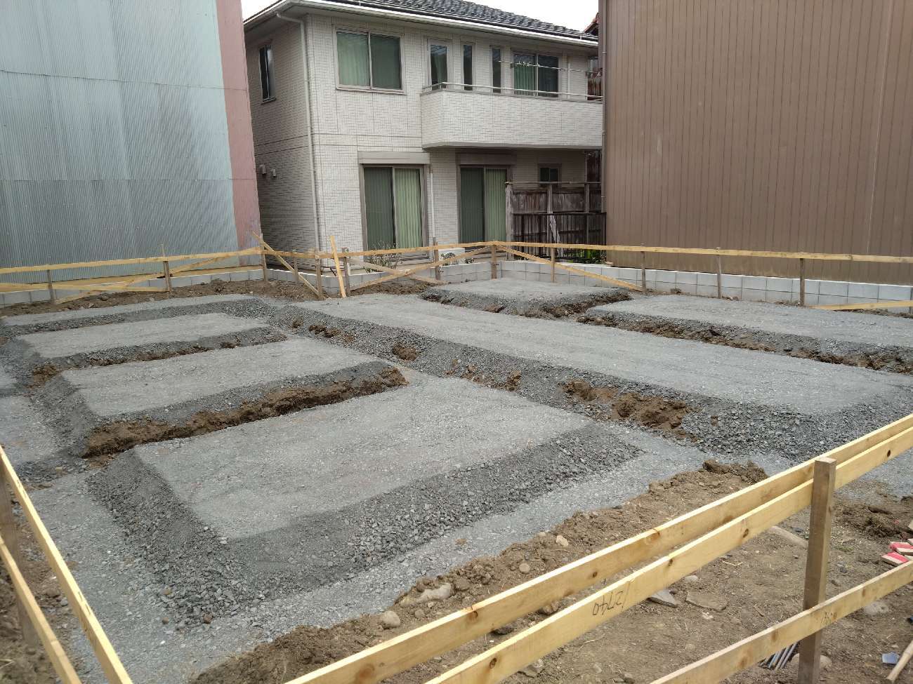 底盤のコンクリートを打設、立ち上がり部分の型枠を組み打設まで終えています。明日は、現地でo様手配の外構屋さんと打合せです。囲われた広い敷地の為、雨水排水の計画を水道屋さんも含めて現地で行う予定です。