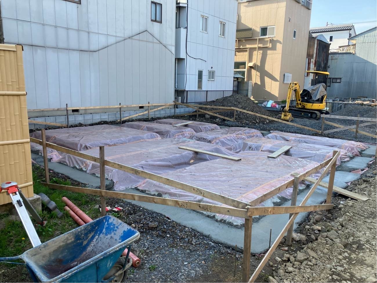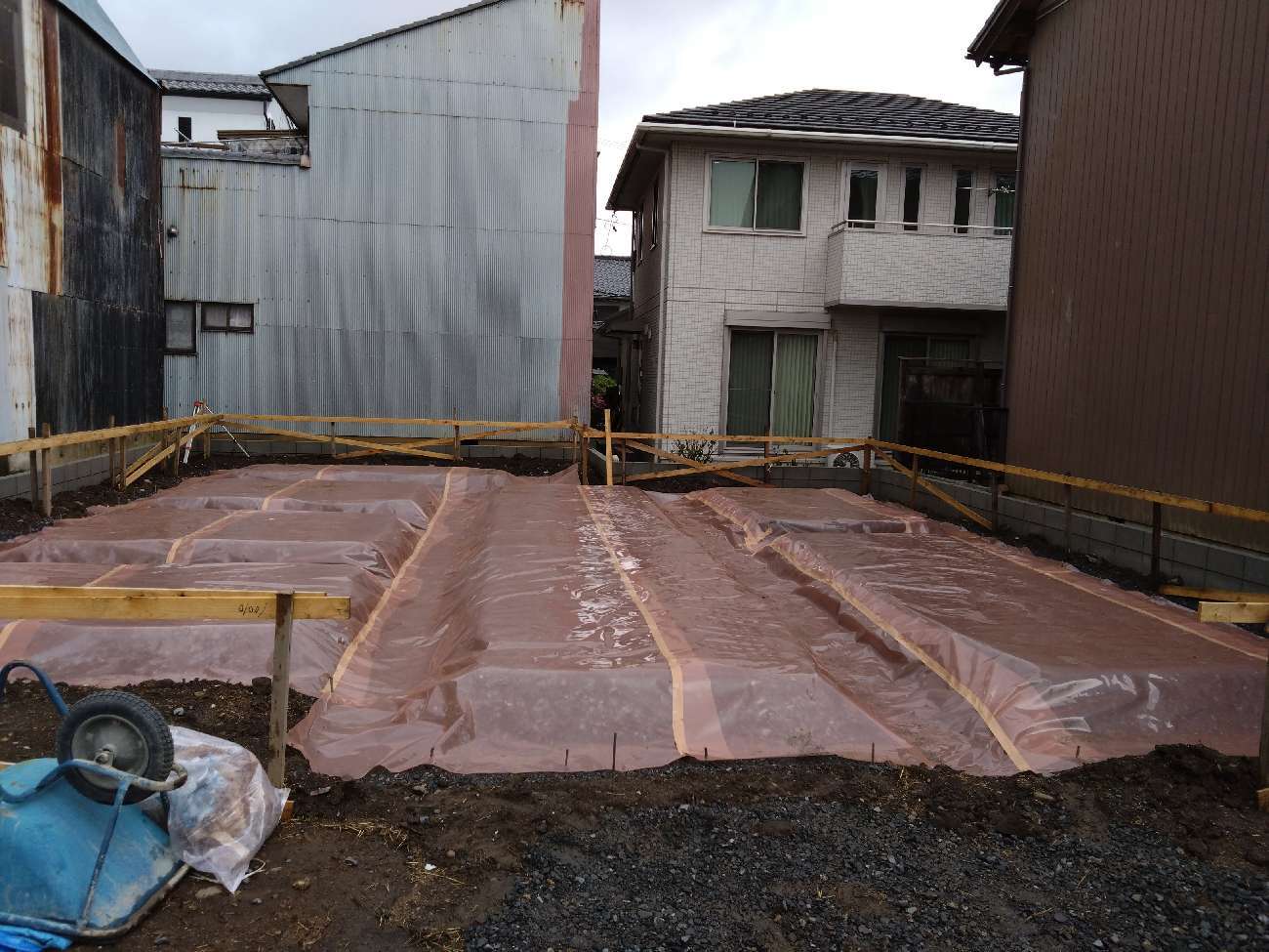 防湿シートを敷き、来週から配筋を組んでいきます。