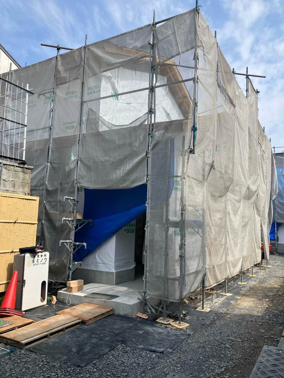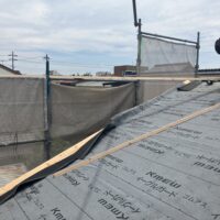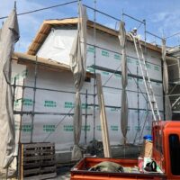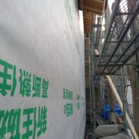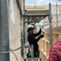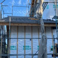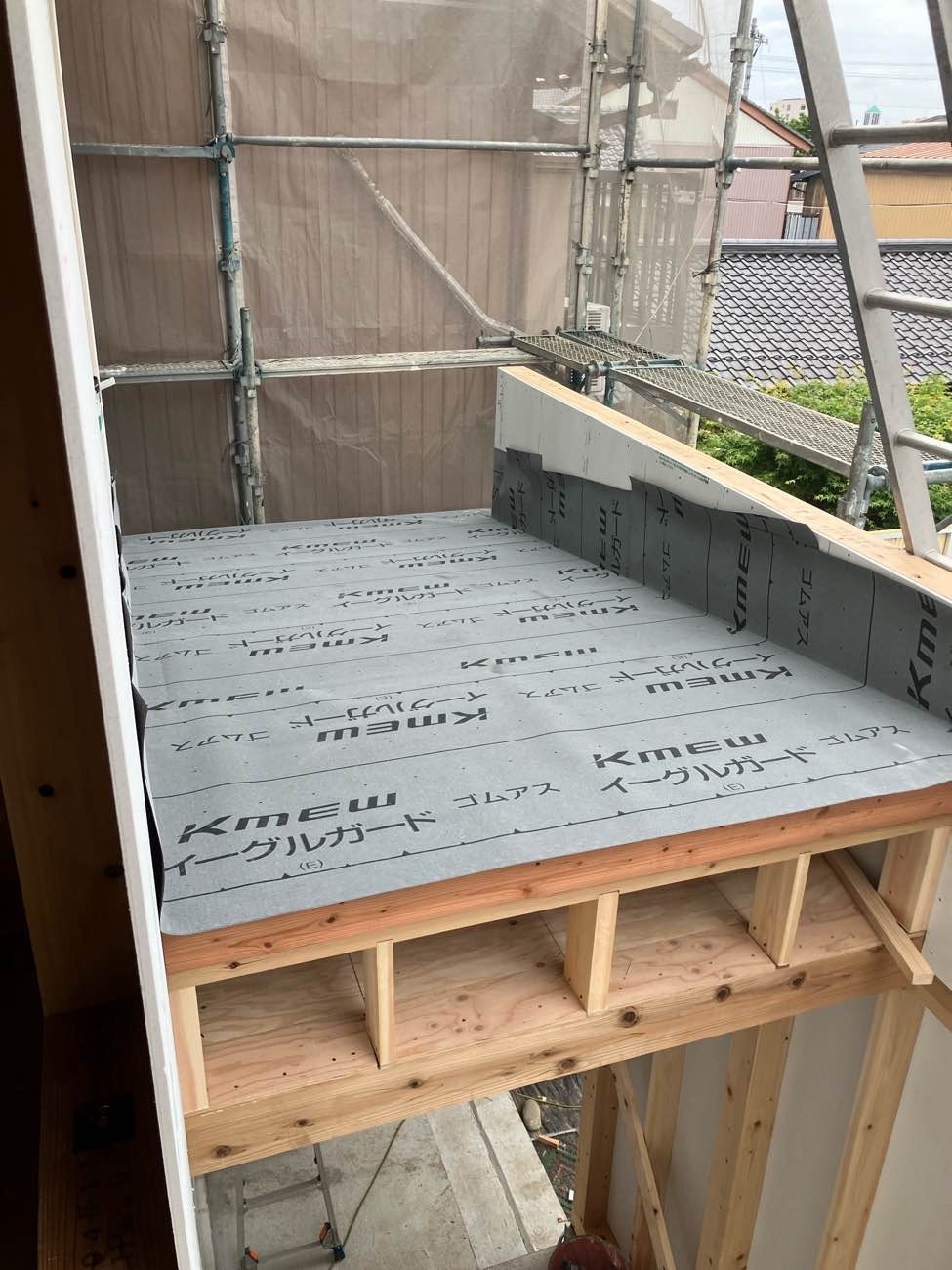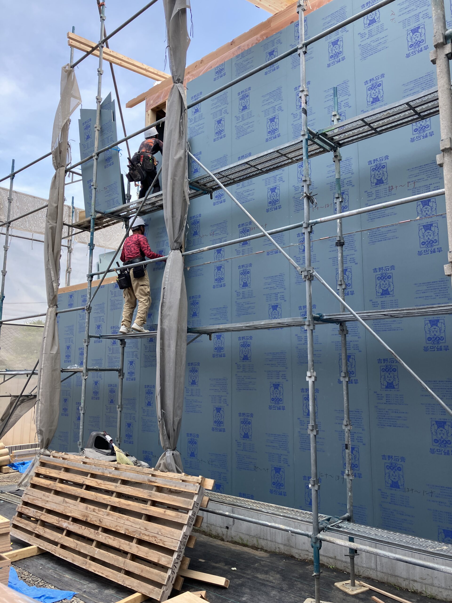 東海地方も梅雨入りしました。離れも晴れ間に透湿防水シートが張られました👍この透湿防水シートは、ウィンドブレーカーで良く使われているゴアテックスと同じような働きをします。湿気は逃がして、防水機能があるので、水の侵入を抑えつつ壁体内の結露を防いでくれます。家も人と一緒で、着心地がいい物がいいという事ですね。