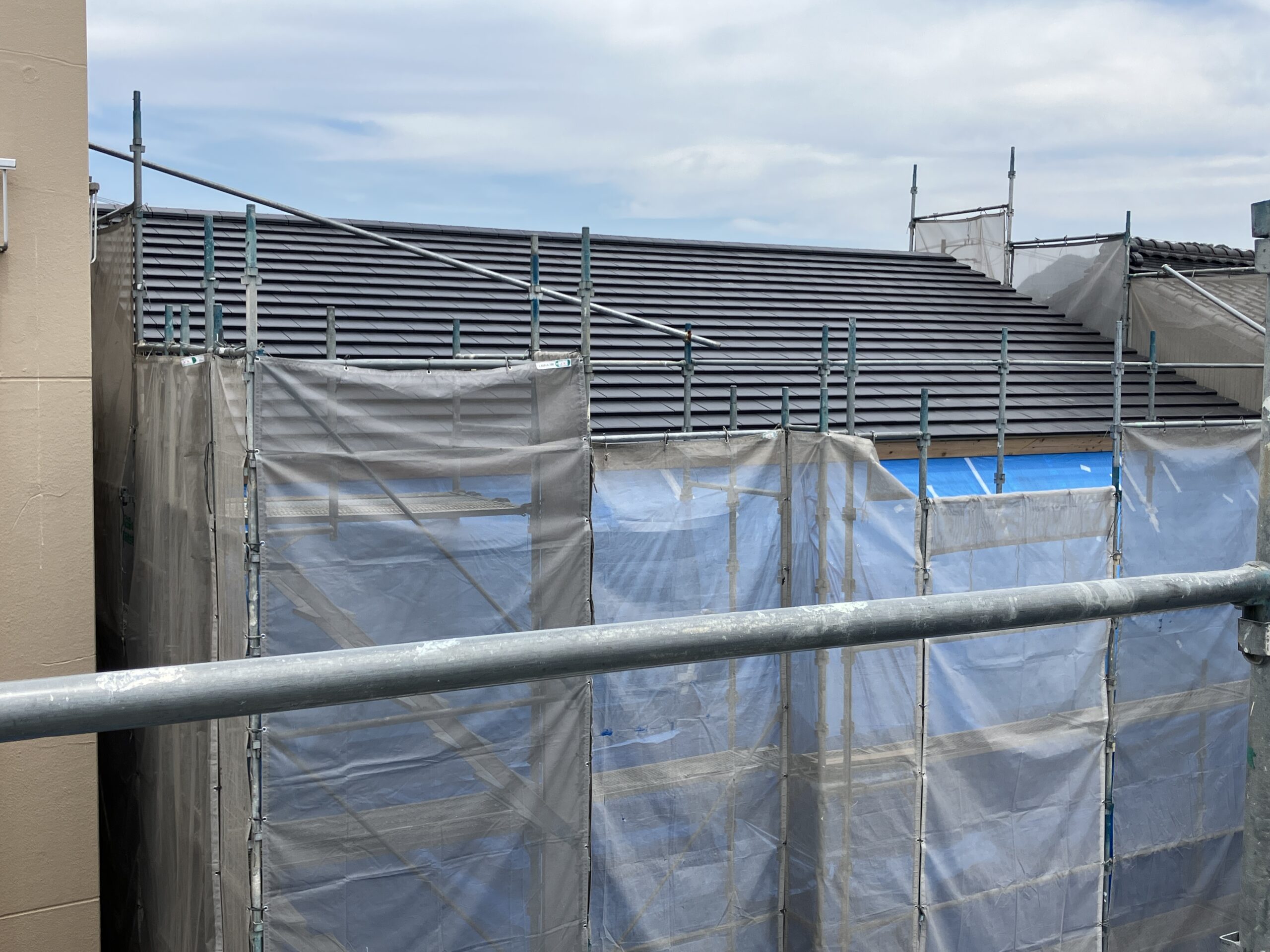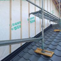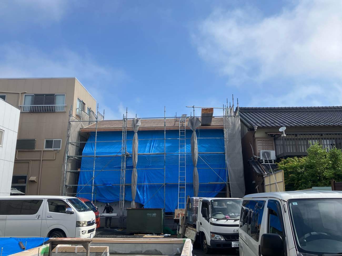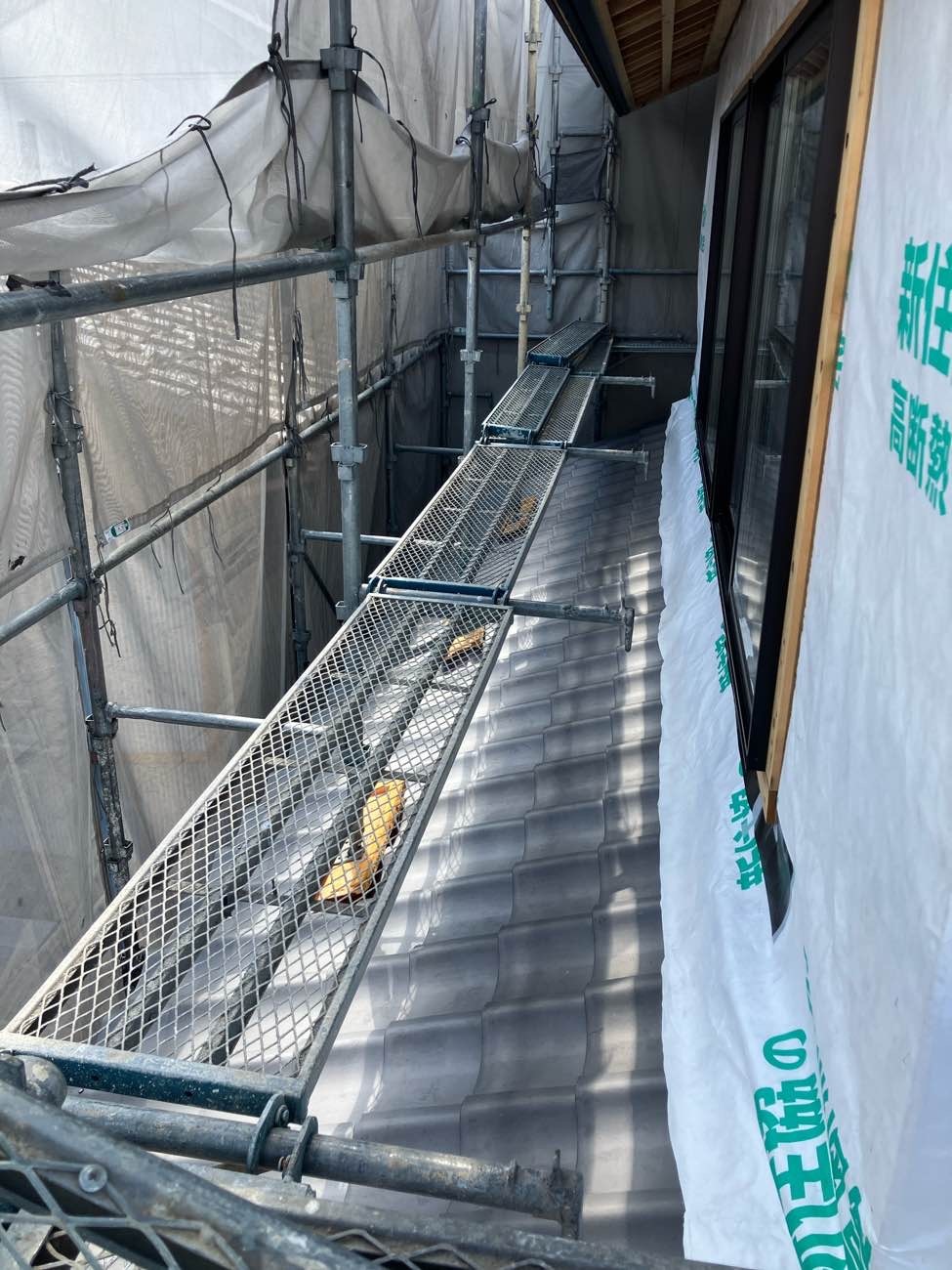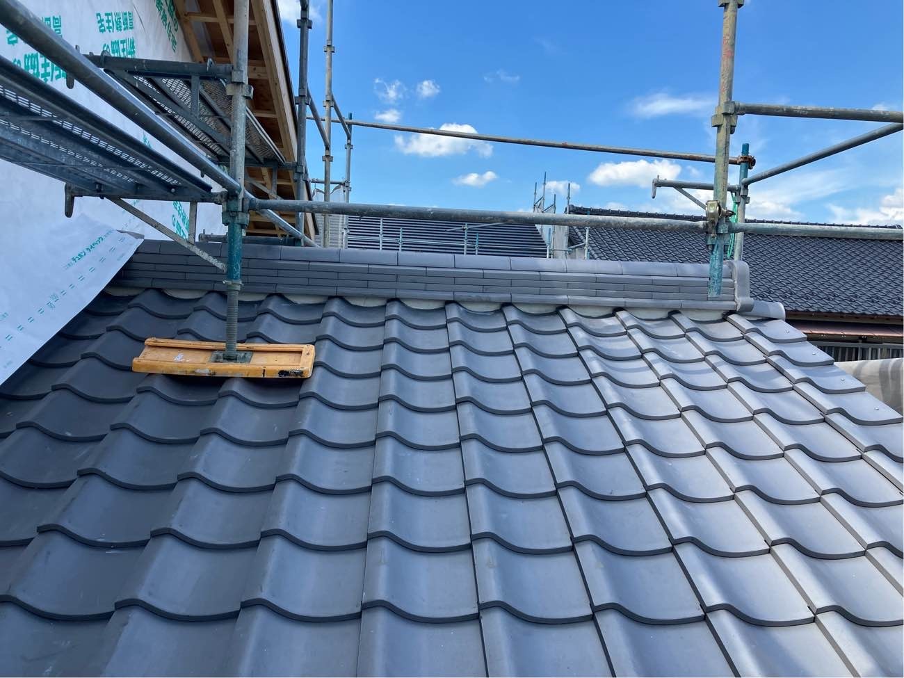 離れは、k嶋屋さんが体調を崩されてしまい、a瓦さんが急遽応援に駆けつけてくださって、瓦が葺き終わりました。光を遮るものがないので、瓦屋さんの仕事は大変です💦足場にタープみたいなものが架けられると少しは違うかも知れないですが、温暖化してしまった夏対策として、建築現場は朝5時からお昼までとかサマータイム制度にしたらどうでしょうか?音の問題があるので、国が推奨くれたりしたら、近隣の方も「あ~政府が言ってたよね、ニュースで見た!仕方ないね」となったりしないかなぁと思ったりします。
