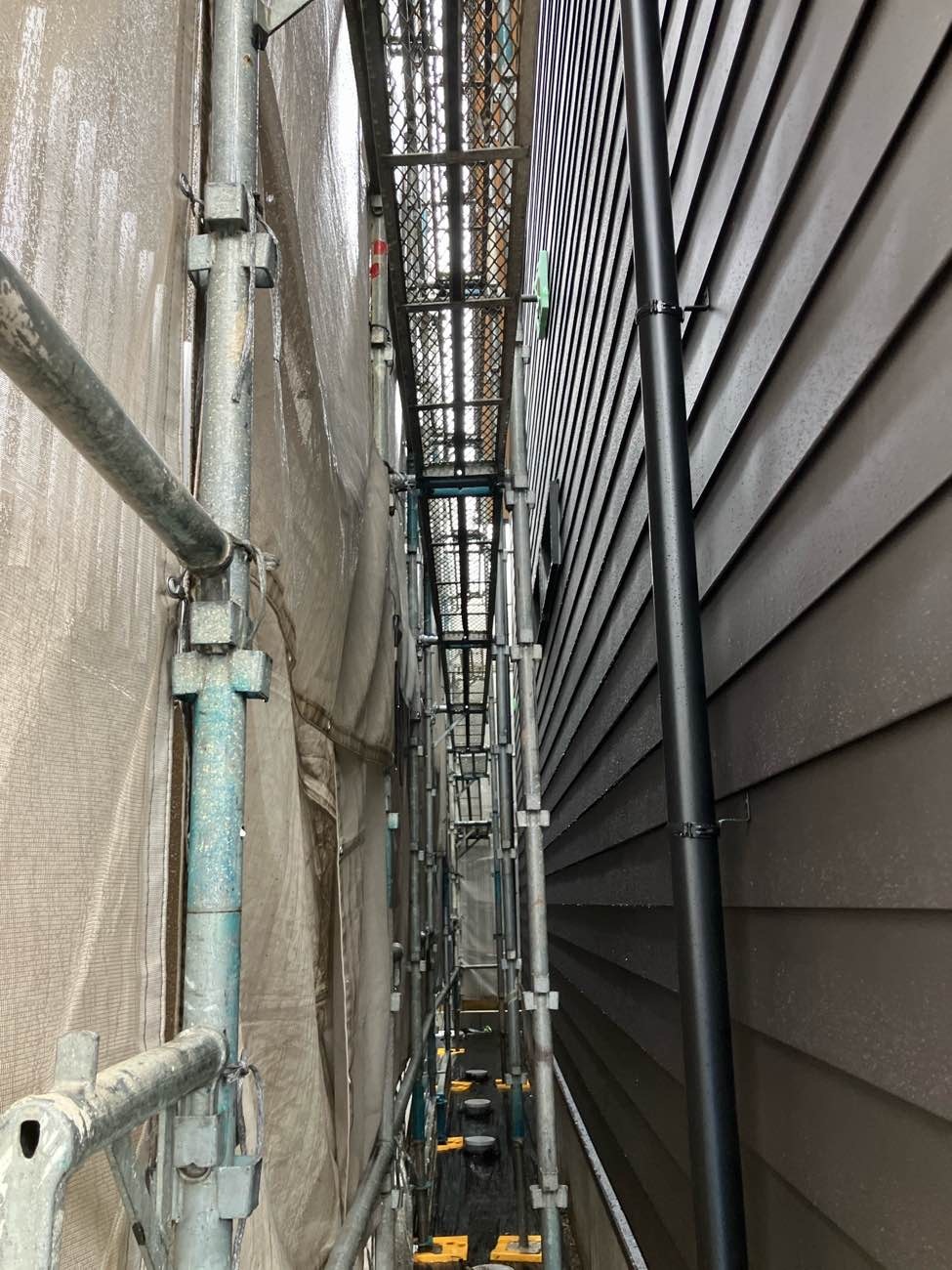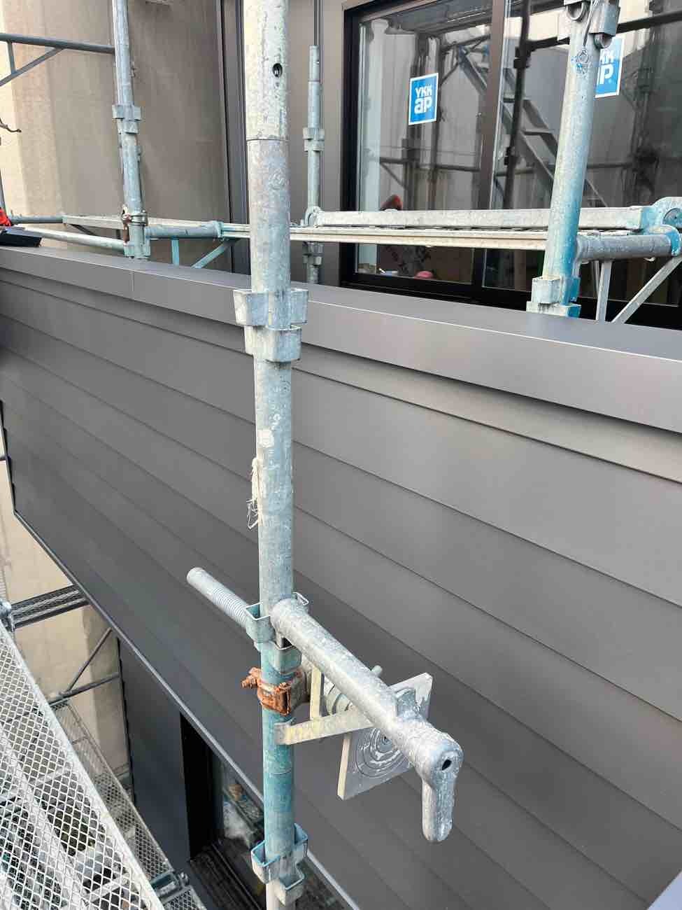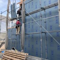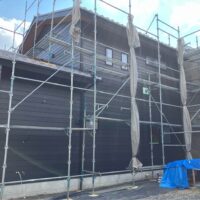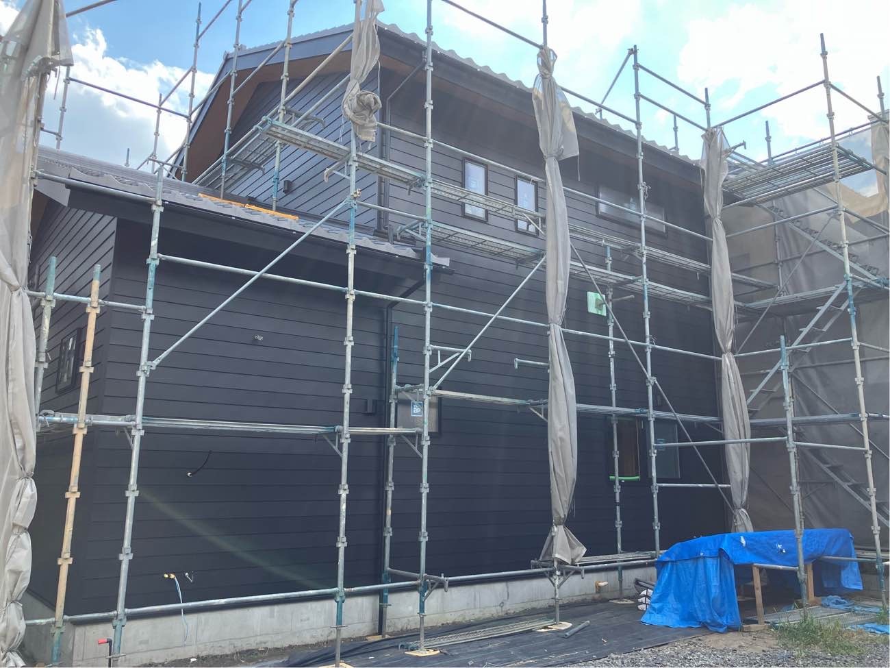 外部は、外壁のガルバリウム鋼板も張られました。足場が外れるのが楽しみです。
