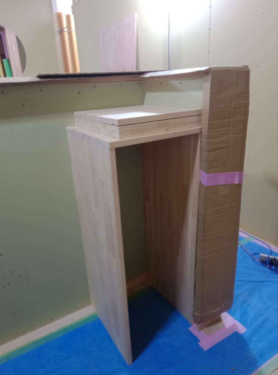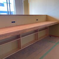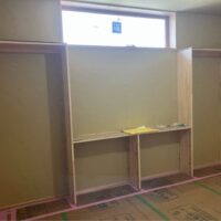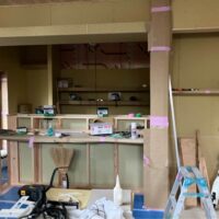 カップボードの吊り戸も決まり、各所の下地材を入れ終えています。