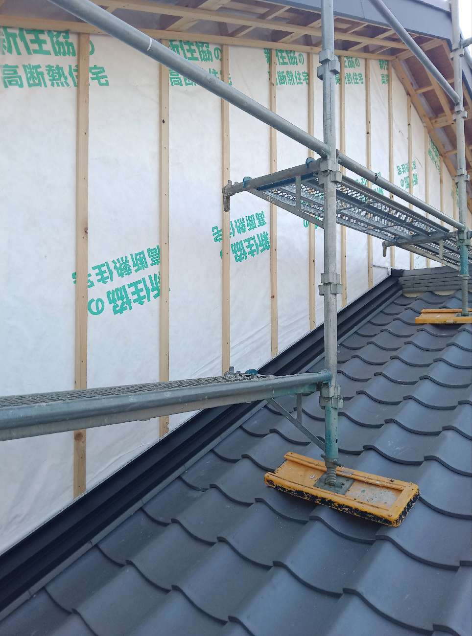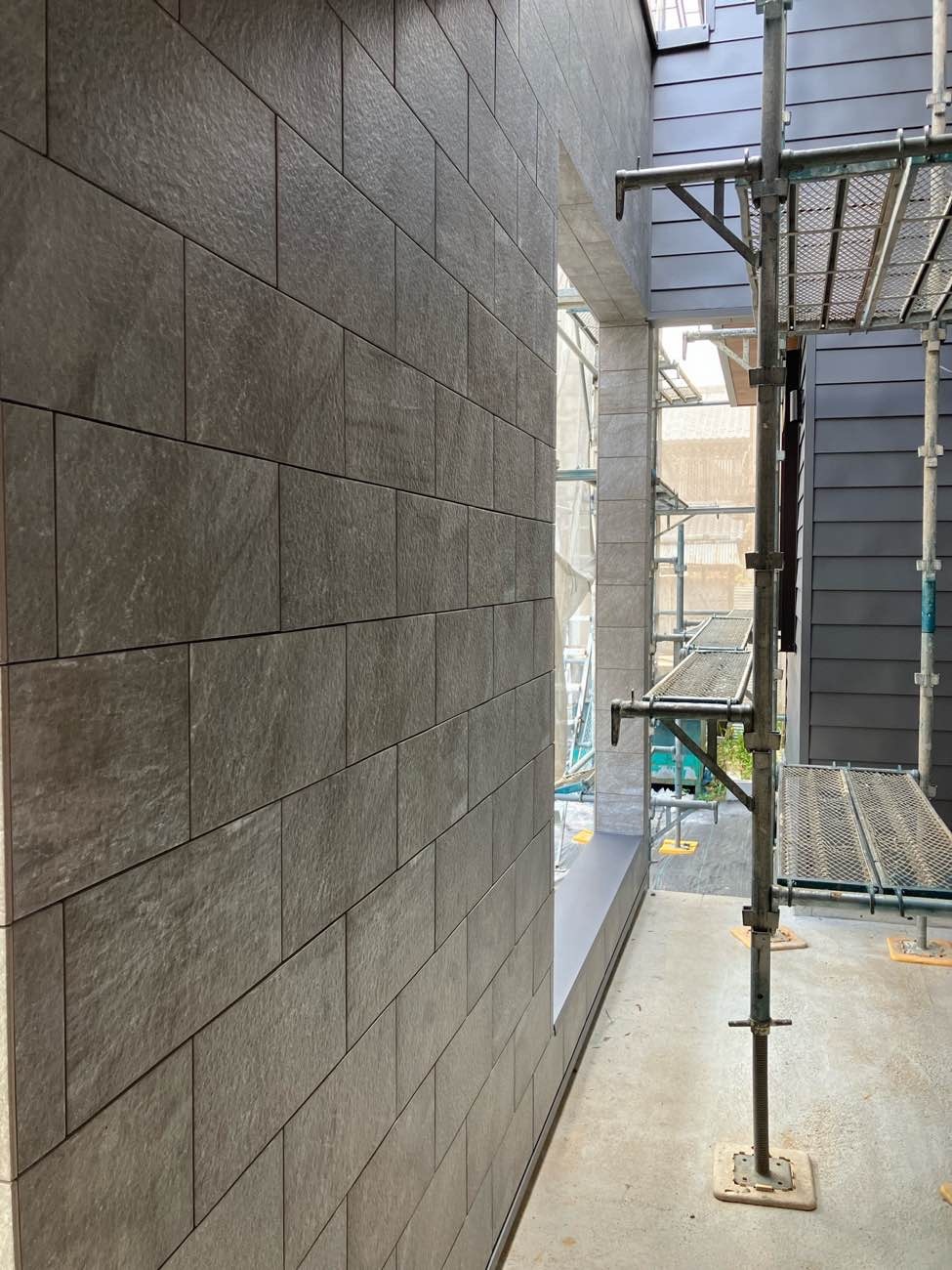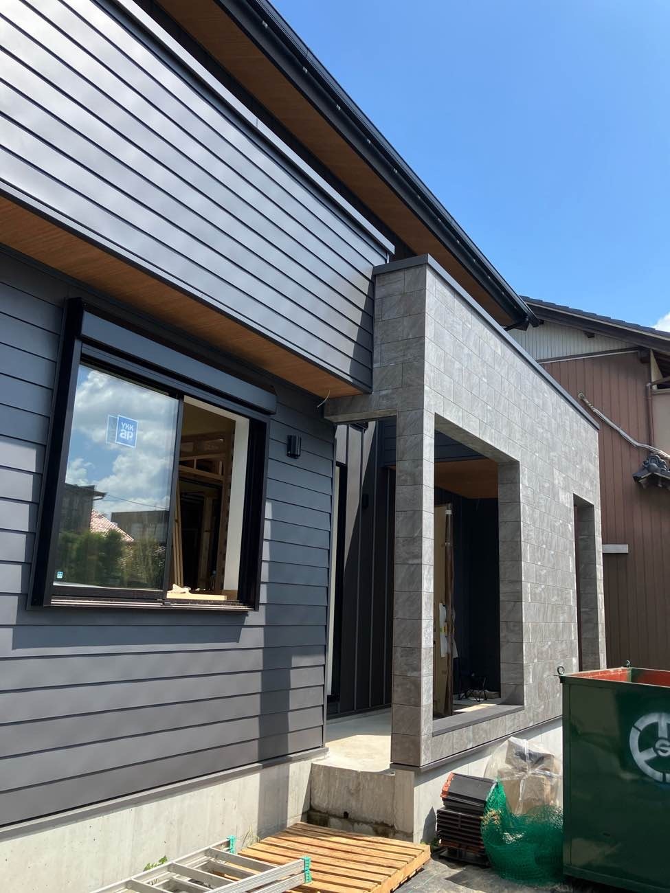 外壁のタイル貼りも終えています。色を悩まれましたが、お勧めしていた外壁の色に似た色にされました。色に統一感があり、落ち着いた雰囲気になりそうです👍