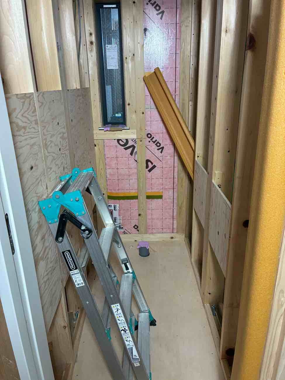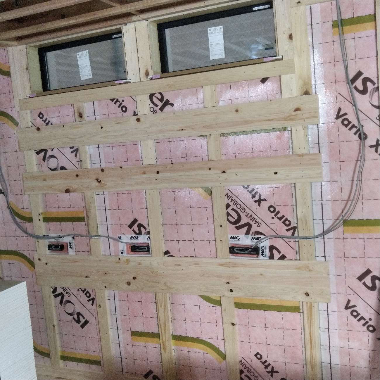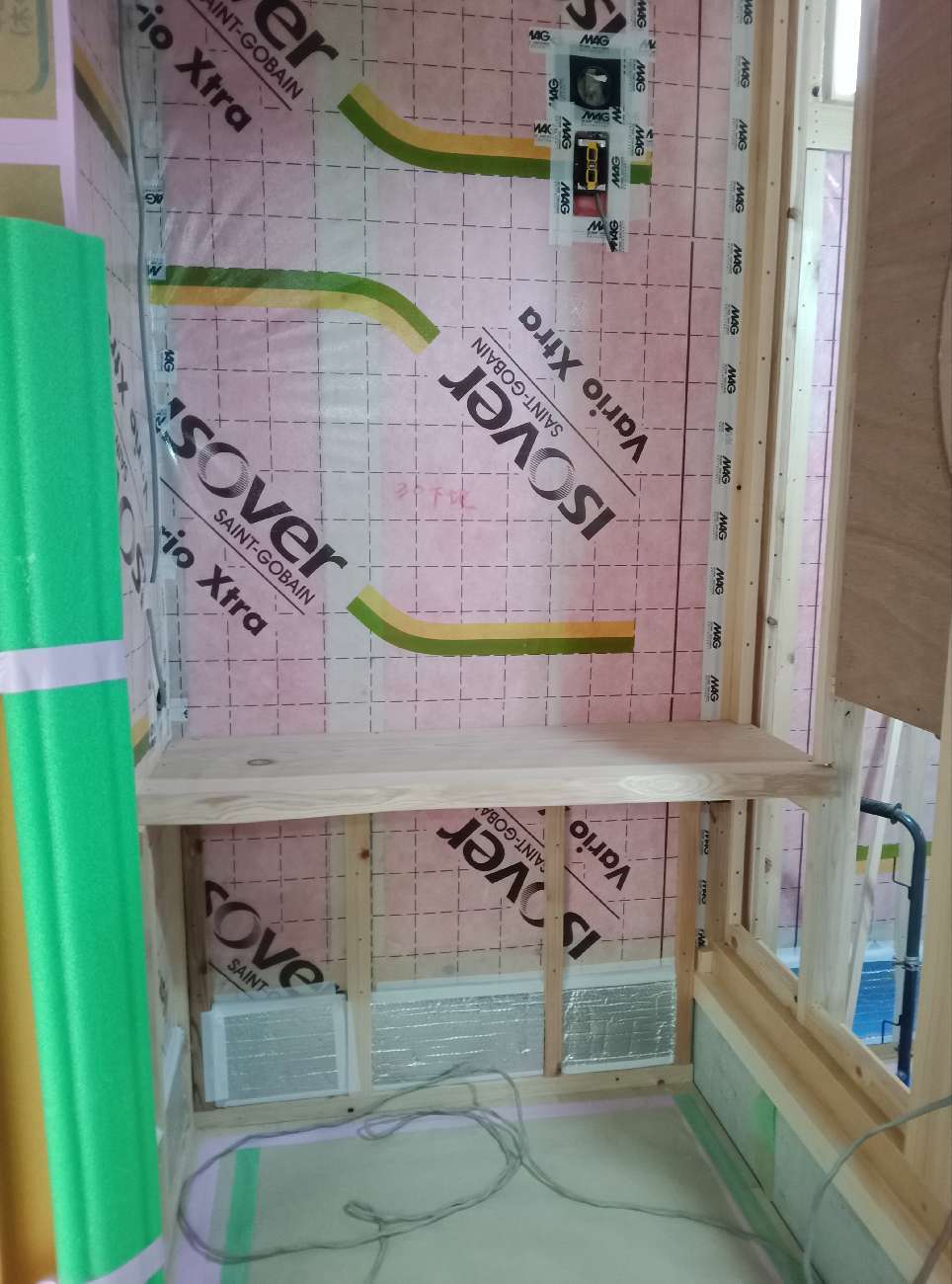 エアコン用の小さなキャットウォークや1階洗面後ろのカウンターなどの造作も完了しています👍明後日の日曜日は、クロスやタイルなど内装の打合せを江南事務所で行う予定です。大工さん達の丁寧な造作工事に、仕上げ工事で化粧され、どんな空間になるのでしょうか?楽しみです。