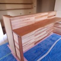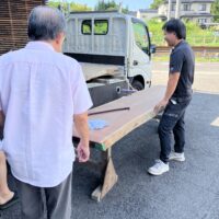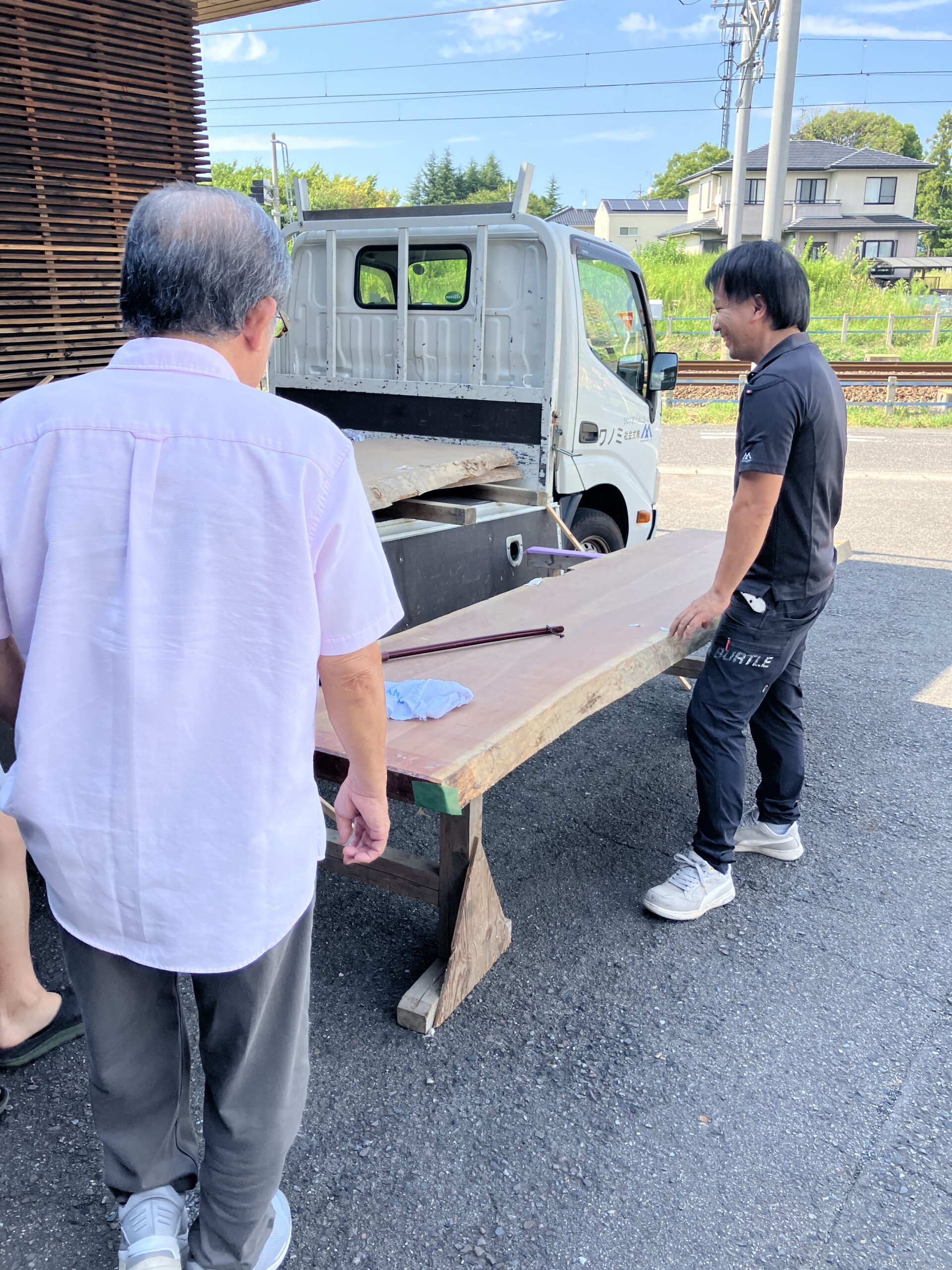 お父様は、やっぱりカウンターは無垢の耳付きにしたいとの事で、急遽本社から4枚ほど運んで来て選んで来ました。赤身と白太があるチェリー材を選ばれました。仕上がりが楽しみですね。