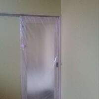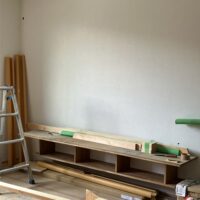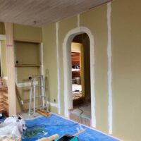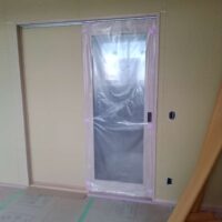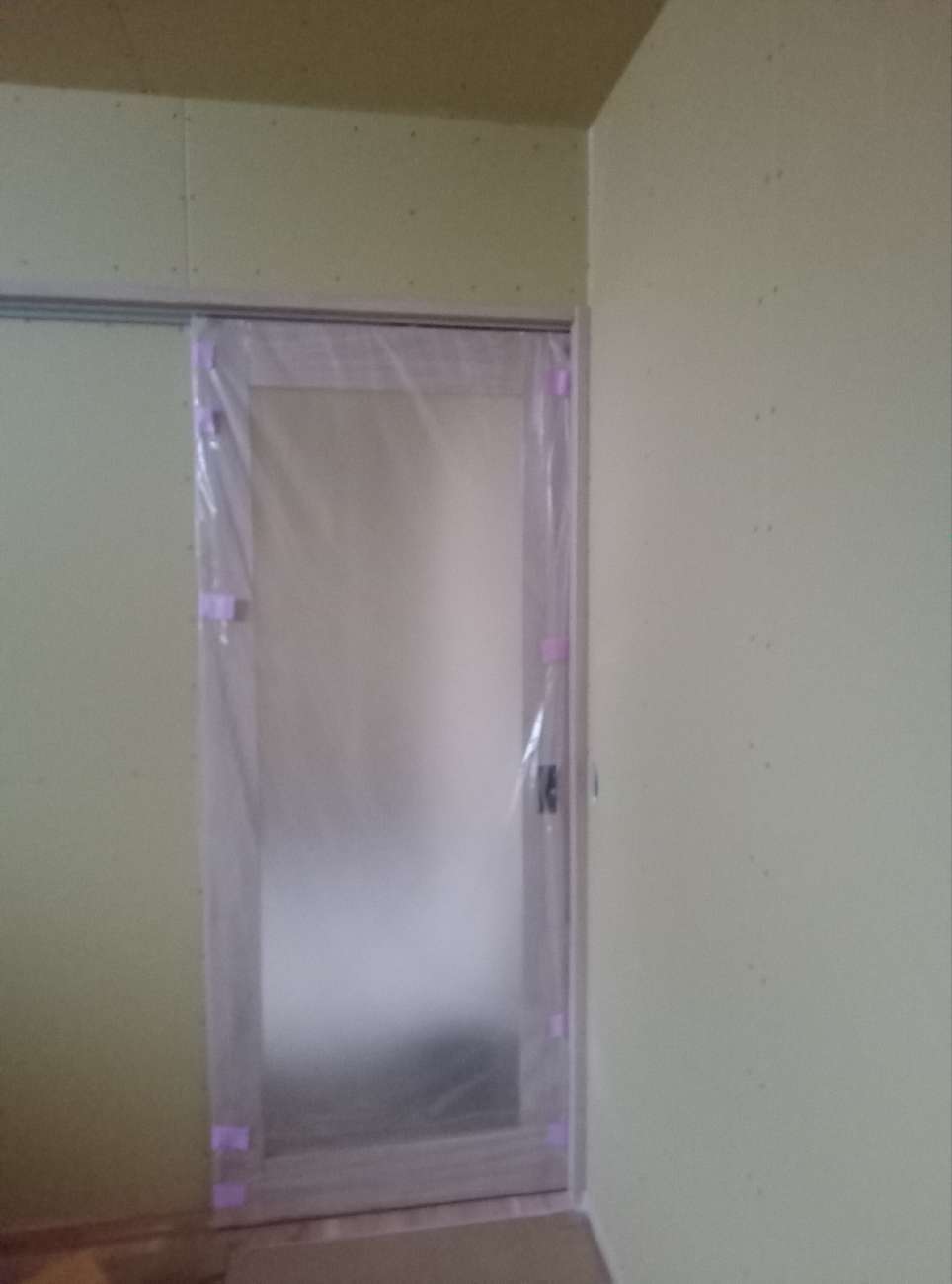 離れは、仕上げ工事に着手しました。クロス工事の前に、Eエスさんが塗装工事に入りました。