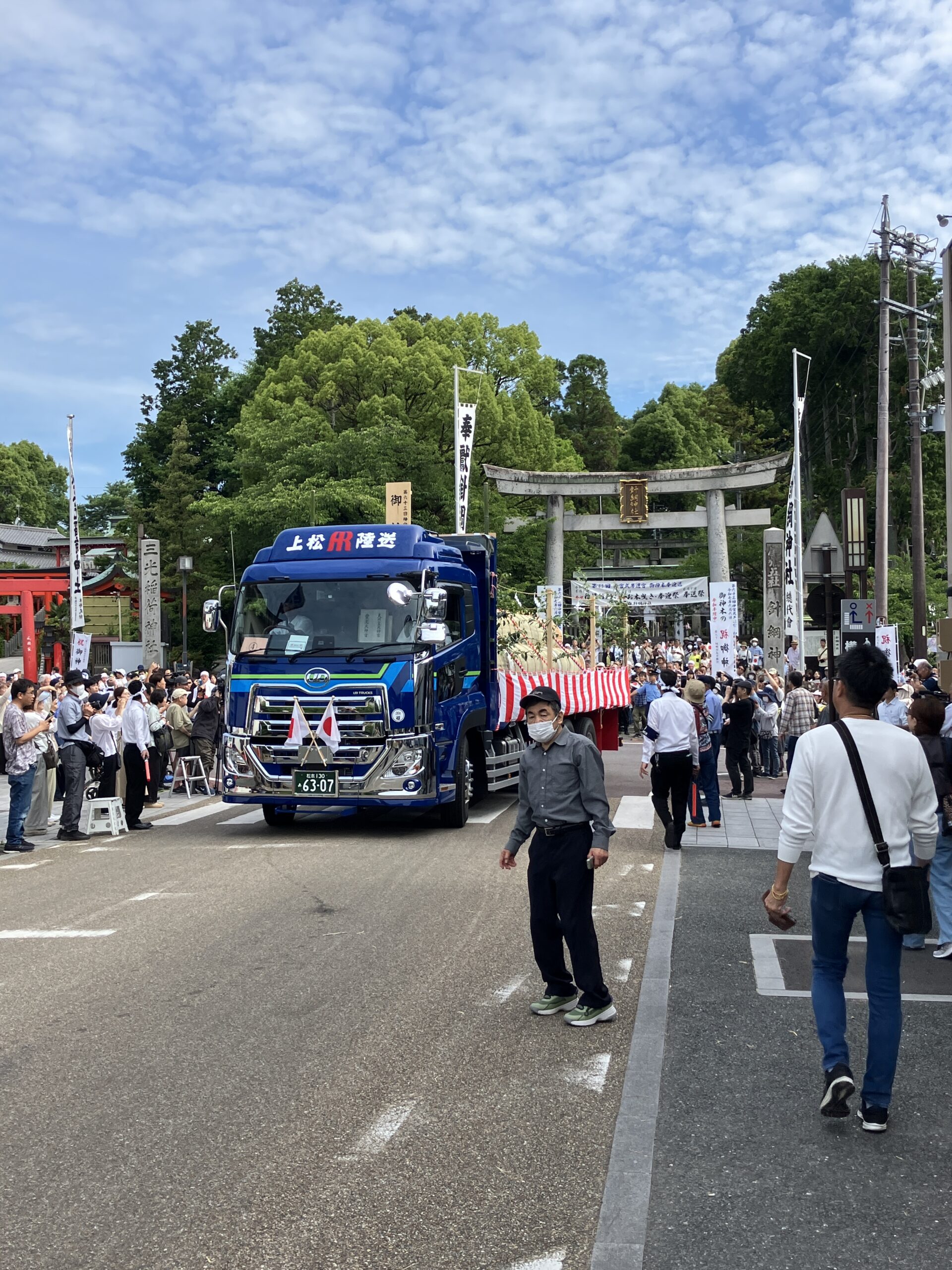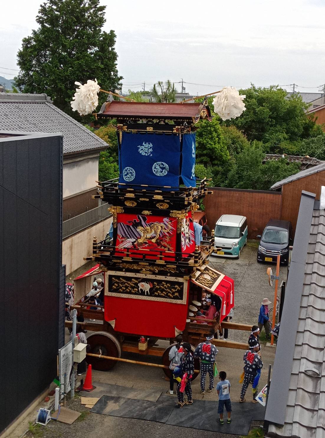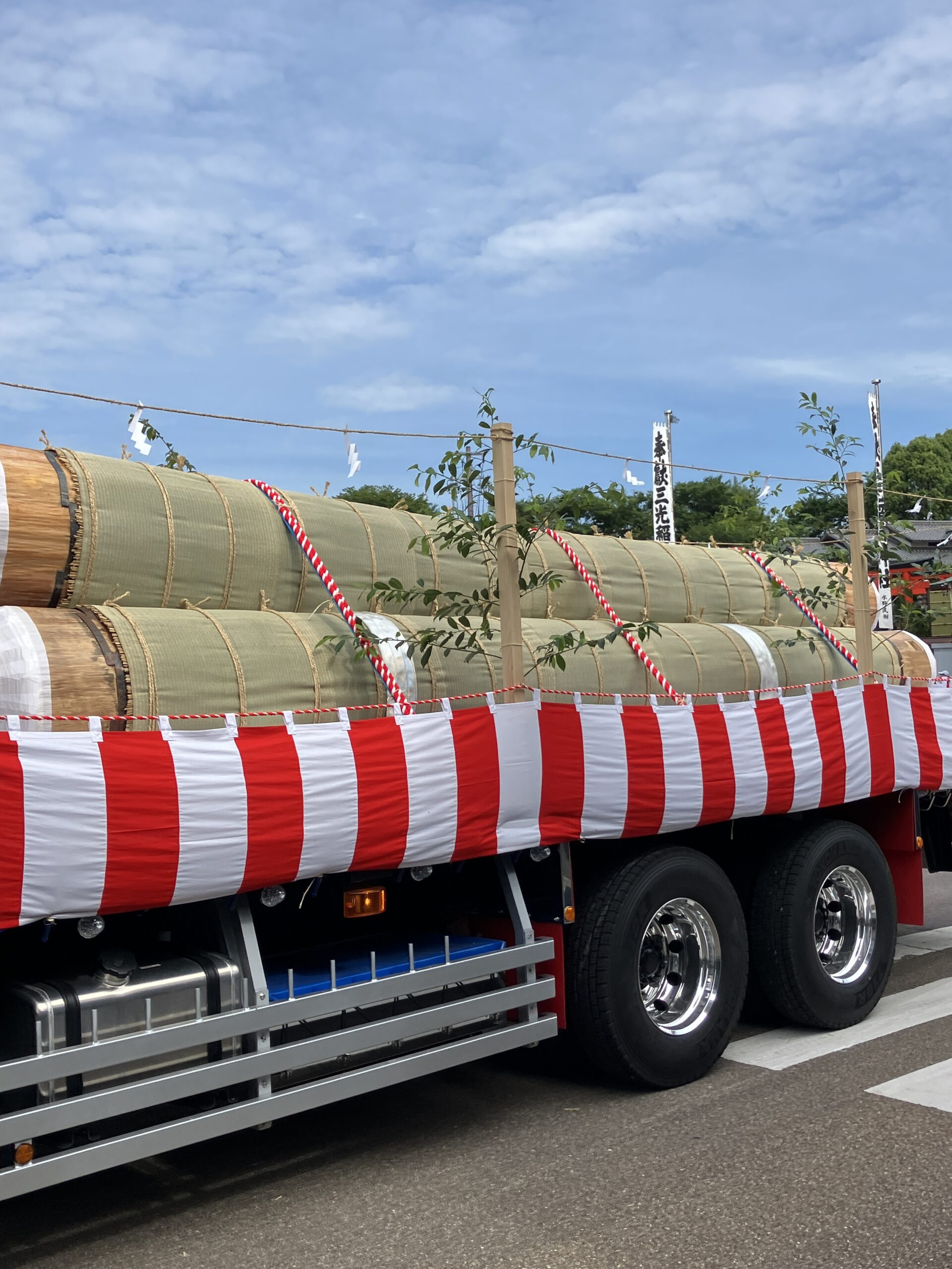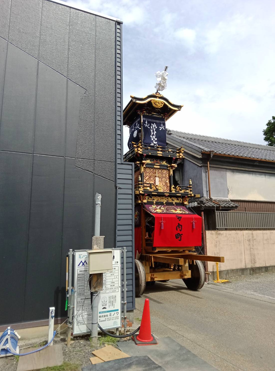 今日は針綱神社で、先日長野県で伐採された御神木を迎える為、山車が現場の前を練り歩いた様子をk大棟梁に写真をいただきました👍