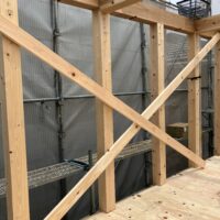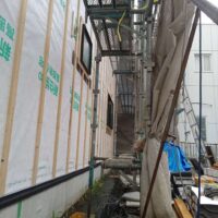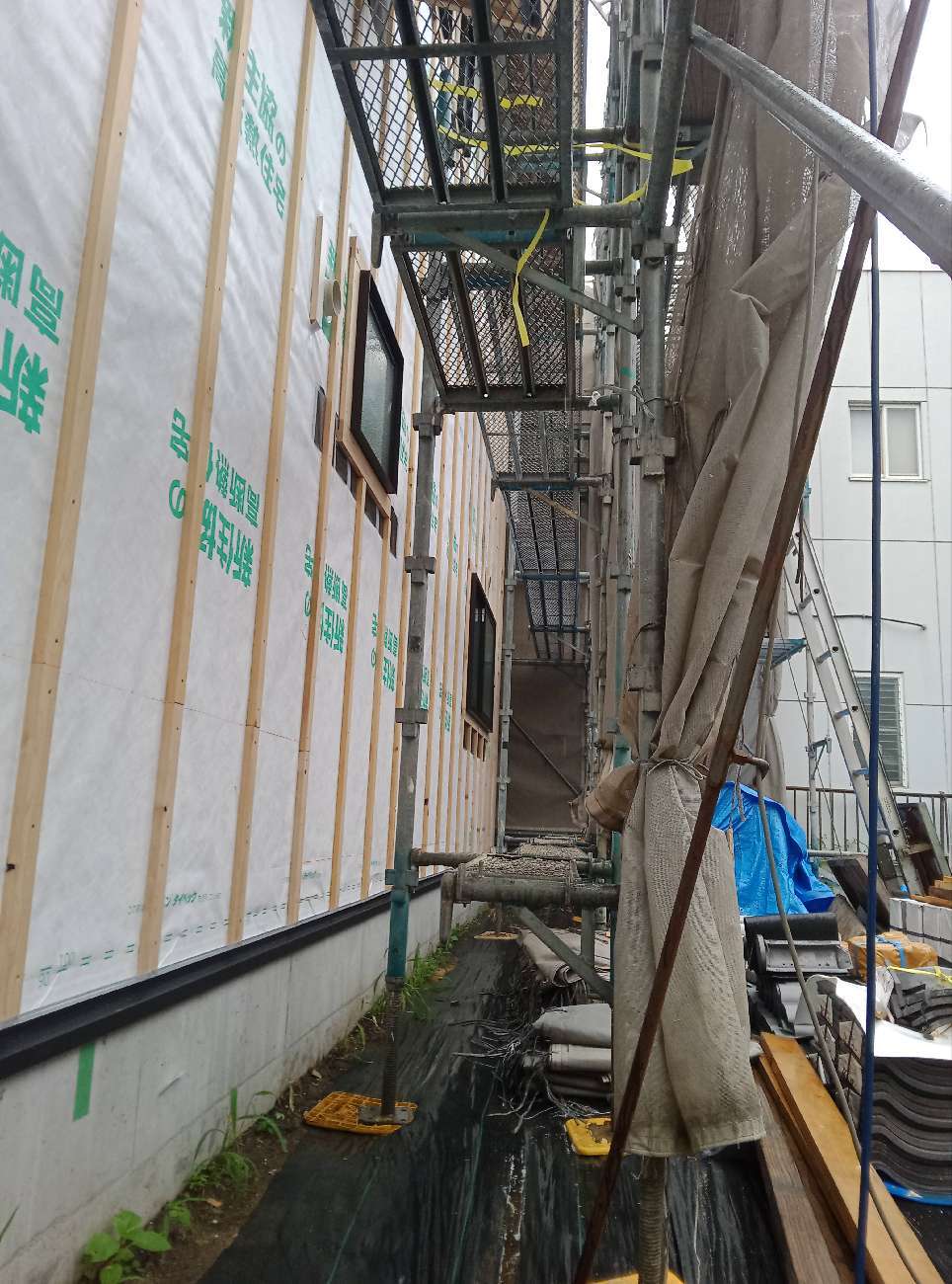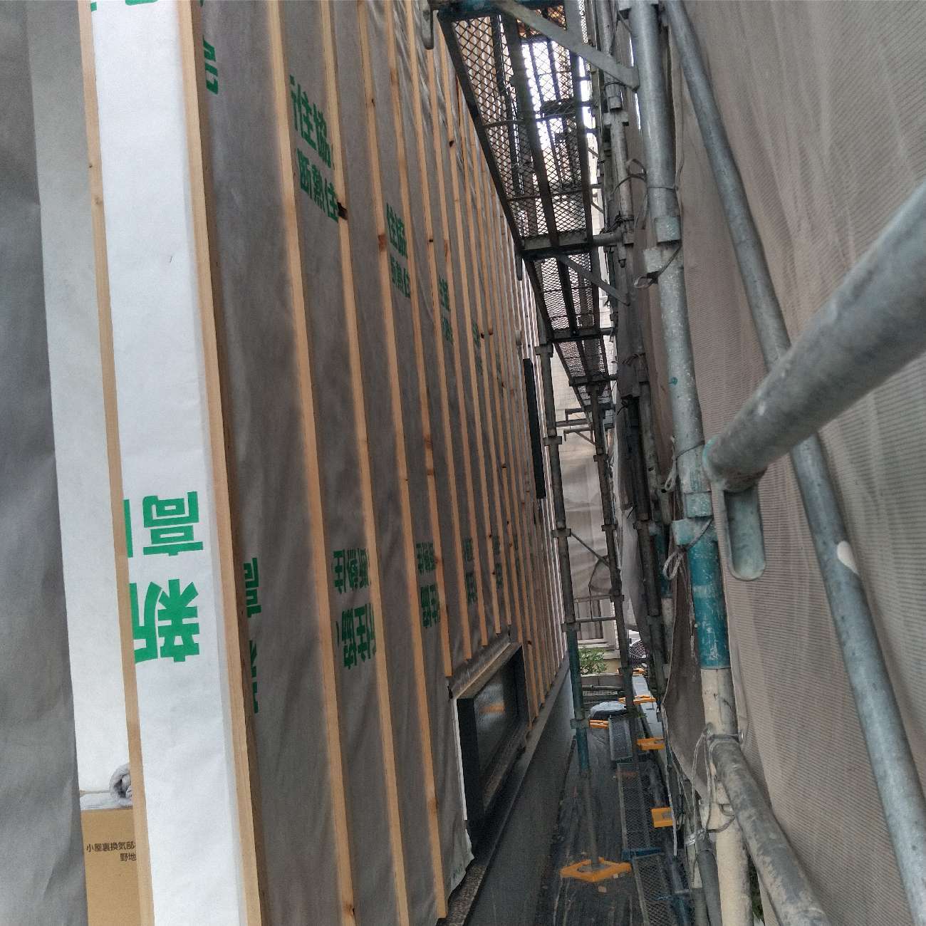 離れの外部も、通気胴縁兼外壁下地の取付が終わった様子です。