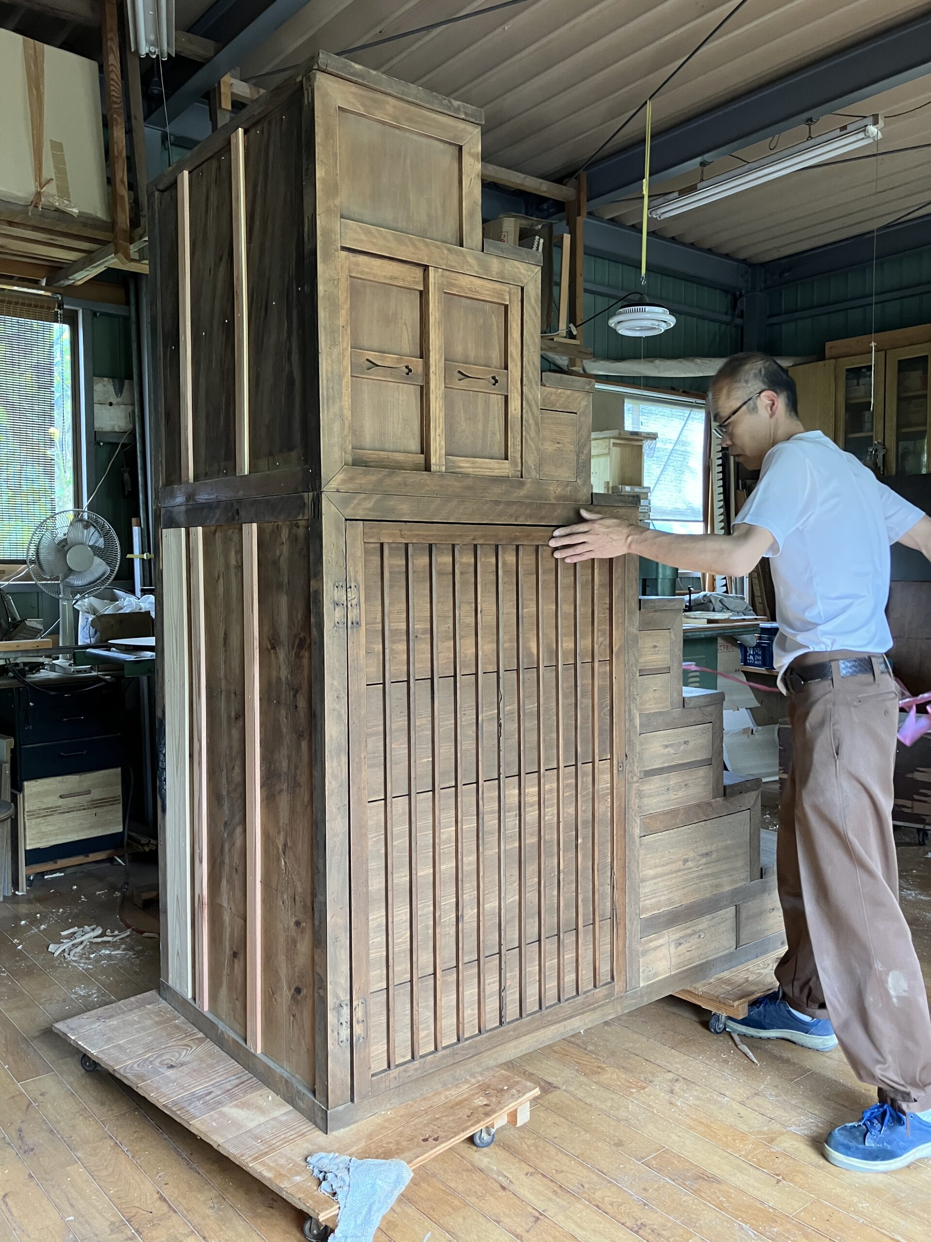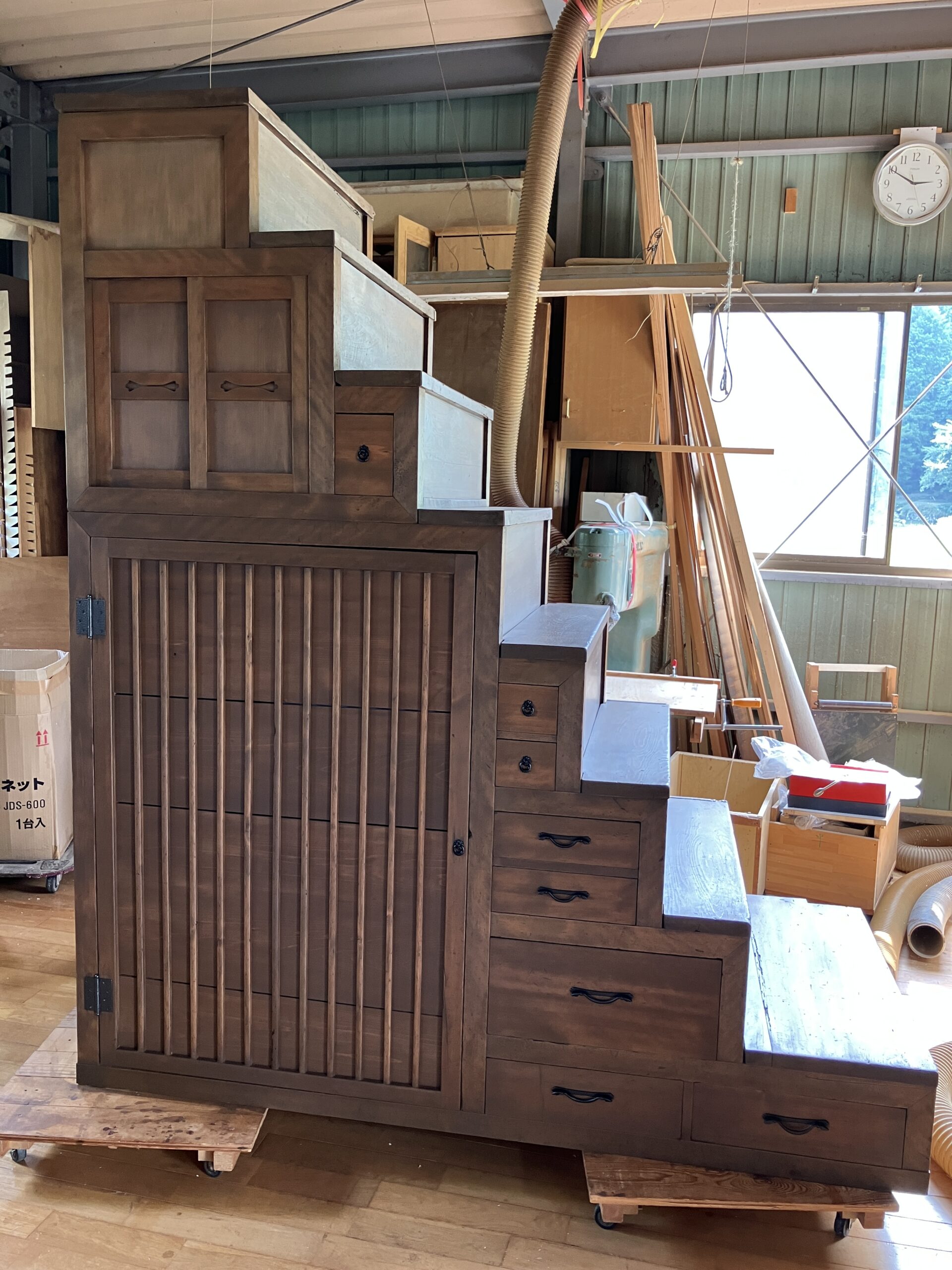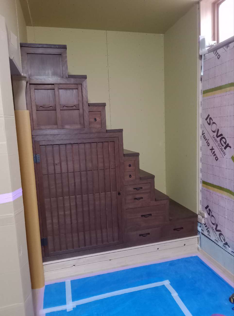 k池大棟梁により、夏期休暇の間に収納階段が設置されました👍和室の造作工事も終わっています。