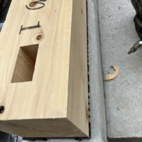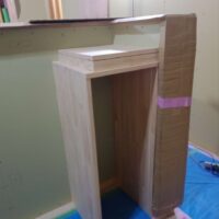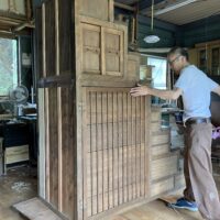 本社会議の帰りに、f木工さんにお願いしている階段収納補修状況を見てきました。ススで真っ黒になっていた階段収納を何度も洗って、少し着色をしたところです。お隣の火事で焼けた部分も補強してもらいました。