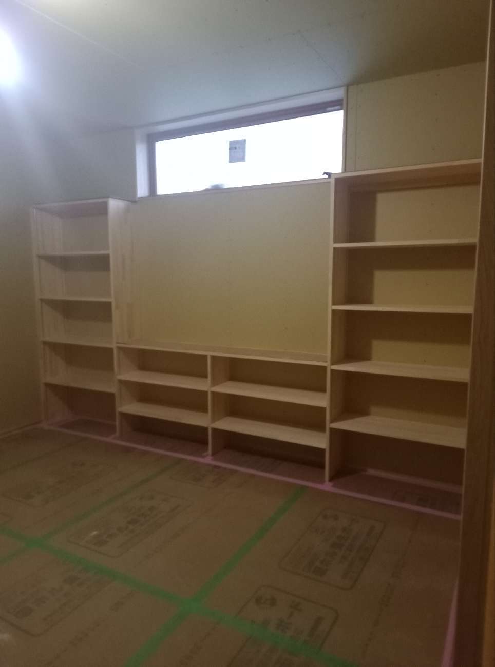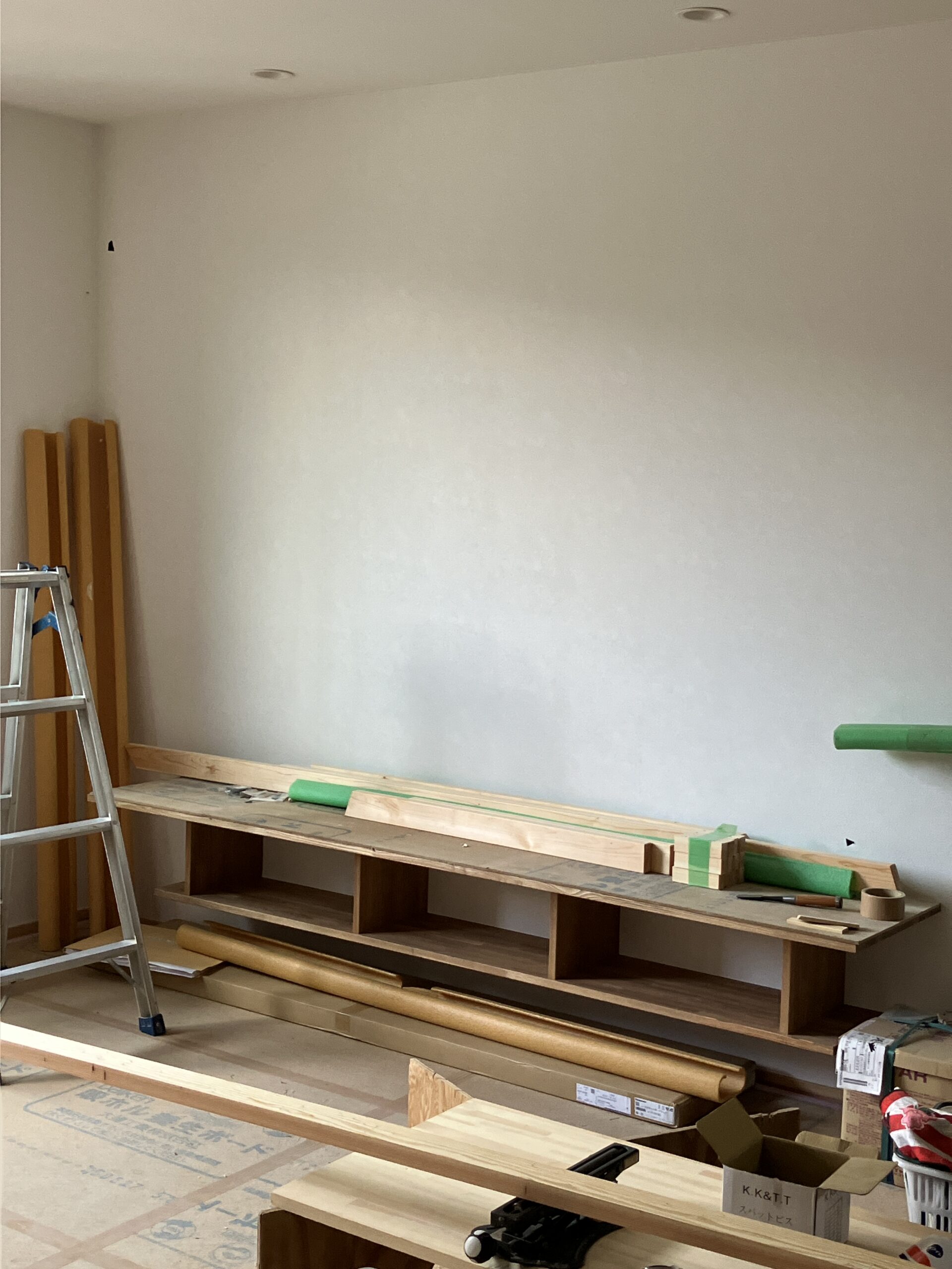先日、k池大棟梁により工場で加工された棚板達も搬入されました👍木工事完了です。