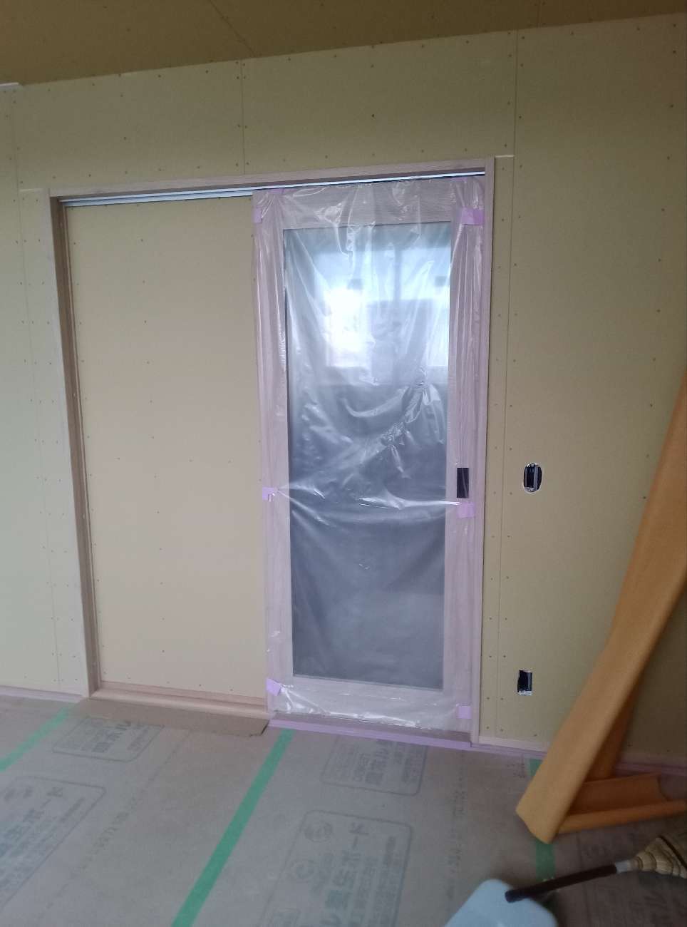 母屋も、大工さんの造作工事が終わり、木工事完成です。クローゼット内の相ジャクリ板は、応援に来てくれたk保木大工さんが仕上げてくれました。建具のつり込みも終わり、母屋も離れに続いて、仕上げ工事に入っていきます。h典棟梁、k保木大工さんも、いろいろと変更にも快く対応していただき、ありがとうございました。助かりました。お疲れ様でした。