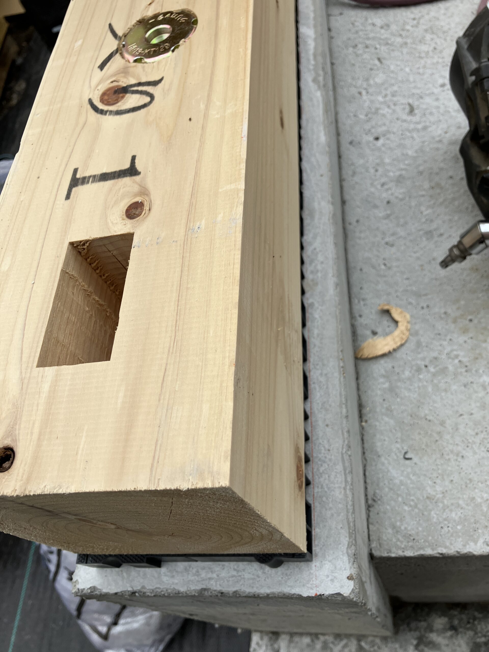 h典棟梁に、めちゃくちゃ早い土台伏せの秘密を聞きました。土台を伏せていく前に基礎の上に墨出しを行う事によって効率が上がるとの事です。本業に取り掛かる前の下準備が大切という事ですね。土台伏せに限らず、いろんな場面で創意工夫されるので、早くてきれいな仕事に繋がるんですね👍
