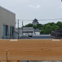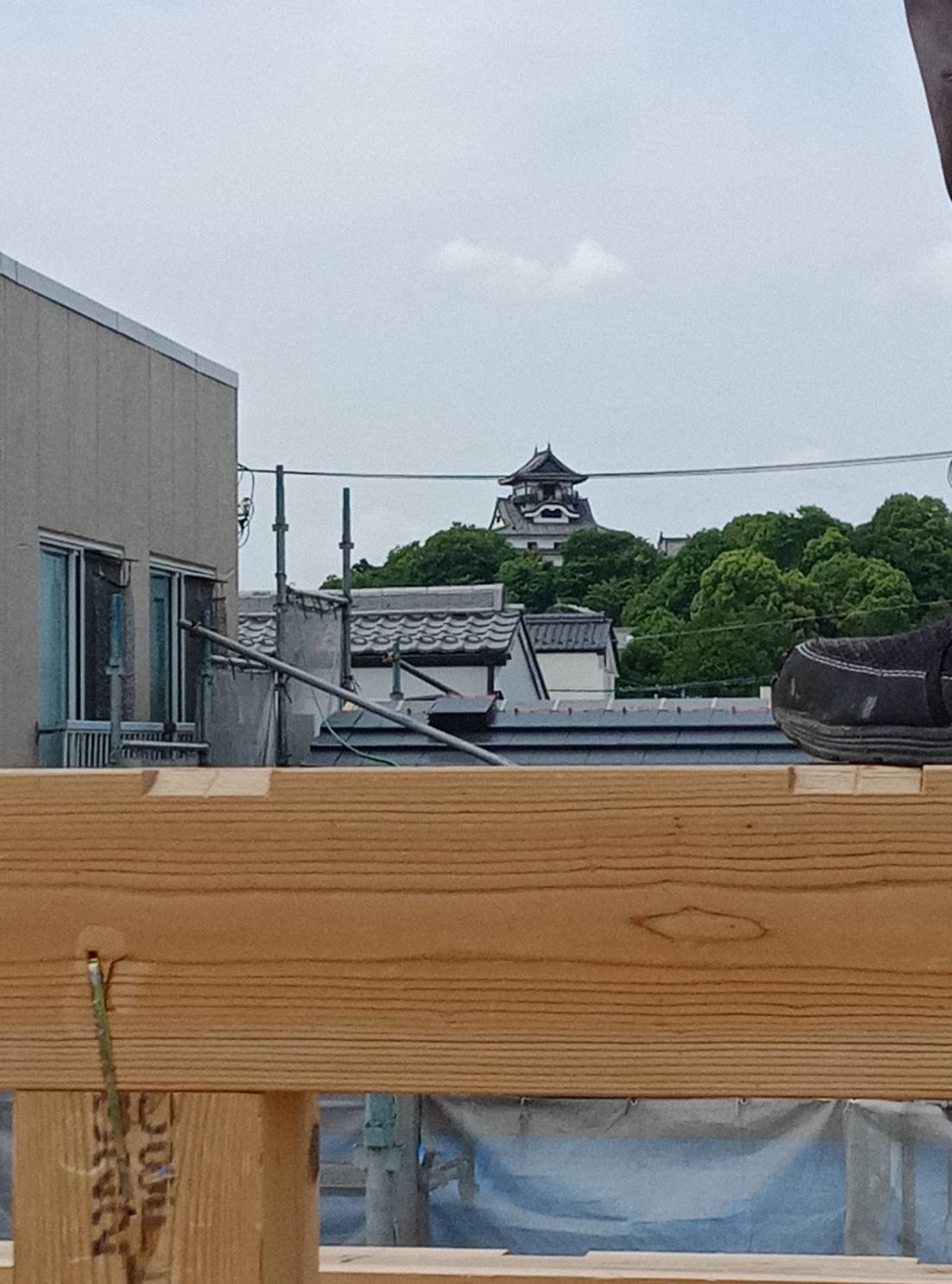 邪魔にしかなりませんでしたが、2階の小屋部分に登ってみました。北側には犬山城(撮影:k池大棟梁)