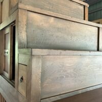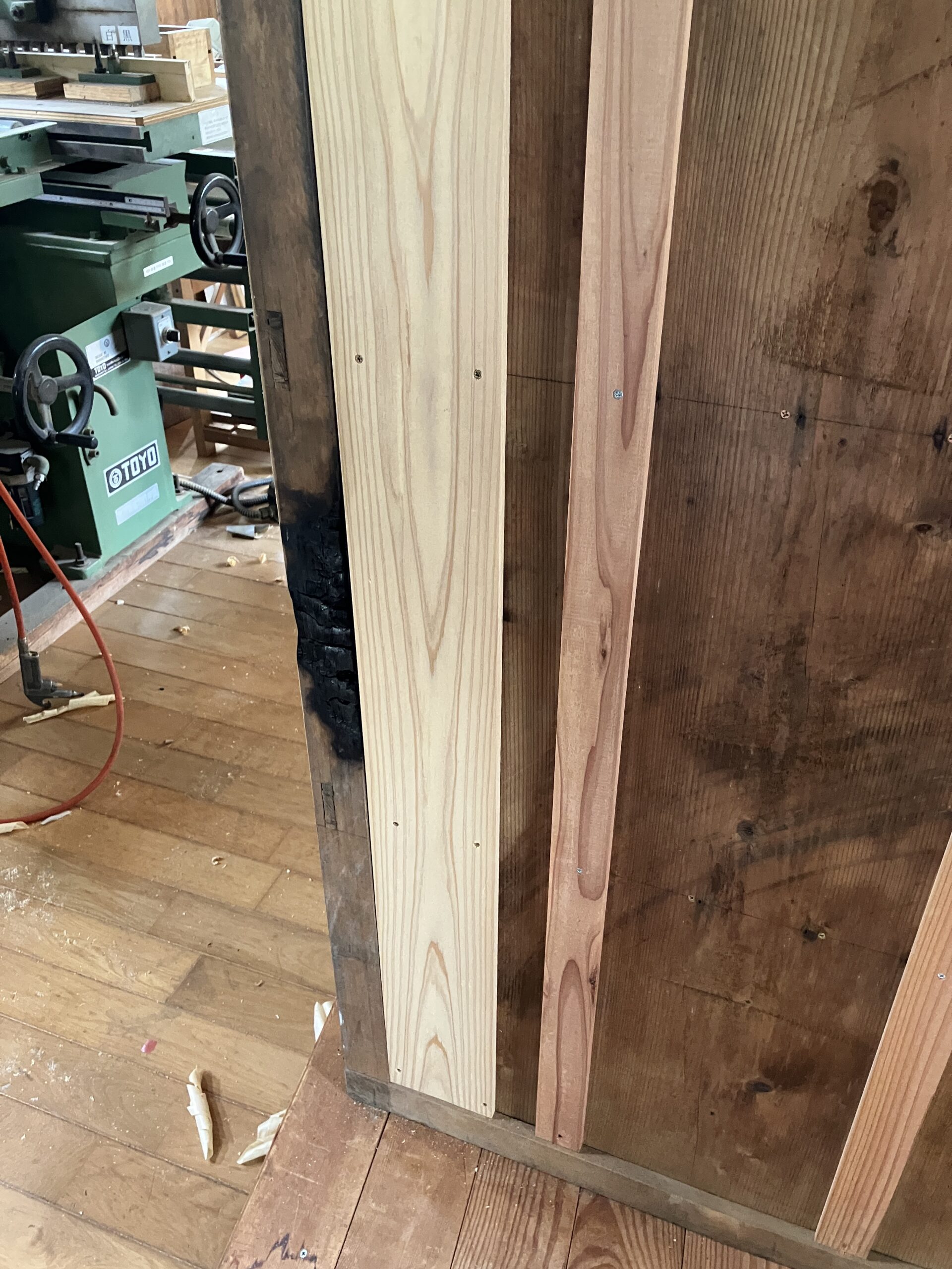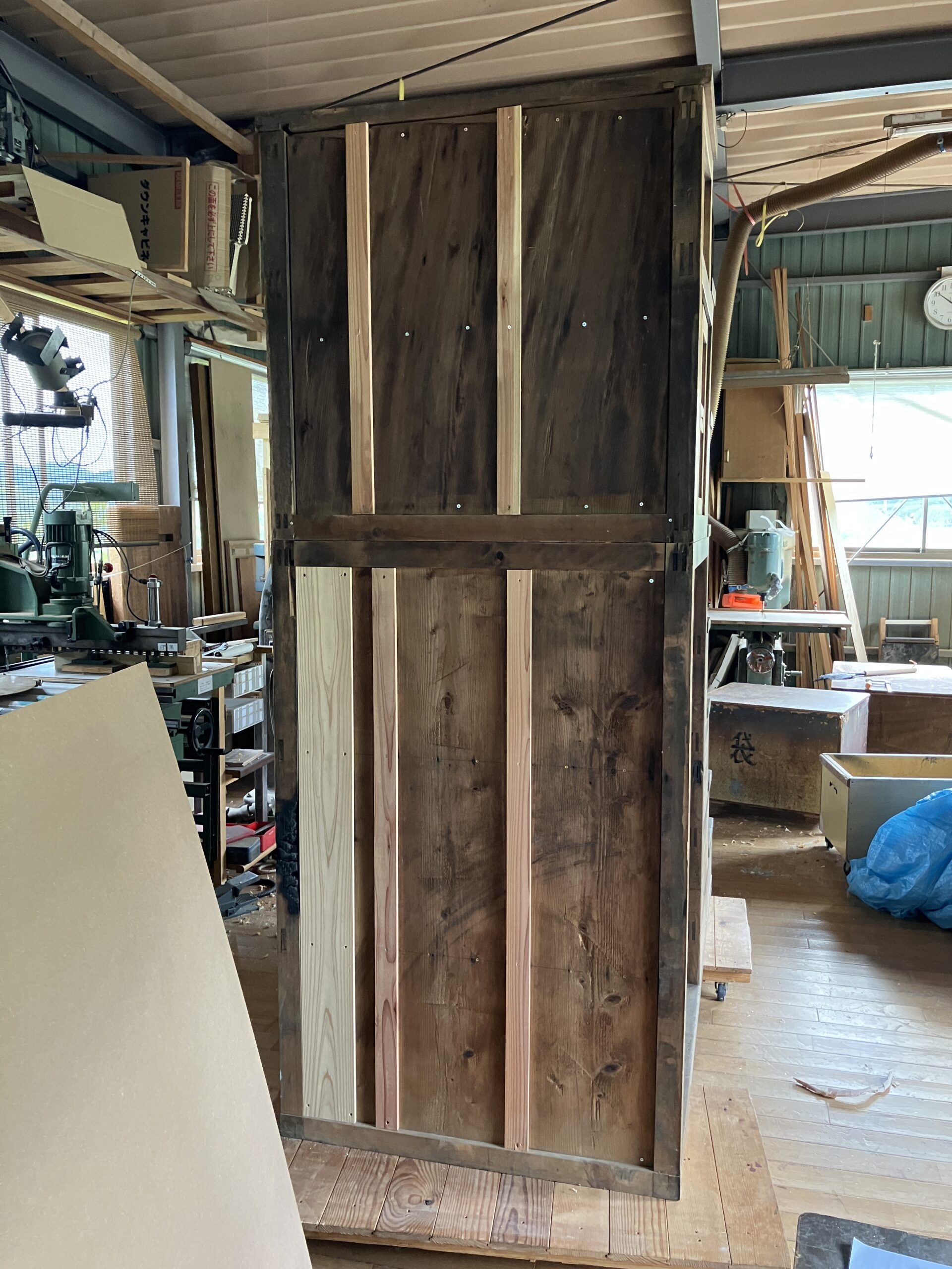 本社会議の帰りに、f木工さんの工場に寄りました。こんな感じでどう?という事で、写真を撮り、扉くを1枚お借りして次回の打ち合わせに見ていただく事に。階段は煤を取るのにかなり苦労され、塗装は2度塗りしていただいています。金物は全て取り替えています👍