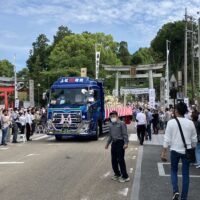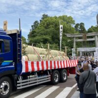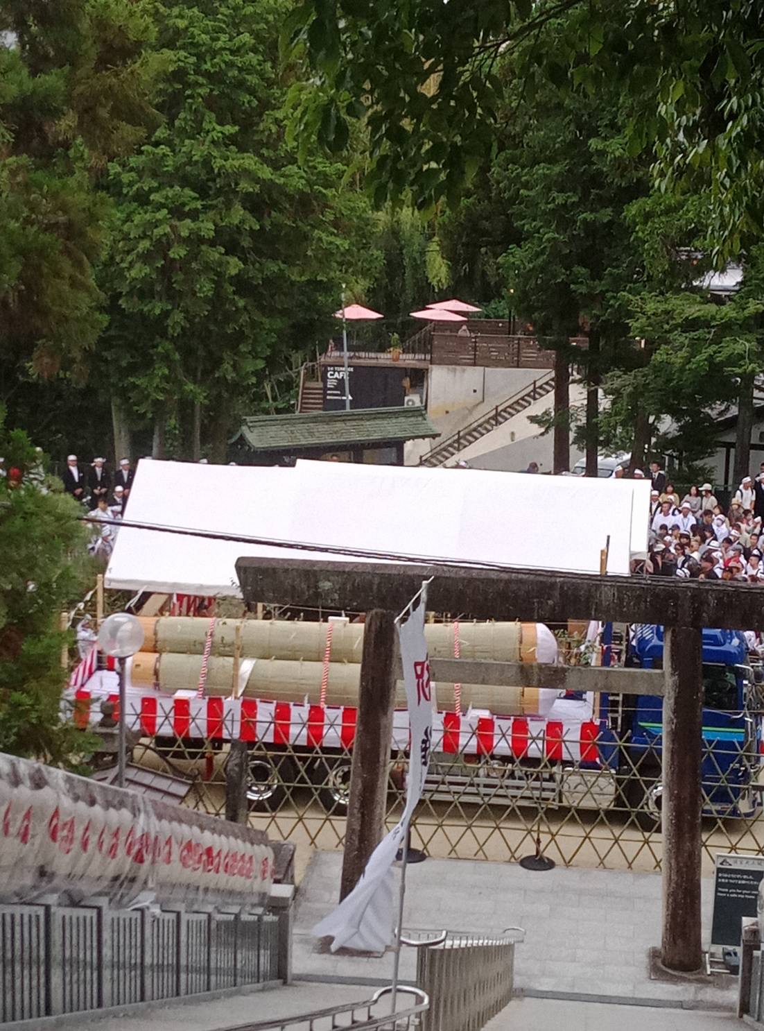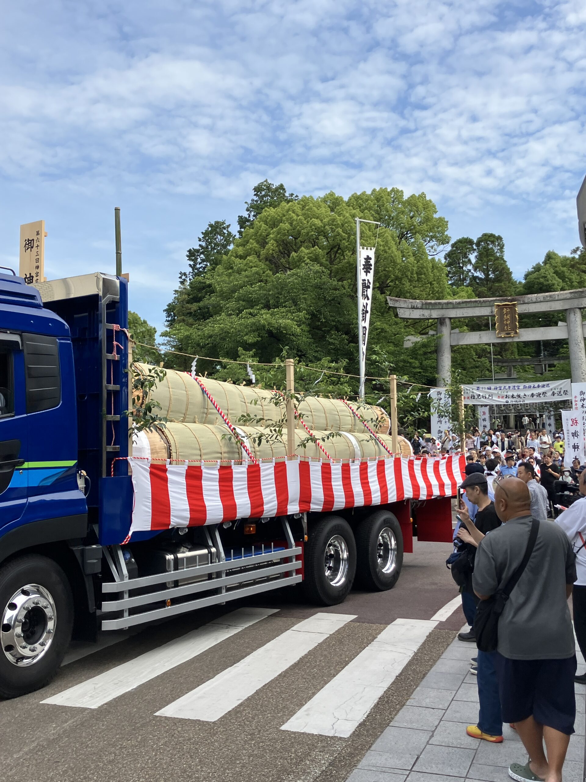 大棟梁、建て方の時から御神木奉迎送に興味津々。やっぱり御神木もしっかり見られた様です💦確かに20年に1度ですからね~犬山市はお祭り騒ぎの様子です👍(撮影:k池大棟梁)