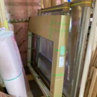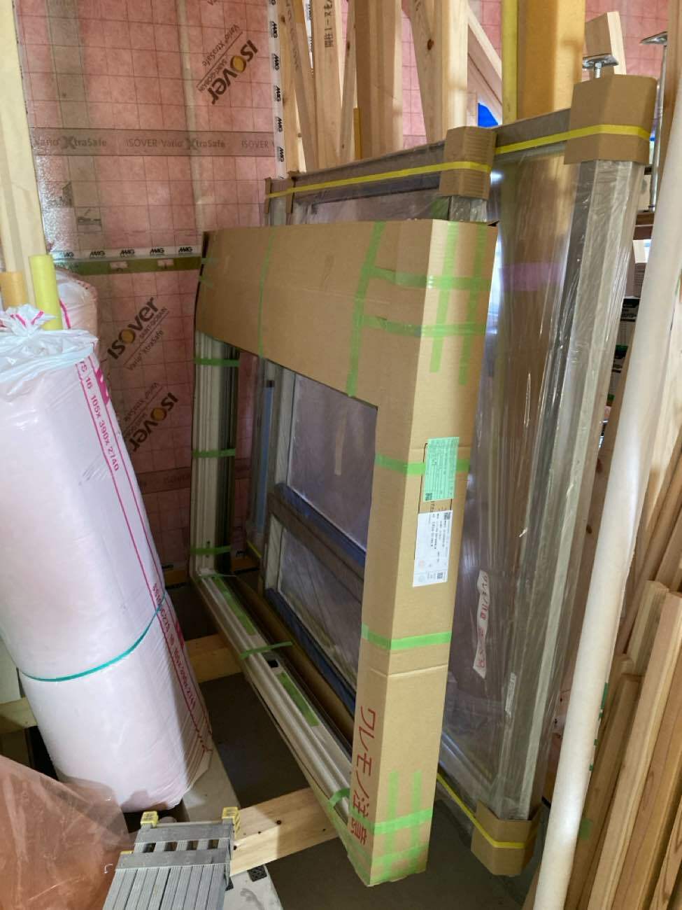 現場にはサッシが搬入され、室内に所狭しと並んでいます。
