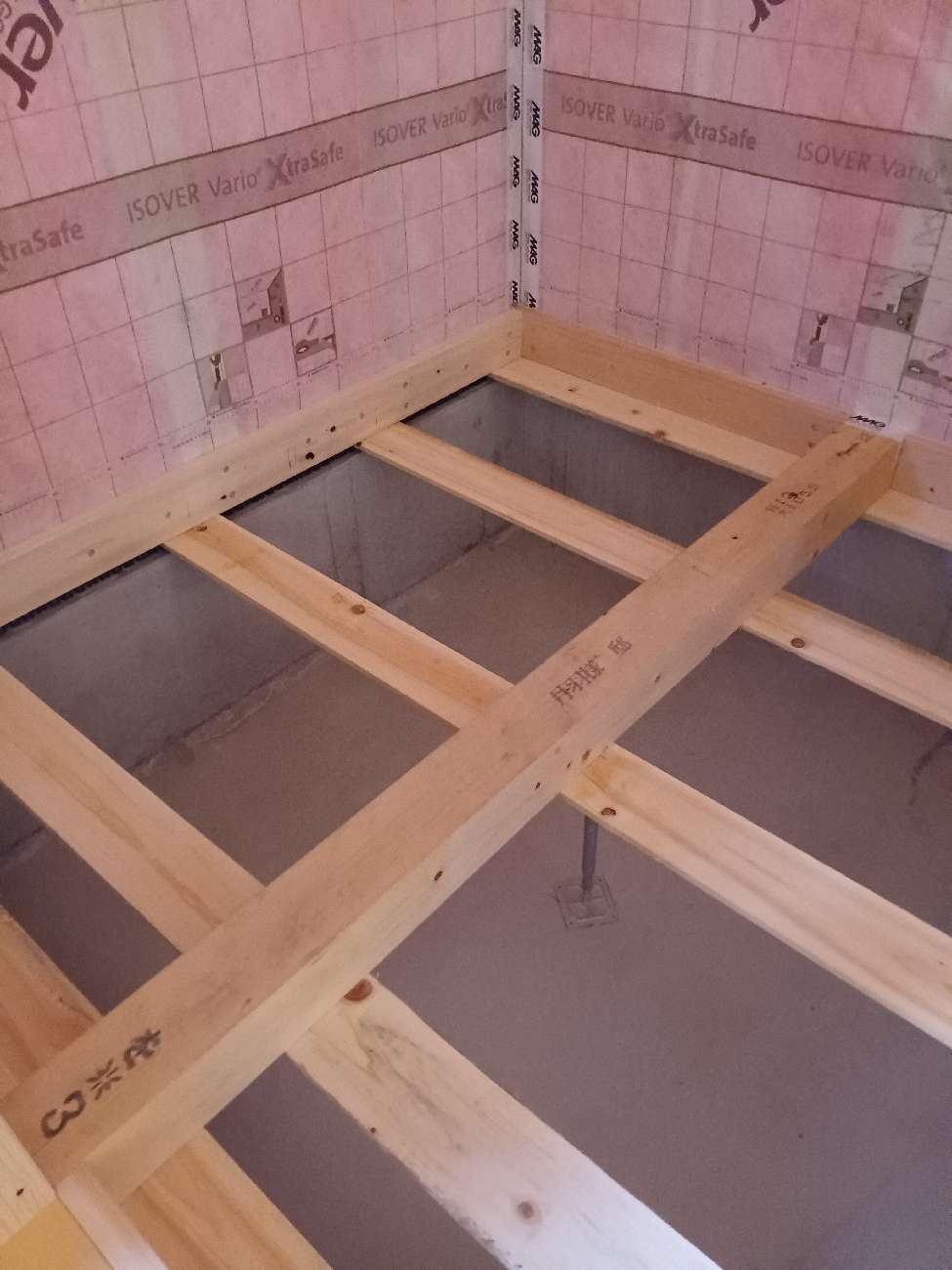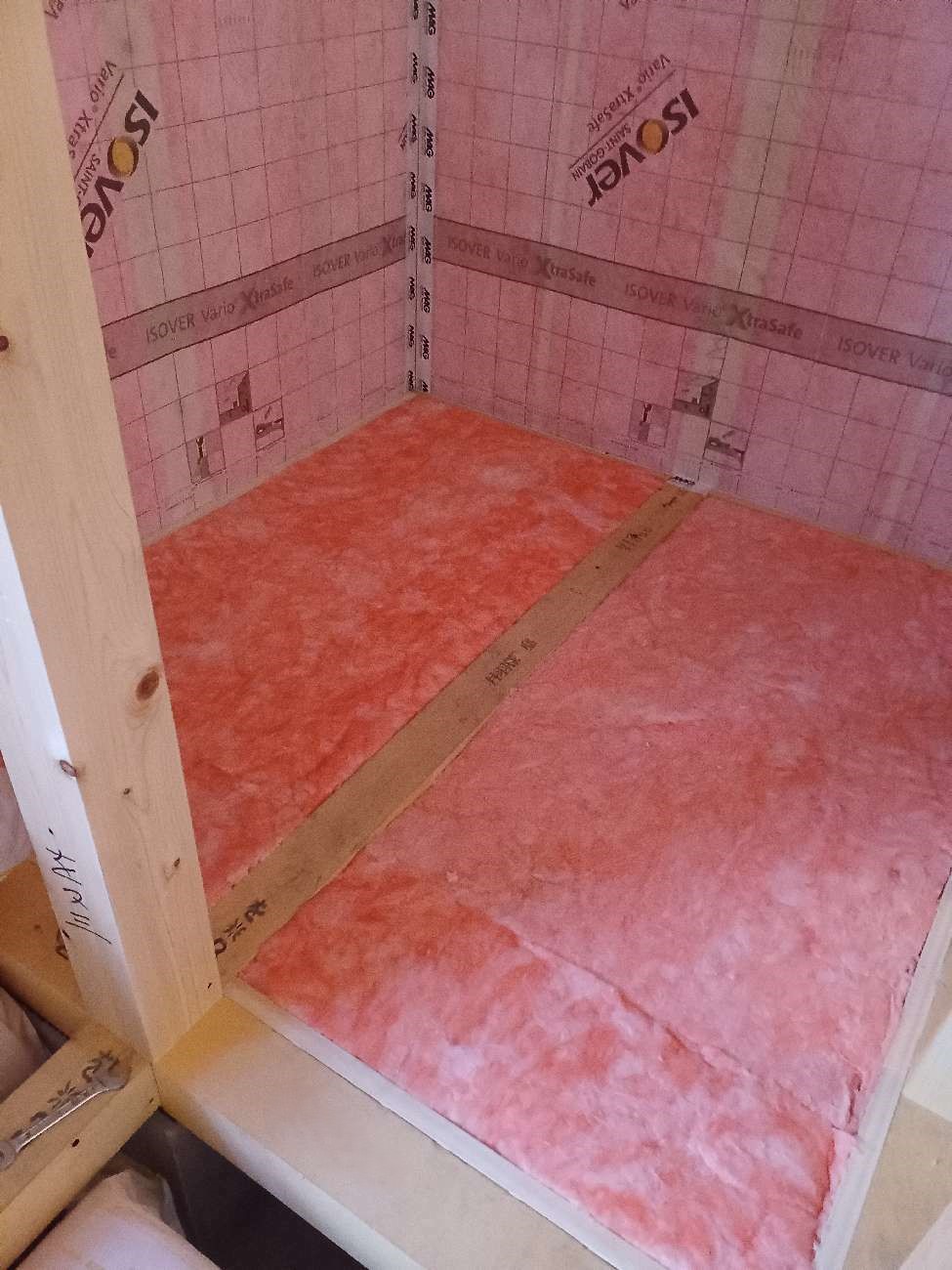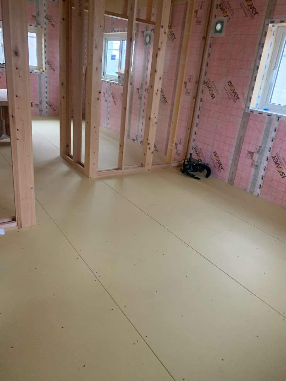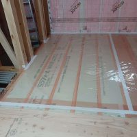 床も断熱材を施して、気密シートを張り、合板を張っています。