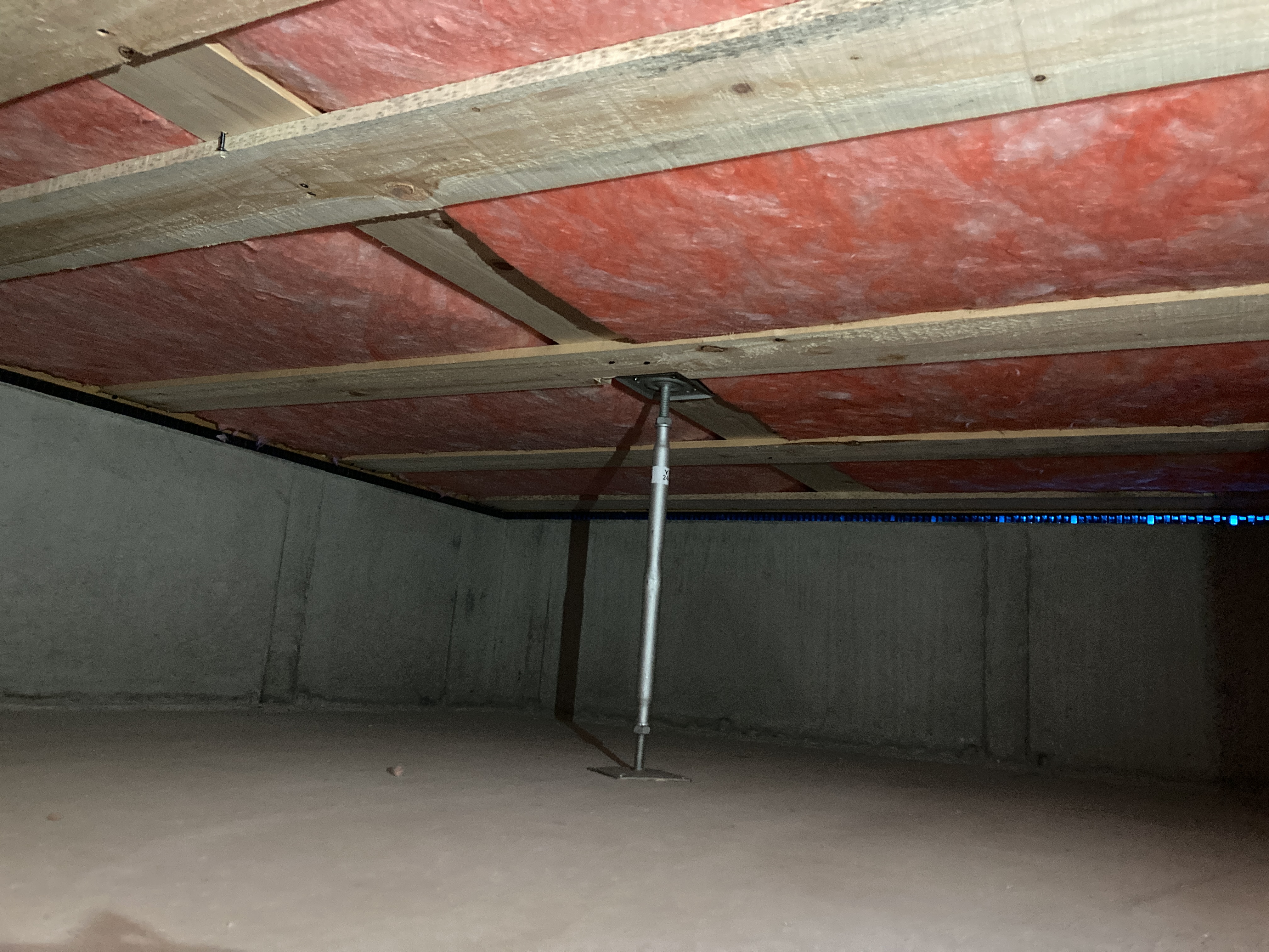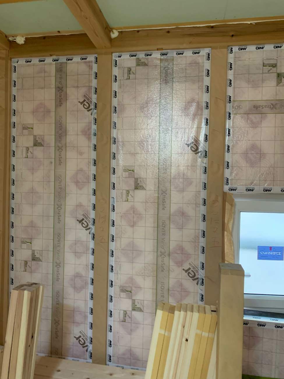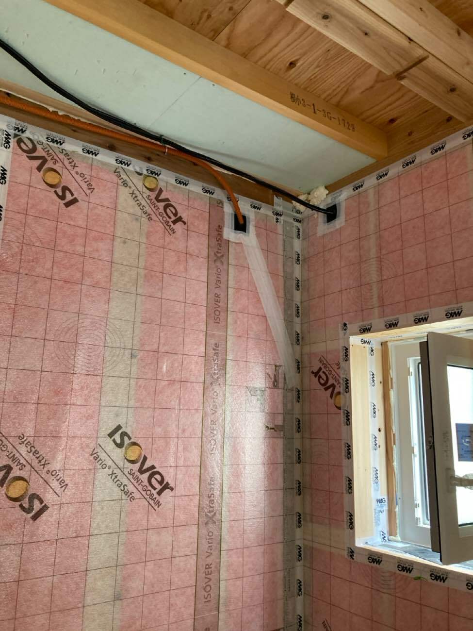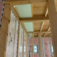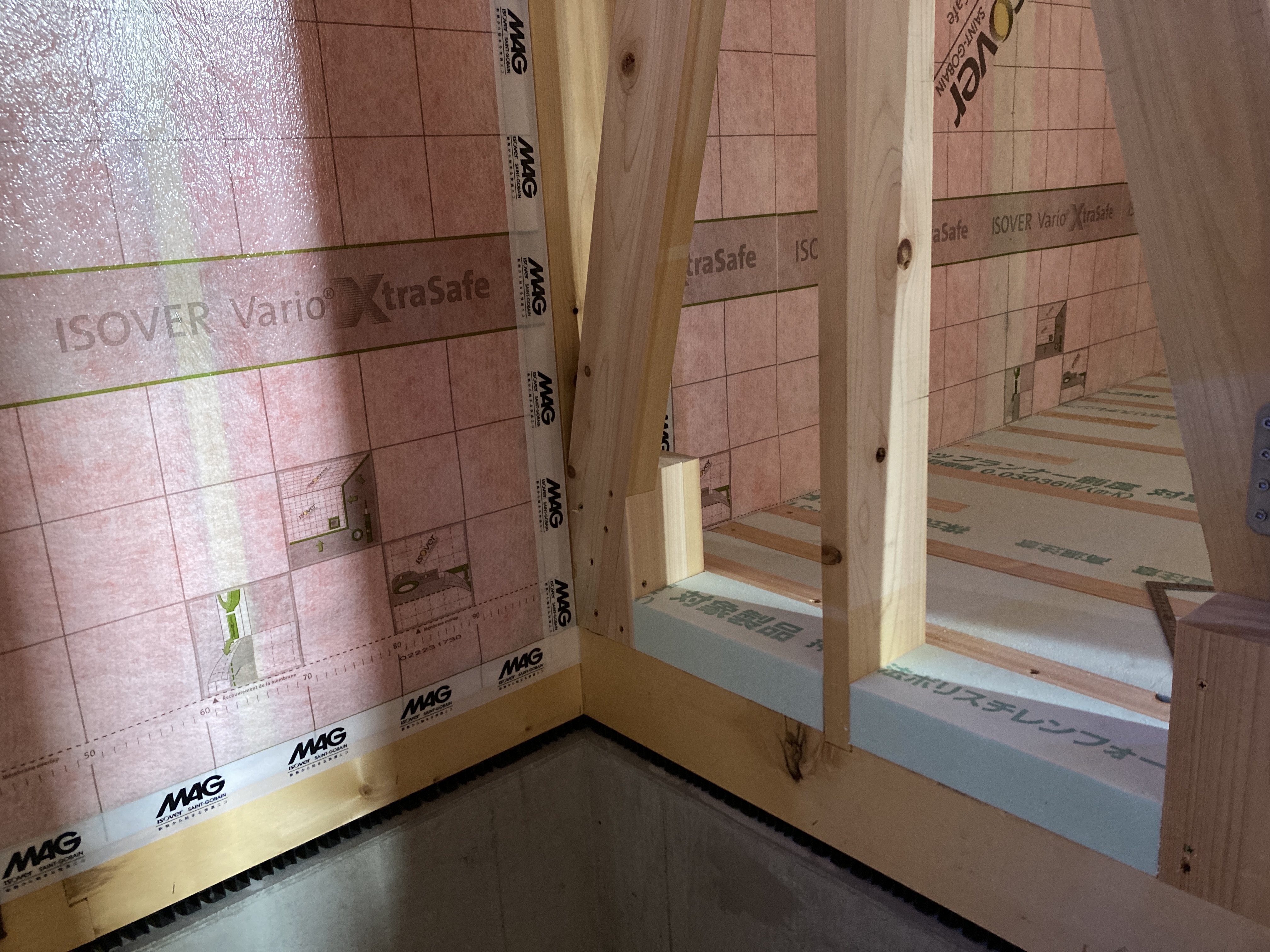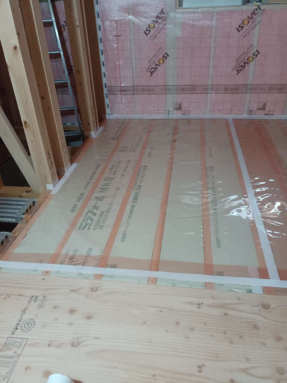 1階は、断熱材を充填し可変性調湿気密シートを張っています。