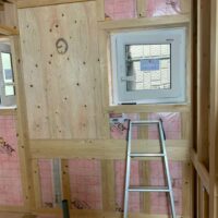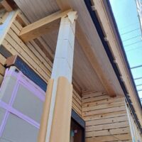 柱頭柱脚に金物が取り付けられました。2000年に阪神淡路大震災の影響を受けて建築基準法が改正され、柱頭柱脚に金物を付ける事になったそうです。来年の2025年には、熊本地震やエネルギー問題(医療問題もあるかも?)を受けて、建築基準法が大改正されます。地震や大きな出来事の度に建築基準法が改正されますが、技術の進歩でも改正されていくようになるといいなぁと思います。
