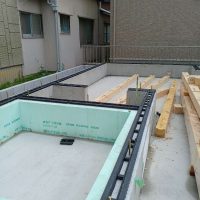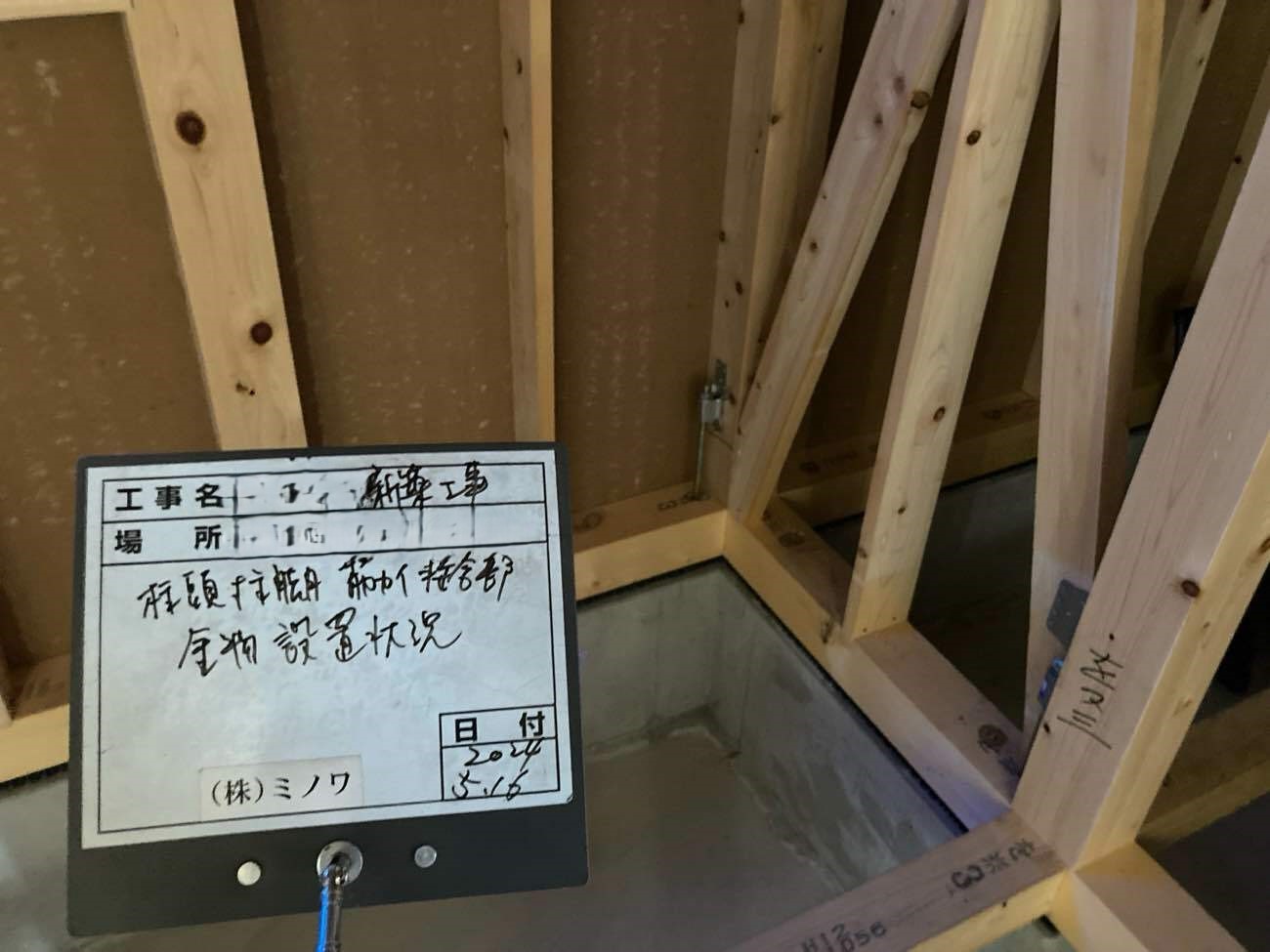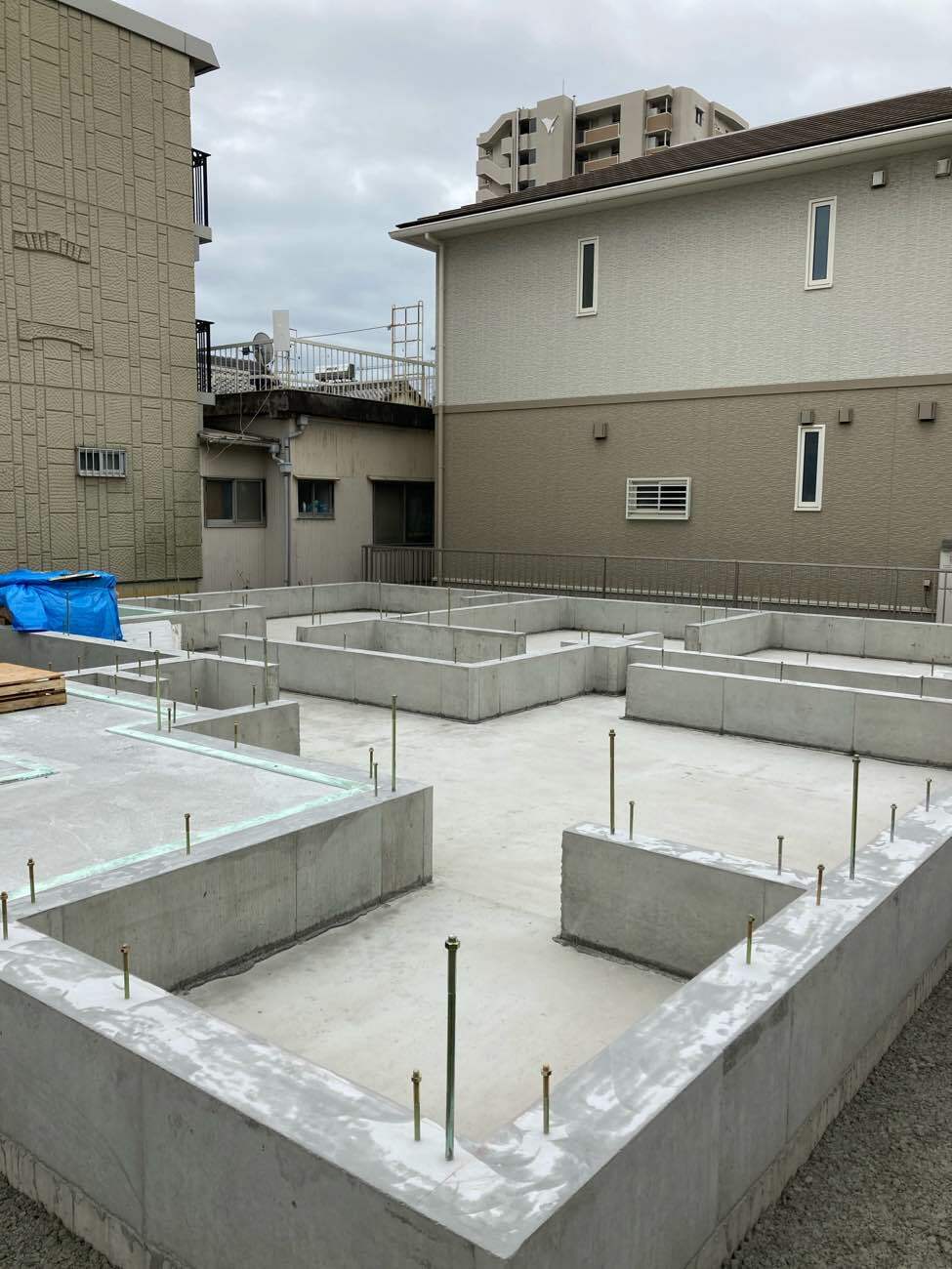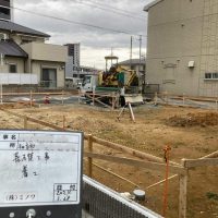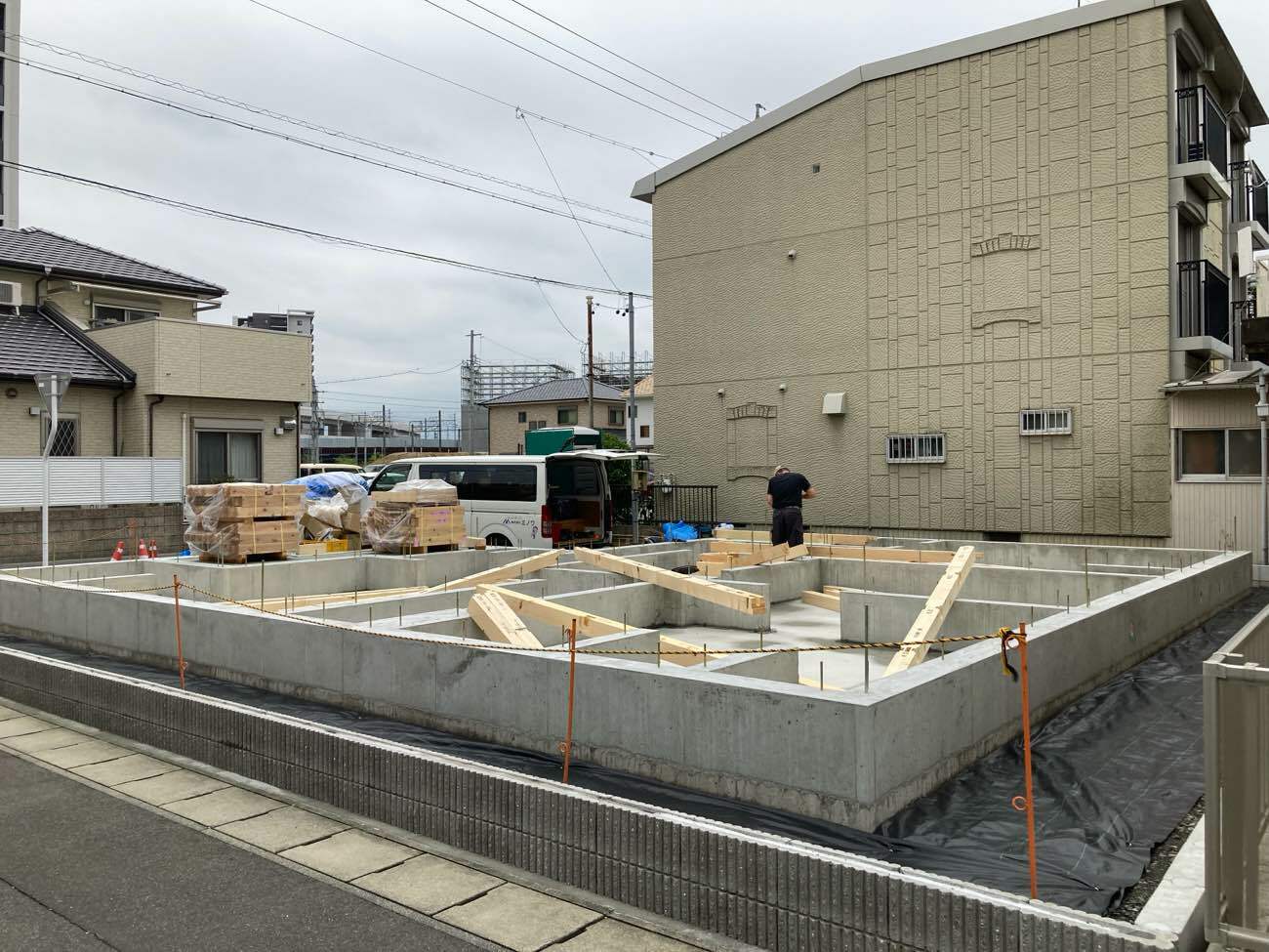 基礎の立ち上がり部分の型枠を組み、コンクリート打設も行いました。床断熱の為、ユニットバスや玄関土間の部分に基礎断熱を施しています。