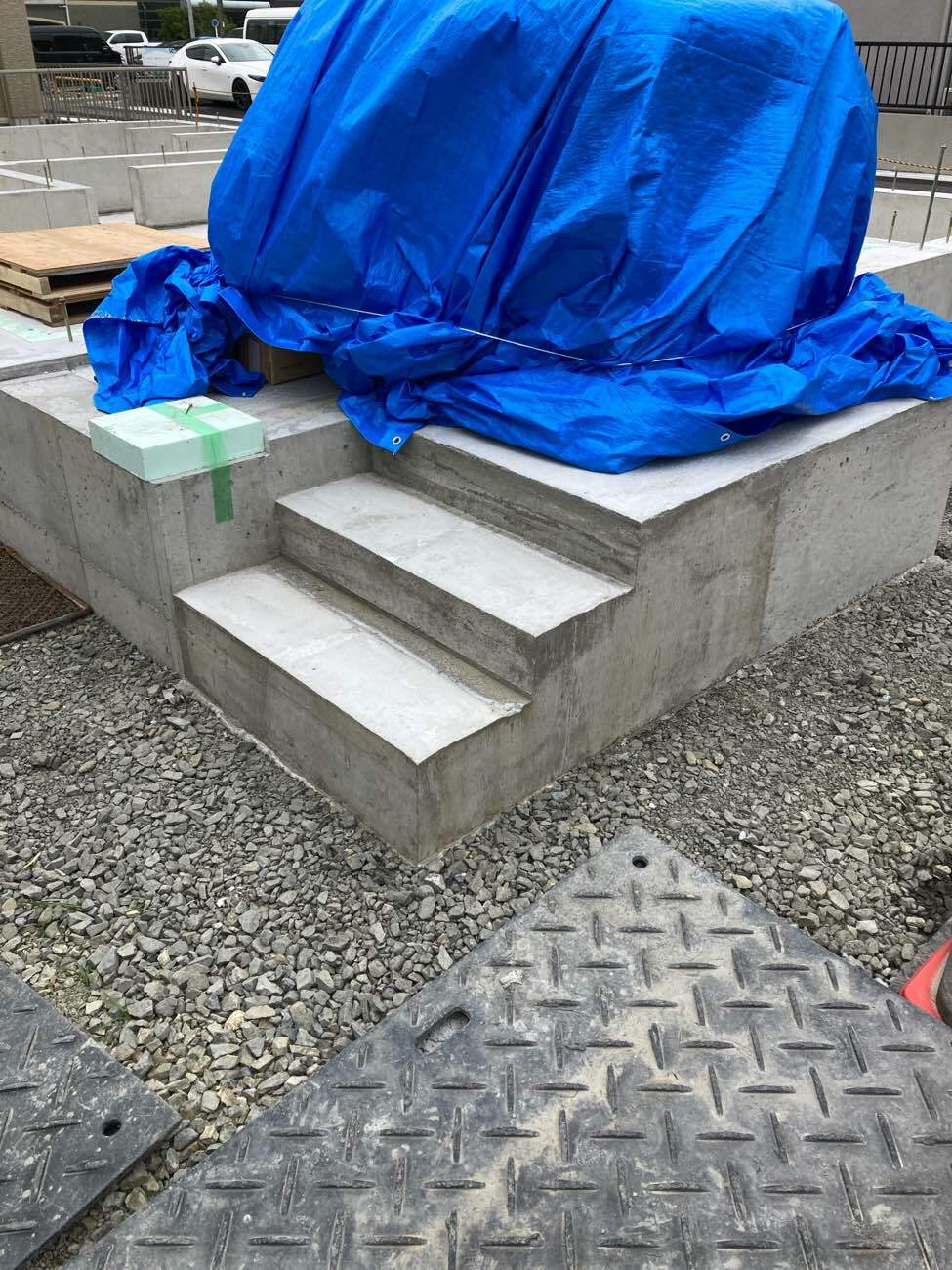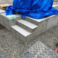 雨が降ったり止んだりの中、29日に基礎工事が終わりました。玄関ポーチと階段も施工されています。t広さんお疲れ様でした。
