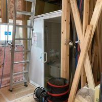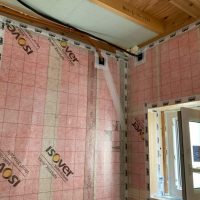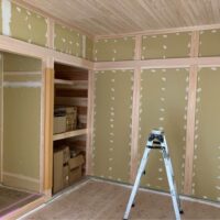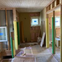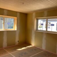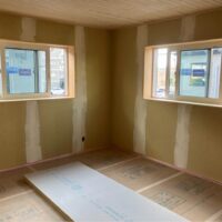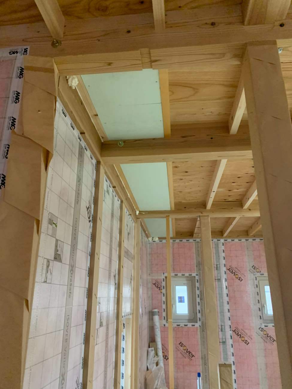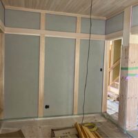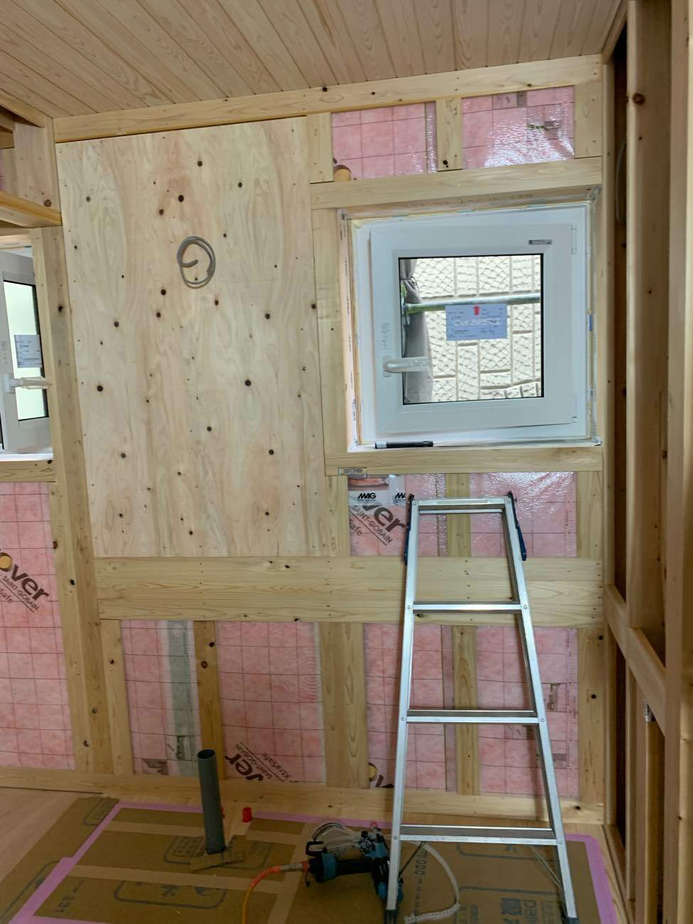 1階もプラスターボードを張ってきています。木工事も終わりを迎えようとしています。