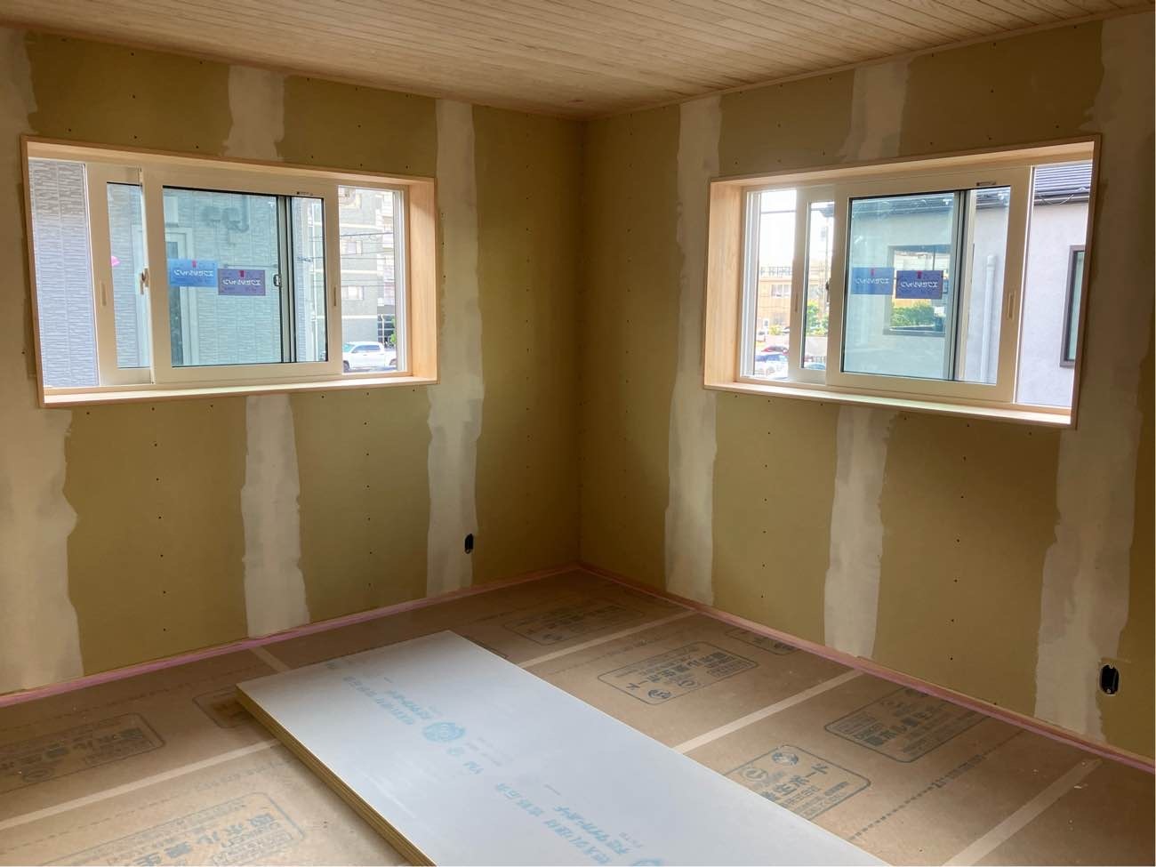 y口技研さんが、珪藻土が塗り終わり、最後に写真を送ってくれました。最近、日が暮れるのが早いので、少し薄暗い中撮影された様子です。余談ですが、冬至は一番日が短いですが、12月20前後なので冬になったばかり。敷地が狭く冬至に日射が取りにくい場合でも、冬真っただ中の1月~2月末ごろに日射を取得できるように計画すると随分違うのではないかなぁと思うこの頃です。(新住協のQPEXできちんと温熱環境の計算をするとしっかり分かるんですけどね)