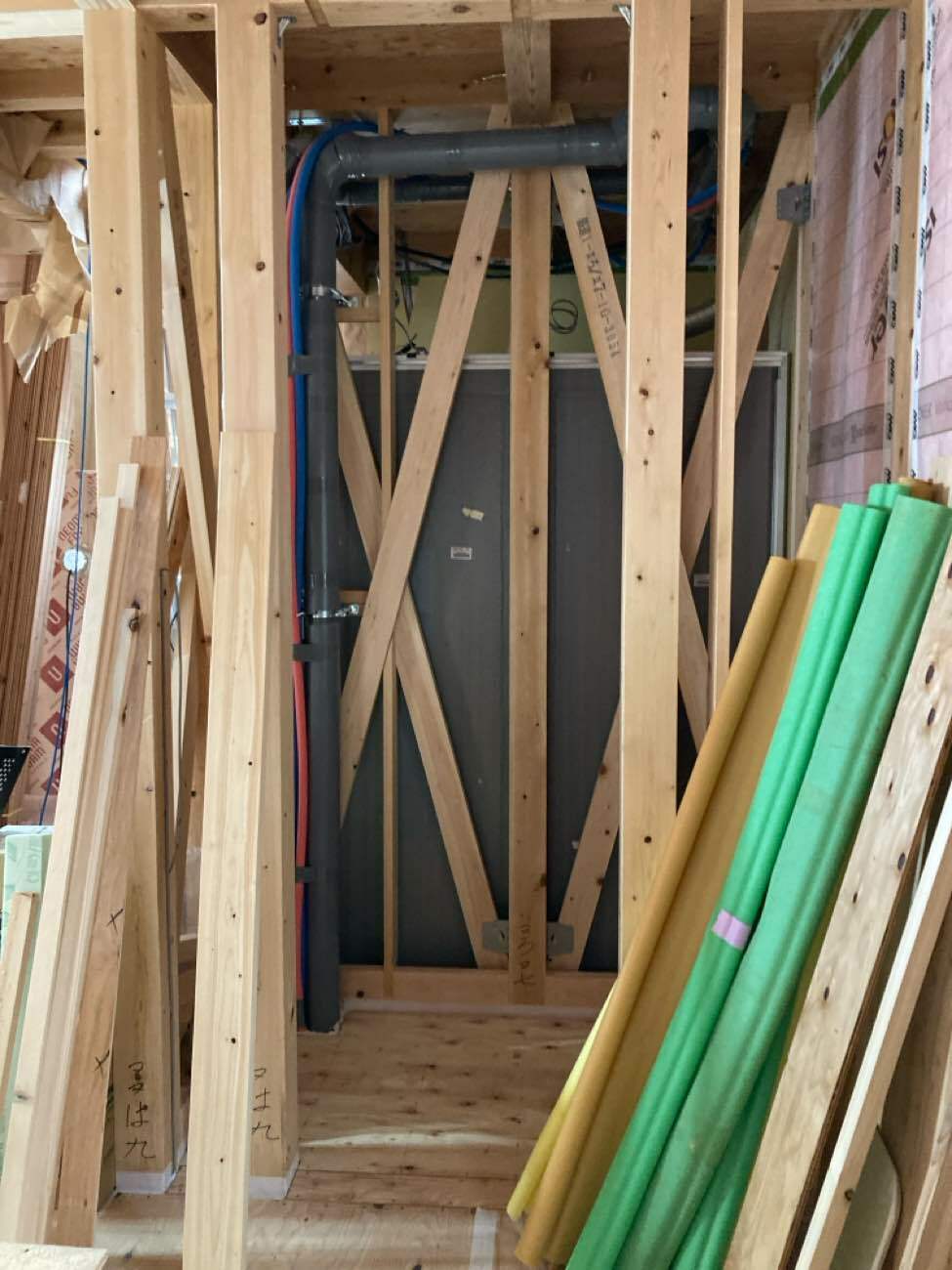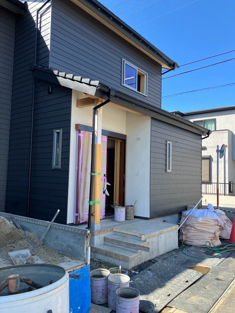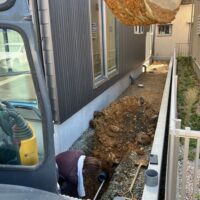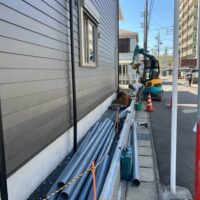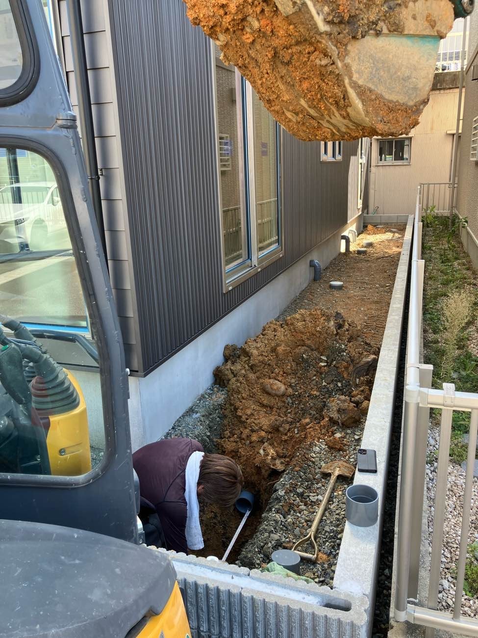 外部は足場を外し、jサービスのa野さん達が給排水の外部配管埋設工事を行っています。埋設工事も大変そう💦いつもそう思います。