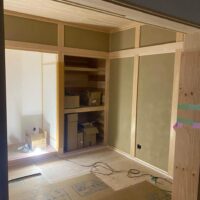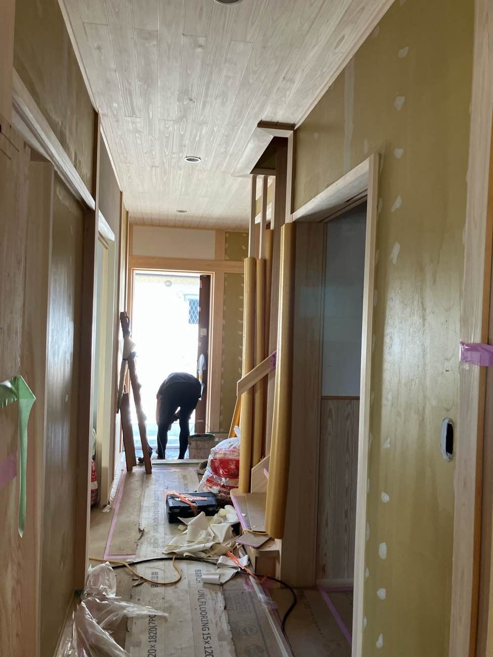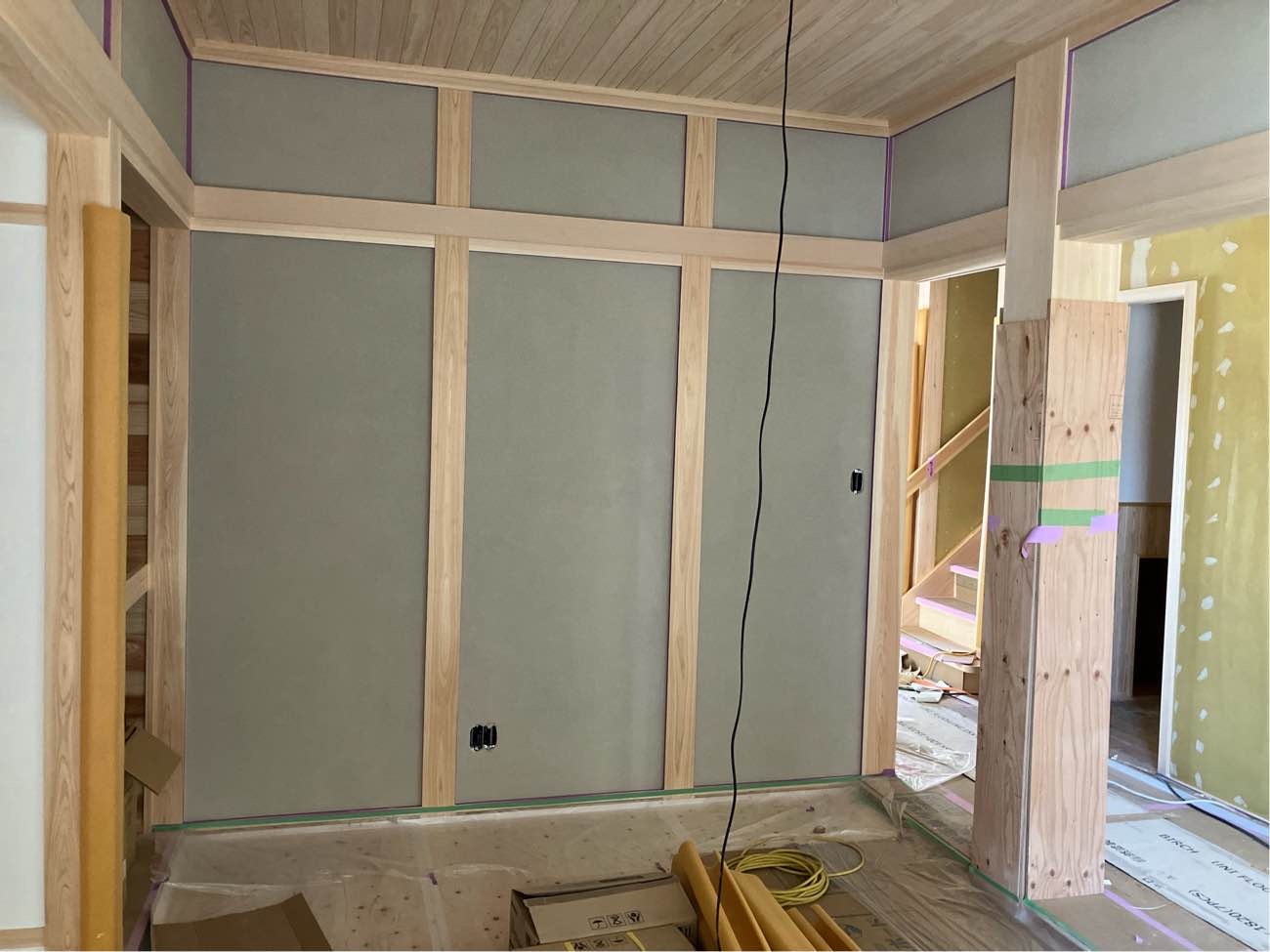 内部は、y口技研さんが和室の珪藻土が塗り終わり、玄関ホール~廊下の珪藻土を塗っています。