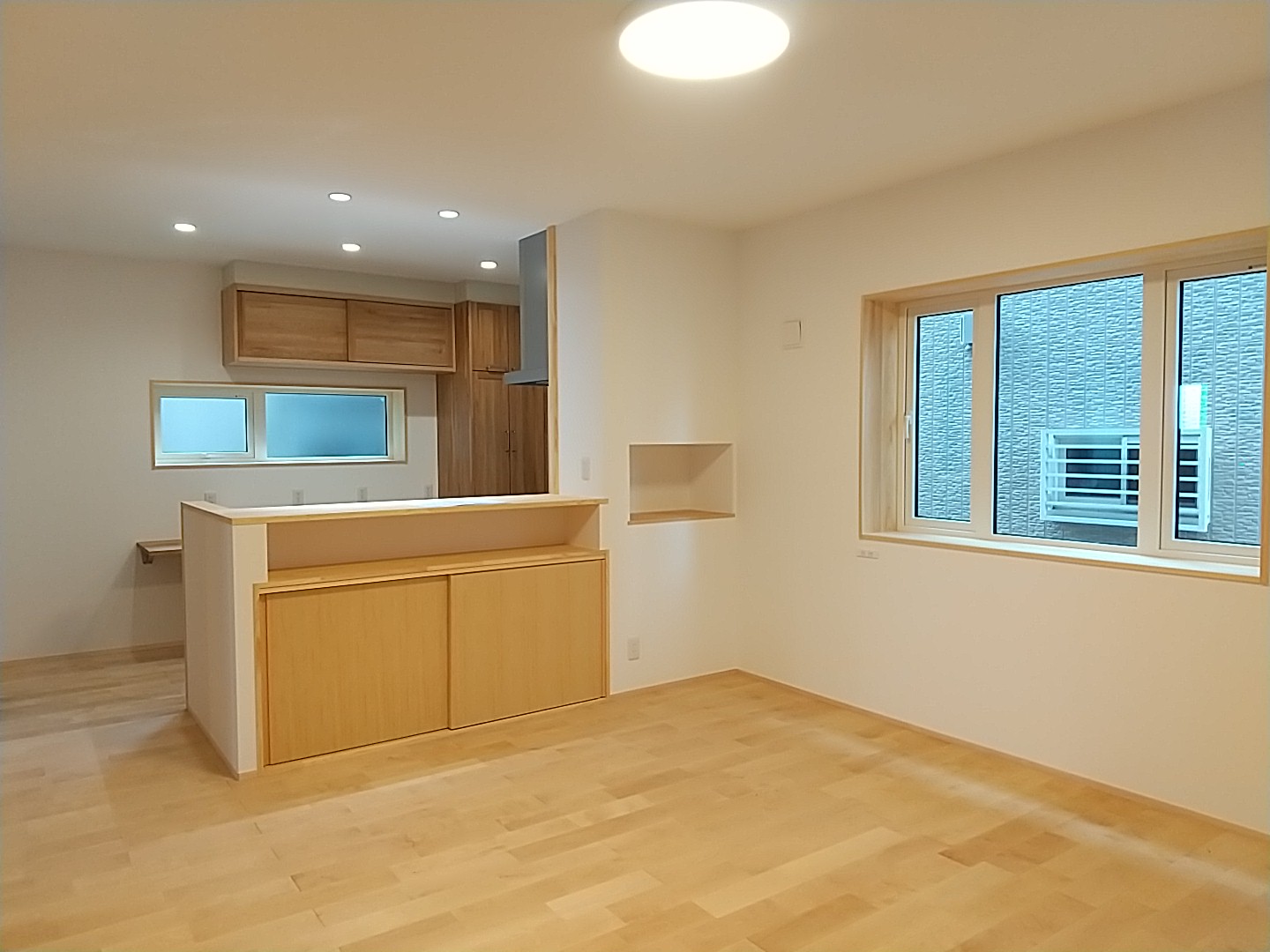 狭小地につき、採光計算が難しかったようで、LDKに続く和室の縁側に計算上必要な窓があります。縁側は洗濯物を干されるスペースにもなるとの事で、ちょうどよいかも知れないと思いました。