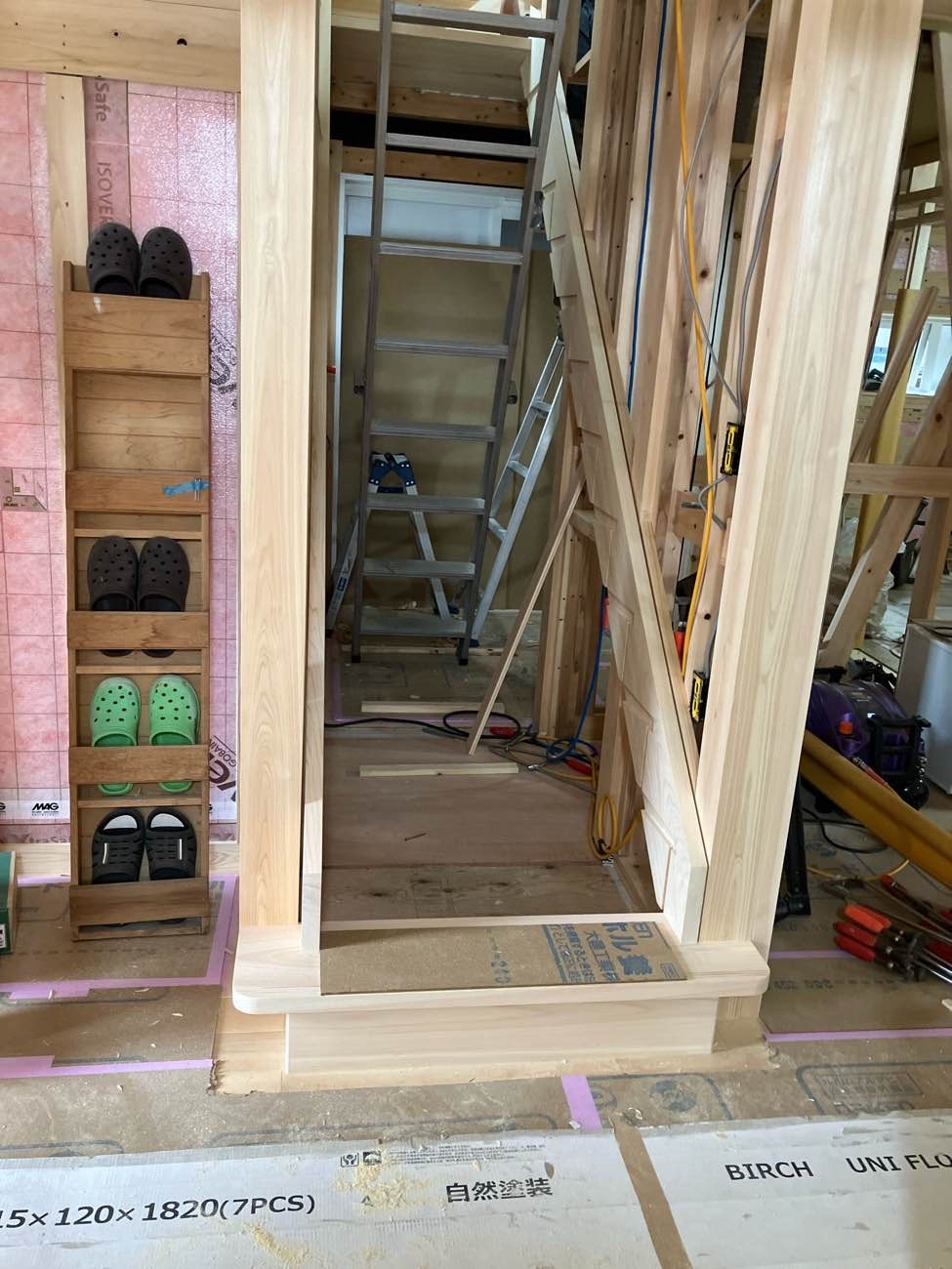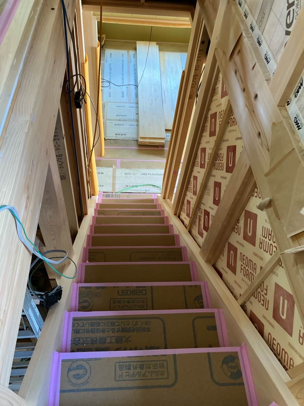 階段がかけ終わり、この三連休はn様に安心して2階に登っていただけていそうです。けれど、手すりはまだなので、気を付けてくださいね。