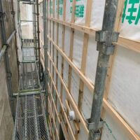 今週は、台風10号(サンサン)に日本中が翻弄させられる一週間でした。n様邸も、強風で足場が倒れないように、25日に養生シートをまとめました。今回は、台風養生に基礎部隊のt広さんが回っています。