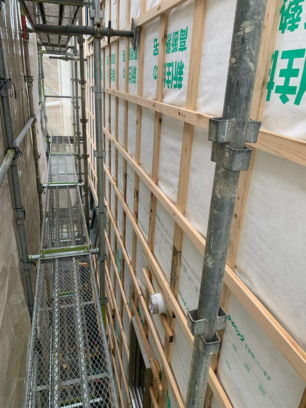 梅雨の合間を縫って、外壁も通気胴縁、外壁下地材を施工しています。📸は、k保木大工さん。きれいに撮れています👍そして、きれいな仕事。ありがとうございます!