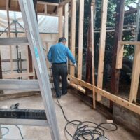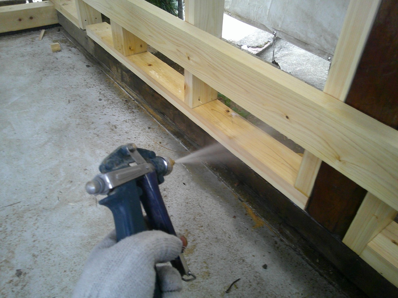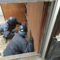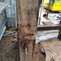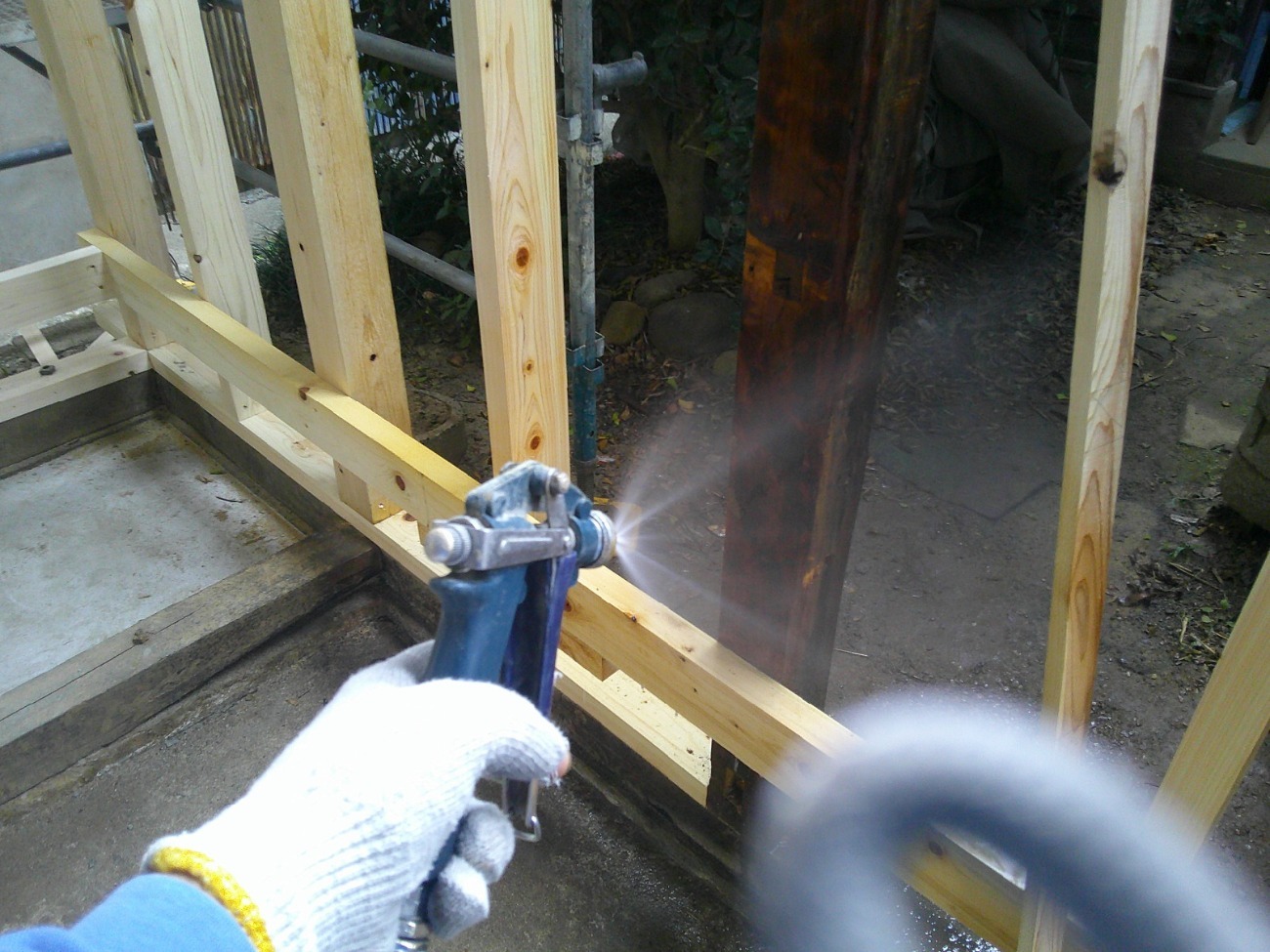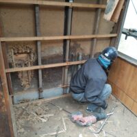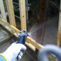 古材の特に柱材は白蟻に喰われまくっていましたので、今回はしっかりと防蟻処理工事を行います。