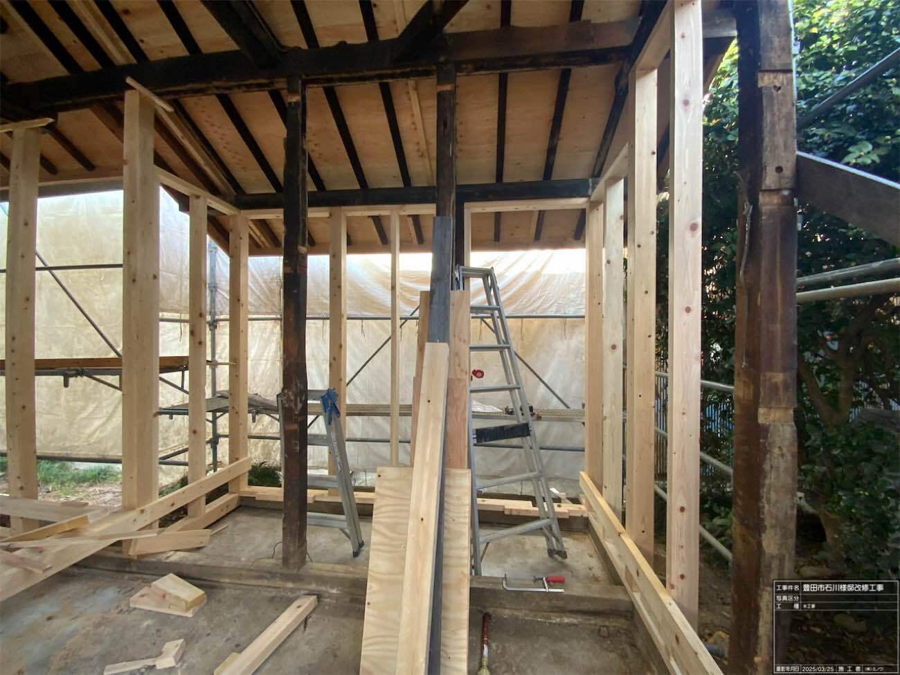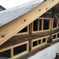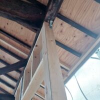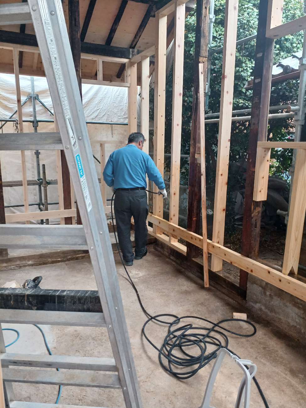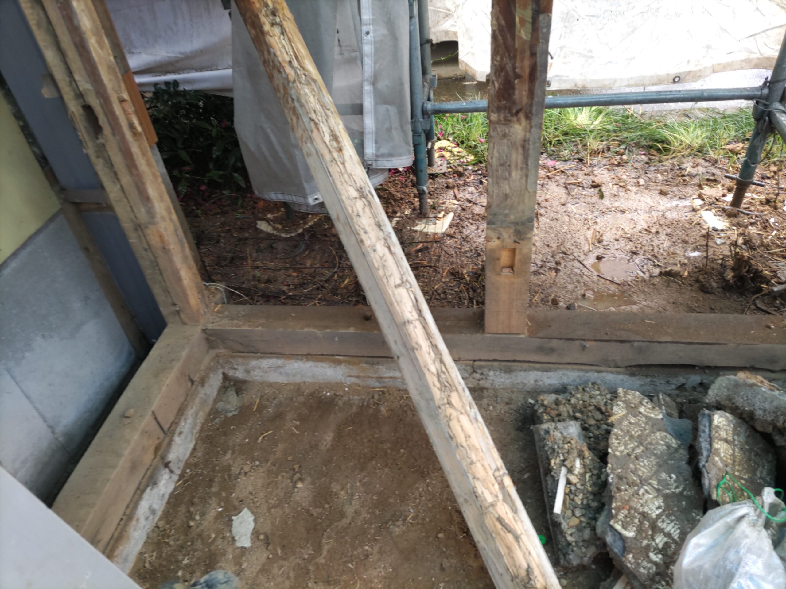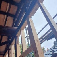 一旦傷んだ下地の木材も撤去してしまい、新たに下地を組んでいます。