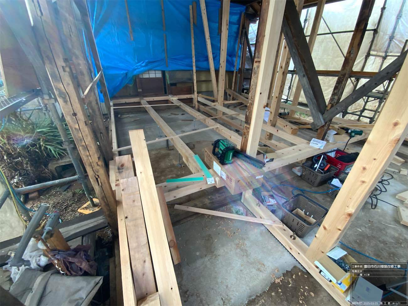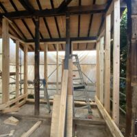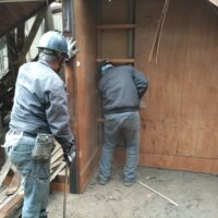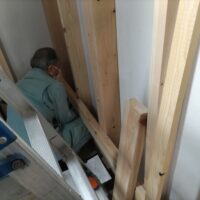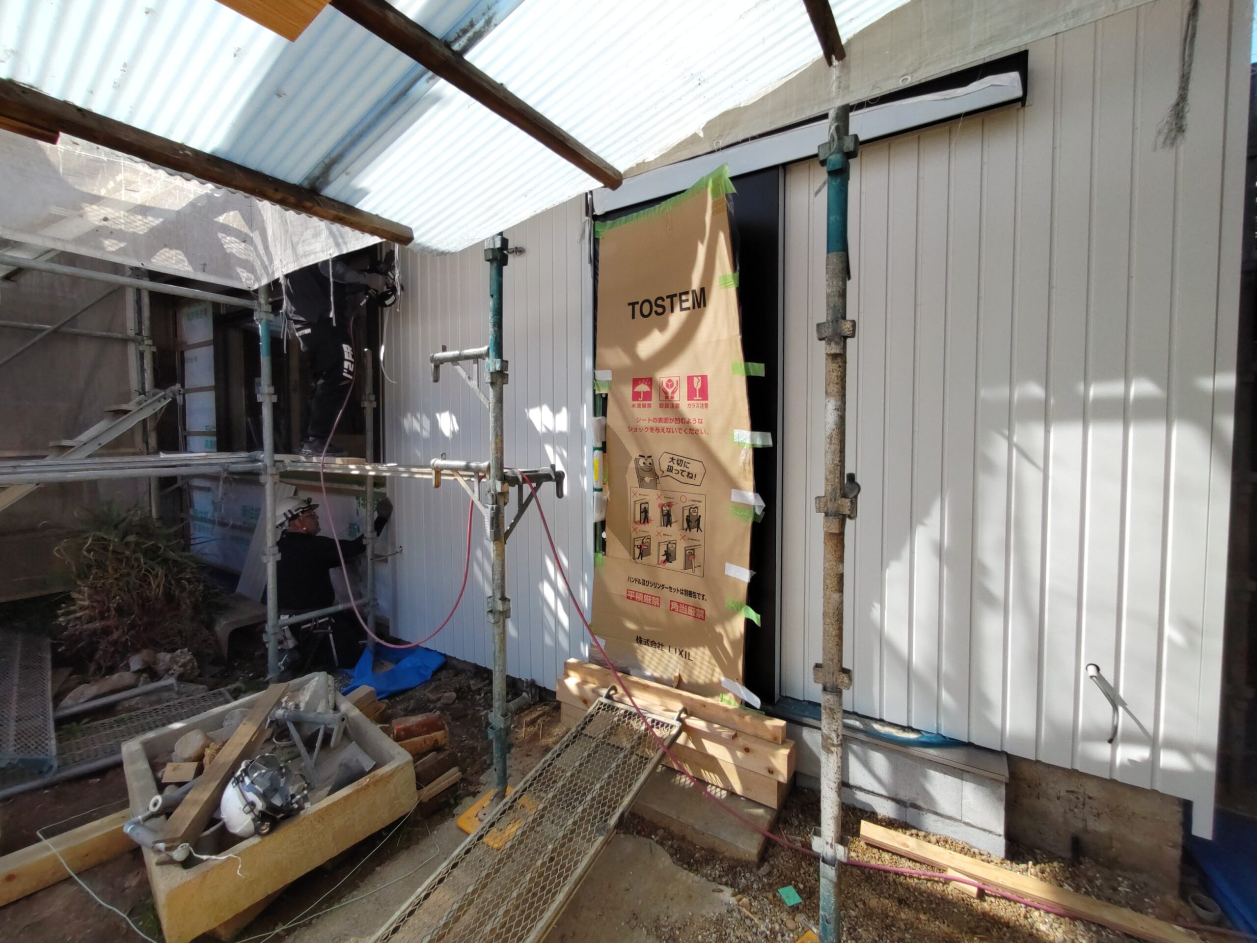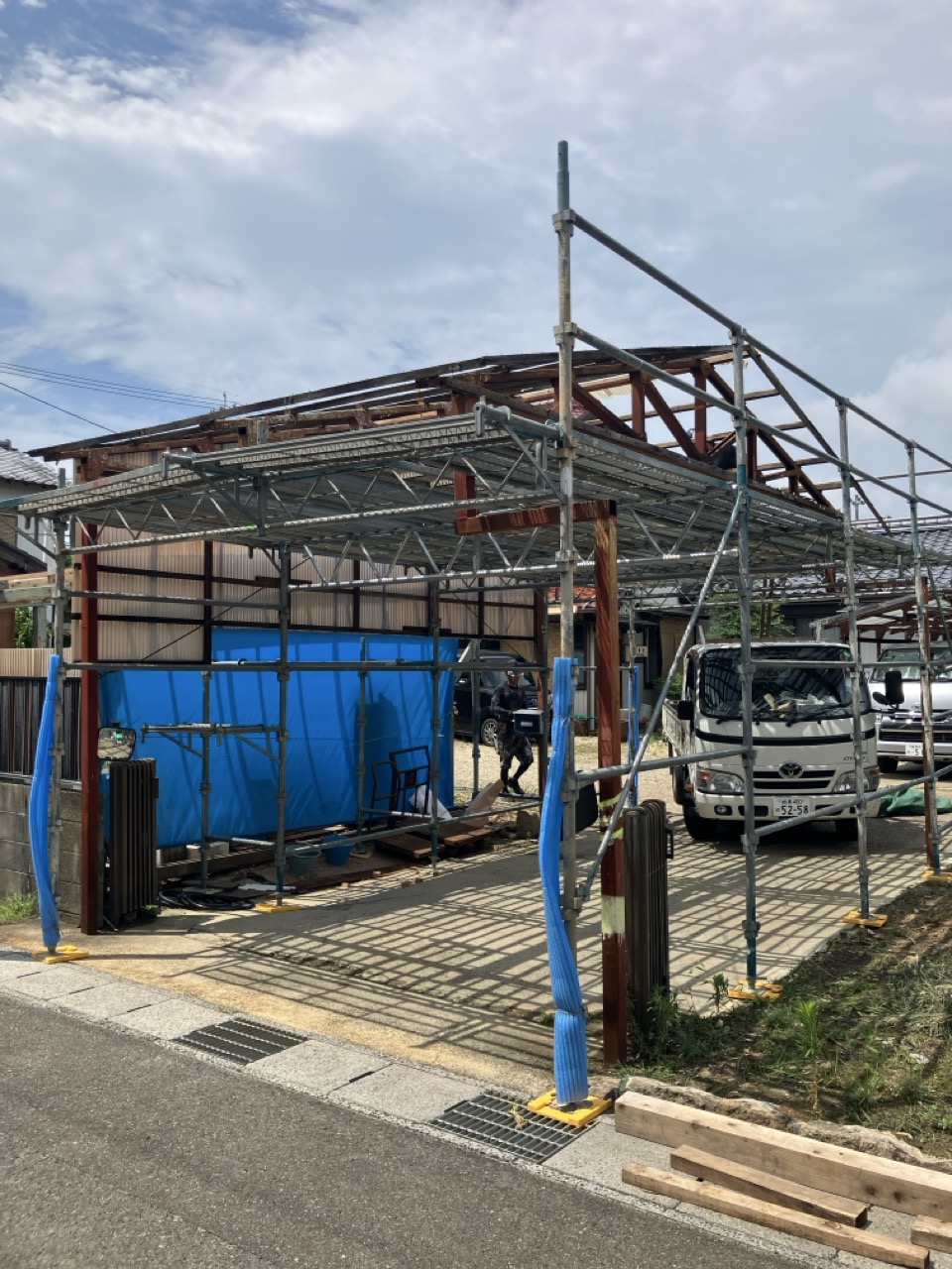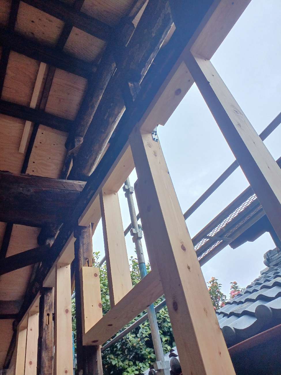 一旦傷んだ下地の木材も撤去してしまい、新たに下地を組んでいます。