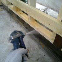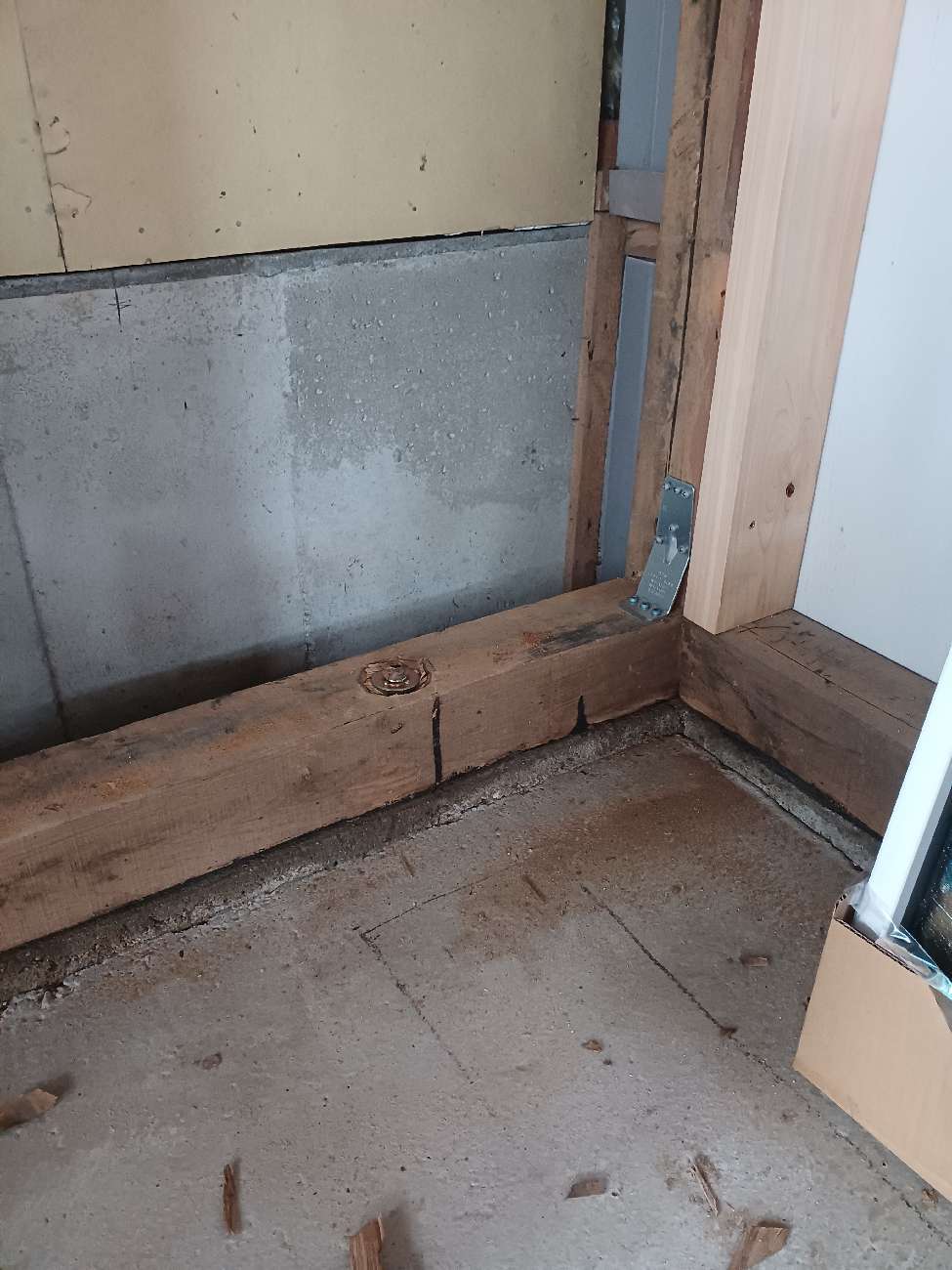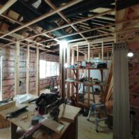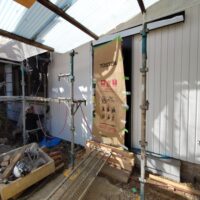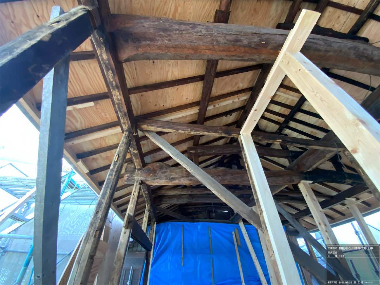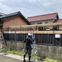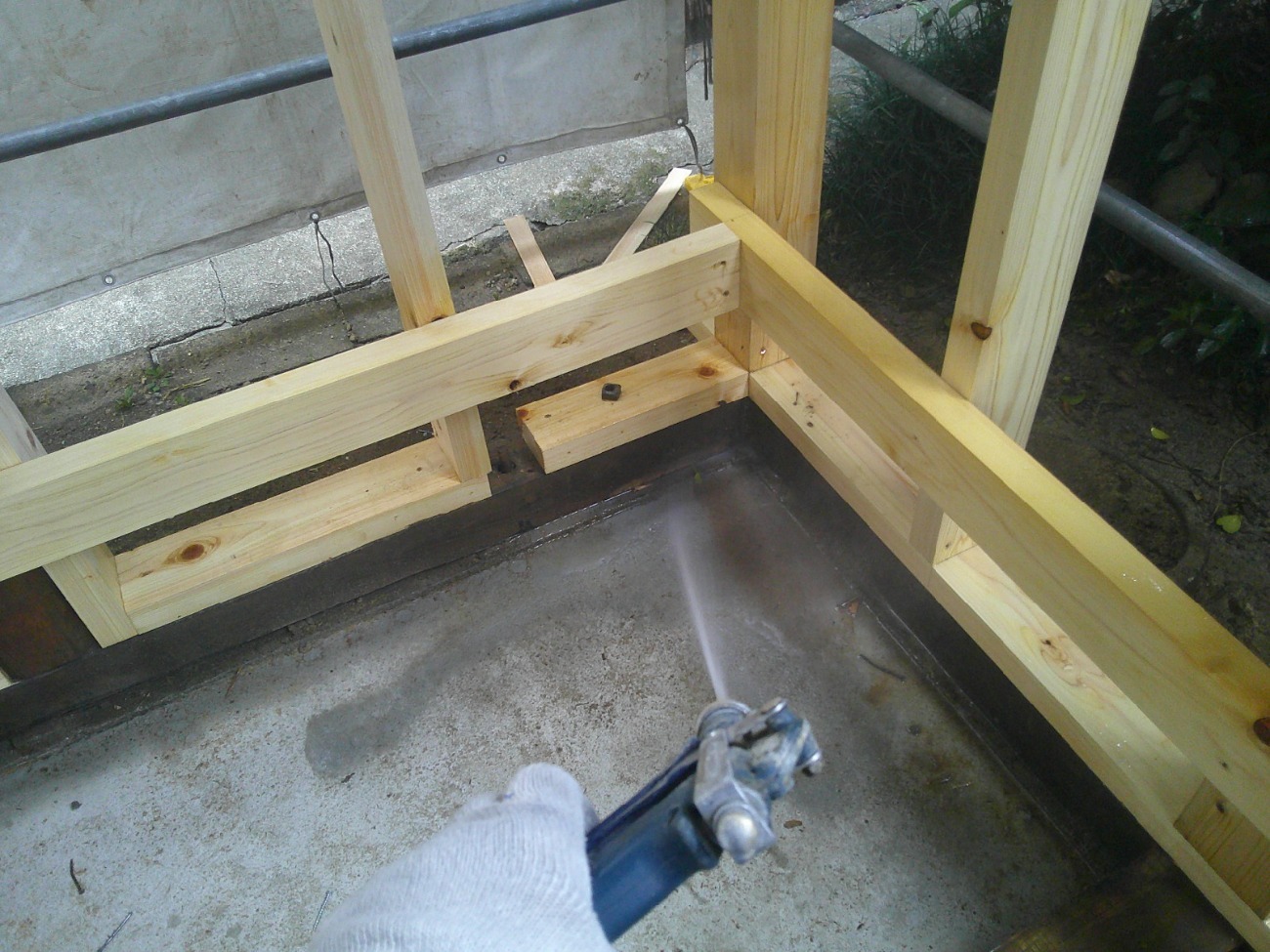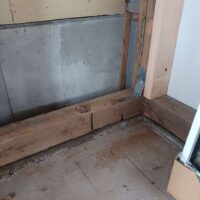 一旦傷んだ下地の木材も撤去してしまい、新たに下地を組んでいます。