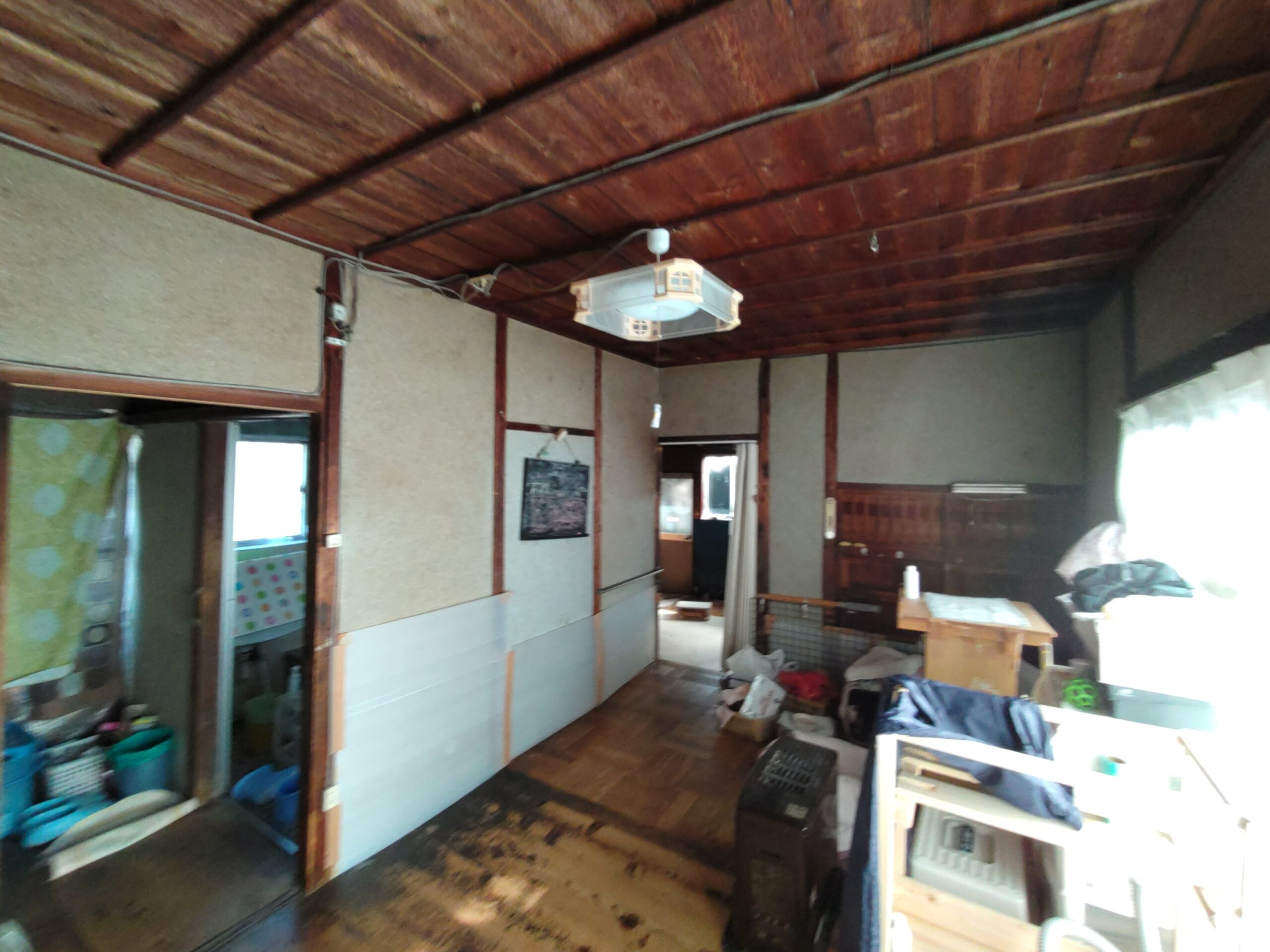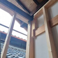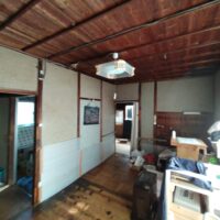 豊田市の田園地帯に建つ古い農家住宅の離れの部分(元はこちらが主屋で、隣の大きな2階建てが後に増築した部分です)のスケルトン改修工事が始まります。築年数は少なく見ても70年前後は経っていると思われ、構造的にも補修しながらの作業となります。
