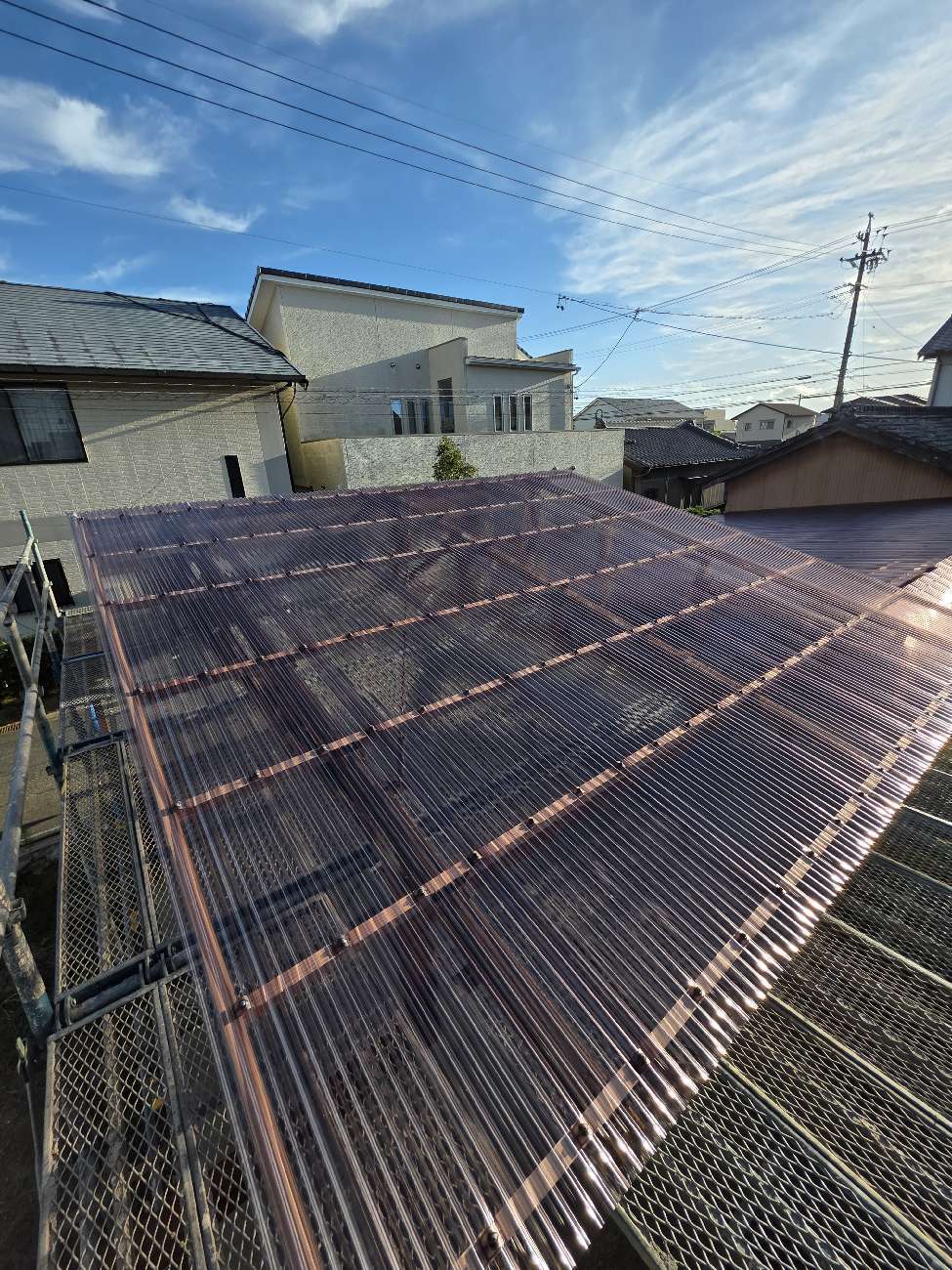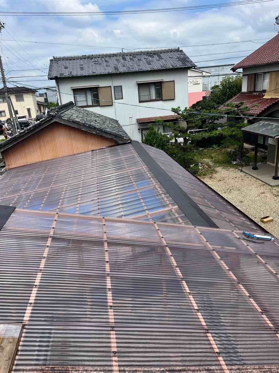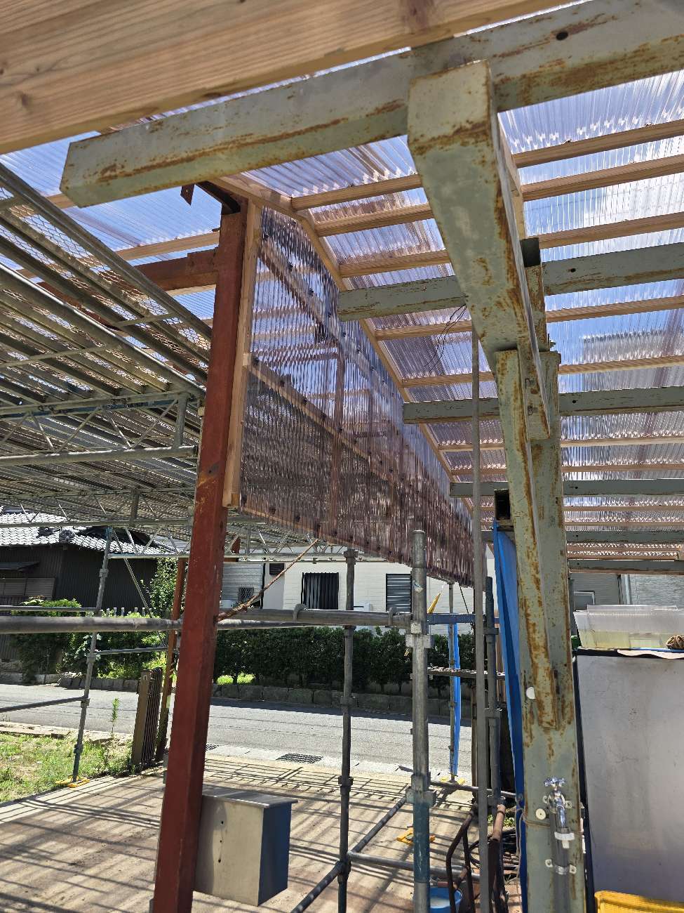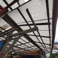 波板屋根の張替えがほぼ完了しました。以前の屋根と打って変わって透明度が高くなっています。冬に雪が積もったら下から見えそうですね。