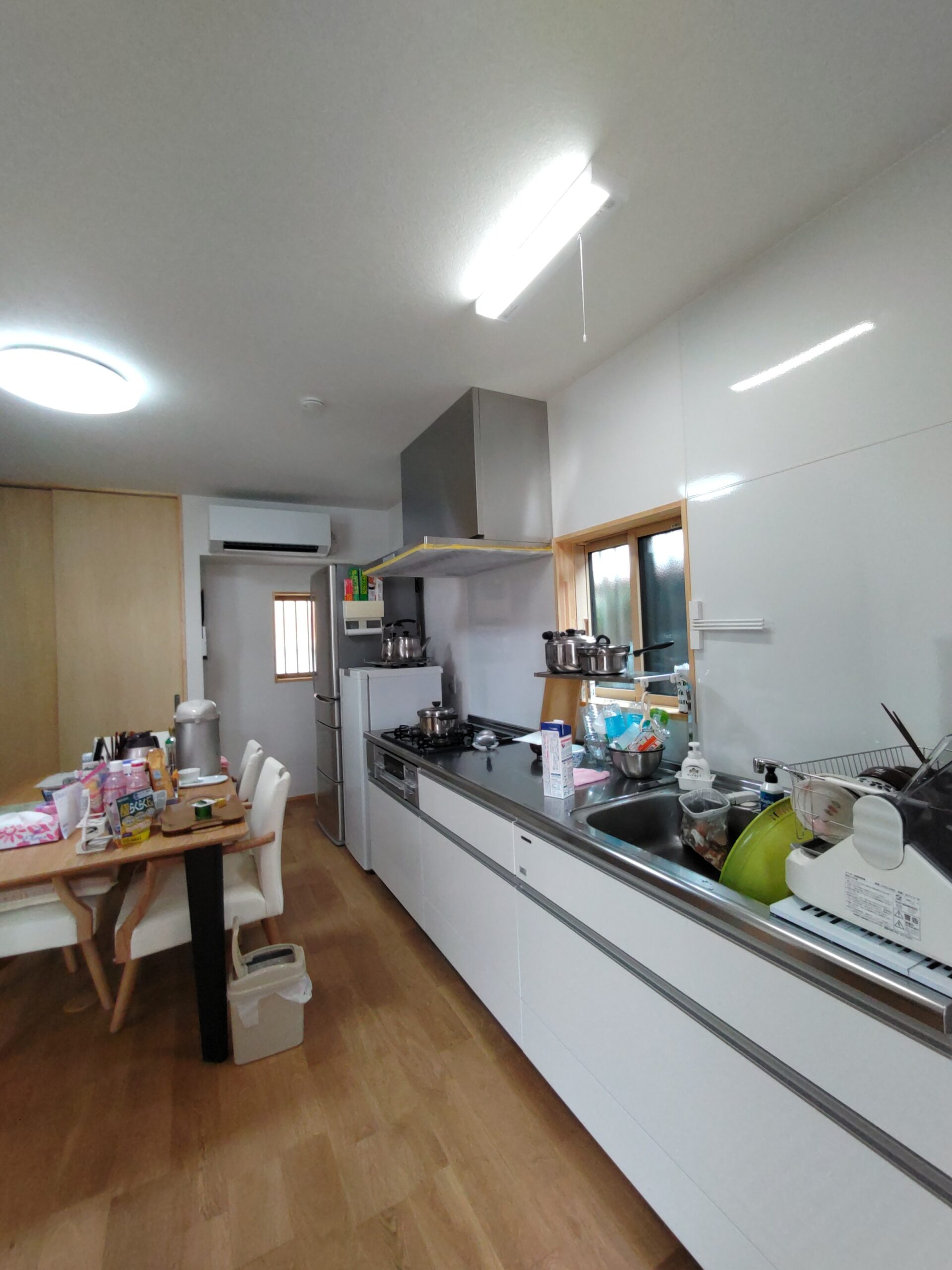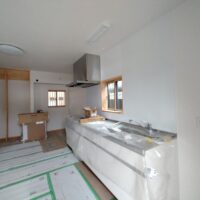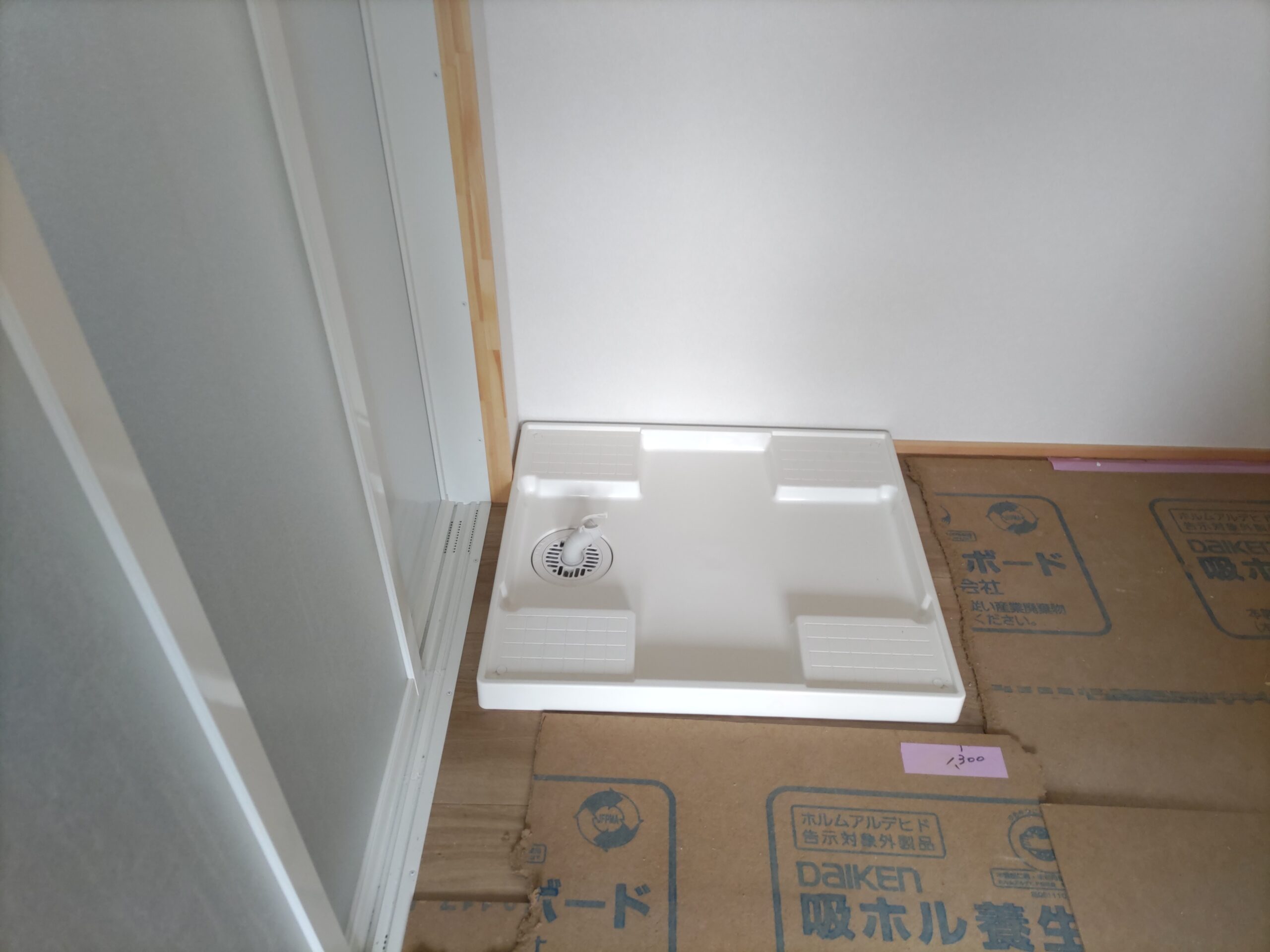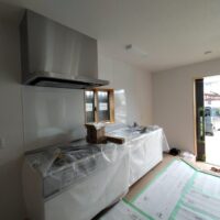 キッチンと洗濯パンの据付工事が終了しています。現場を訪れても職人さんは仕事を終えた後でなかなか会う事ができません。知らない間に粛々と現場は間瀬に向けて進んでいっています。