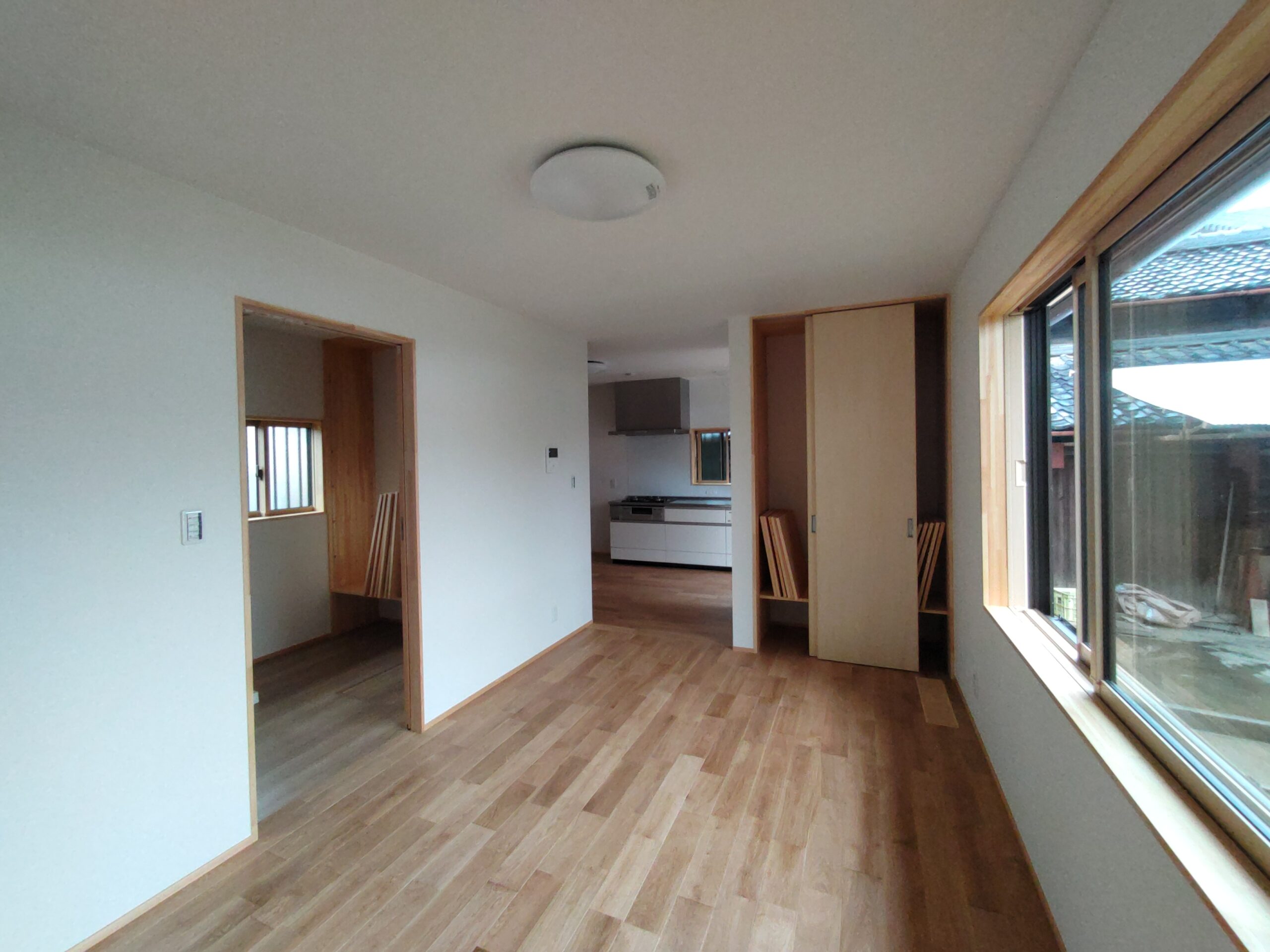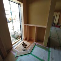 造作工事ももう一息で完成というところまで進んでいます。本日は棟梁は別件の現場に抜けていますので現場は静かなものです。この隙間を狙ってⅰ様と内装についてのお打ち合わせをしてきました。