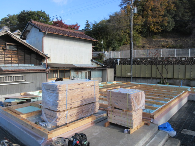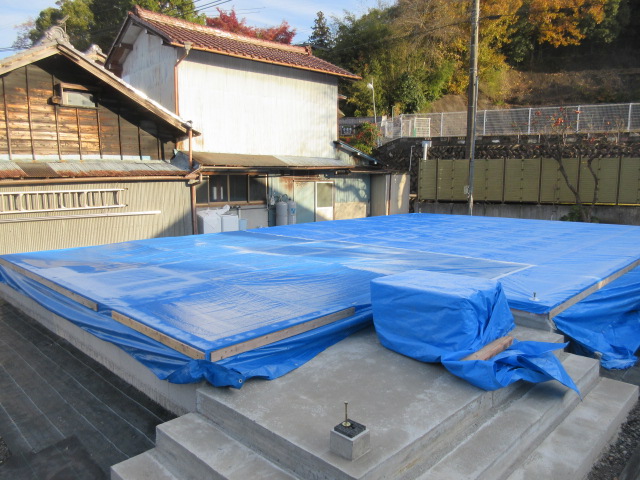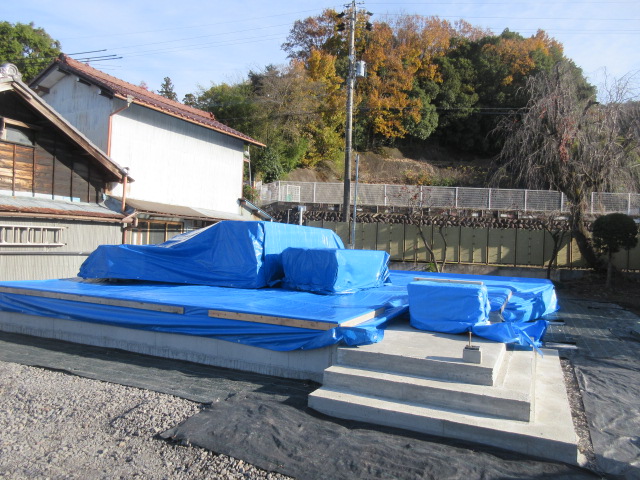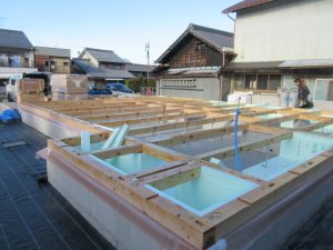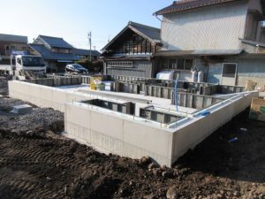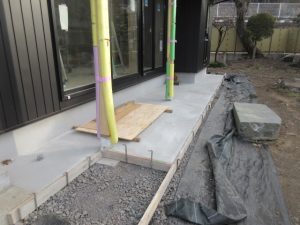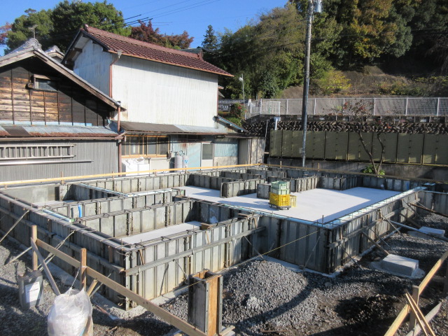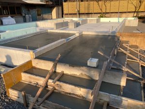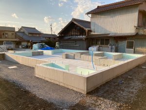 関市の現場で基礎工事が完了し、明日から土台伏せが始まります。池や灯篭のある整えられたお庭はそのまま残します。