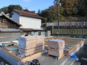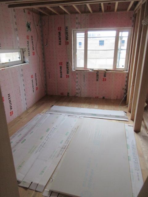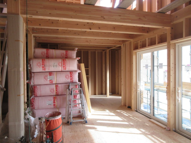 室内に壁用の高性能グラスウール厚み120㎜の断熱材が搬入されました。