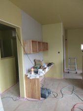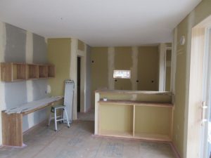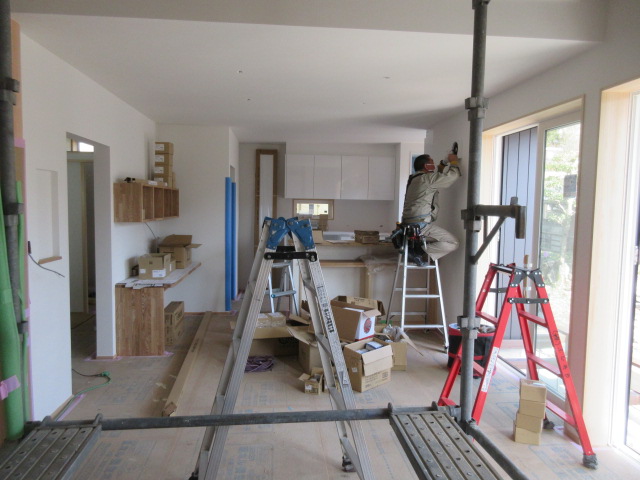クロス工事完了、後水まわり設備や照明器具が設置されていきます。