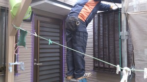 今回は外壁とお隣さんの境界の間が狭く、人が通るのがやっとで、作業も難航しそうです。